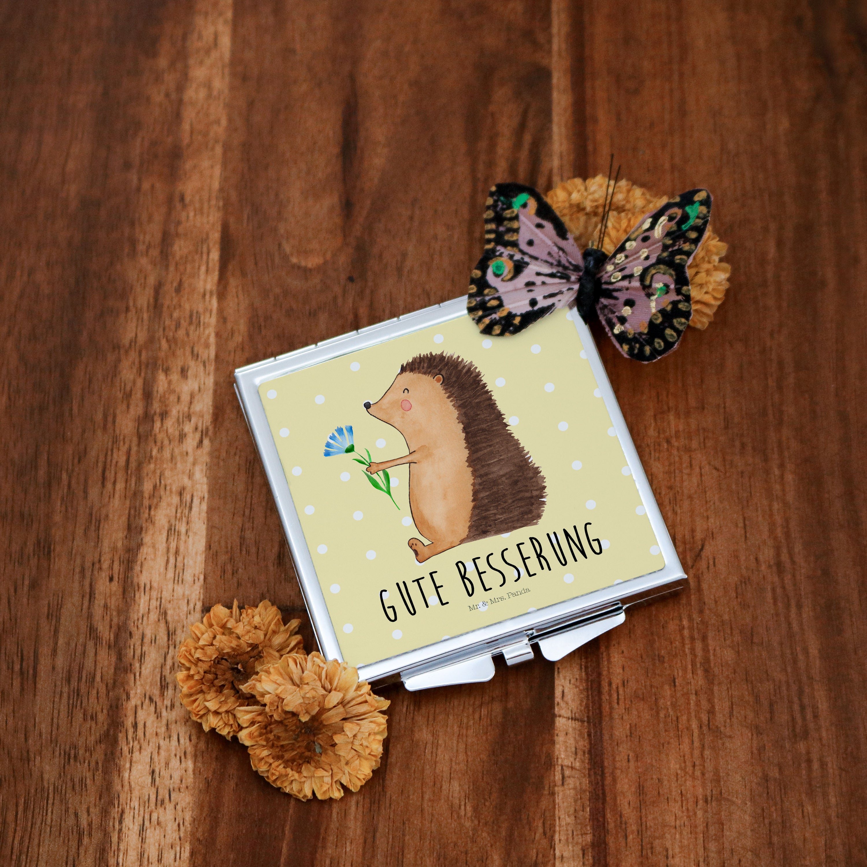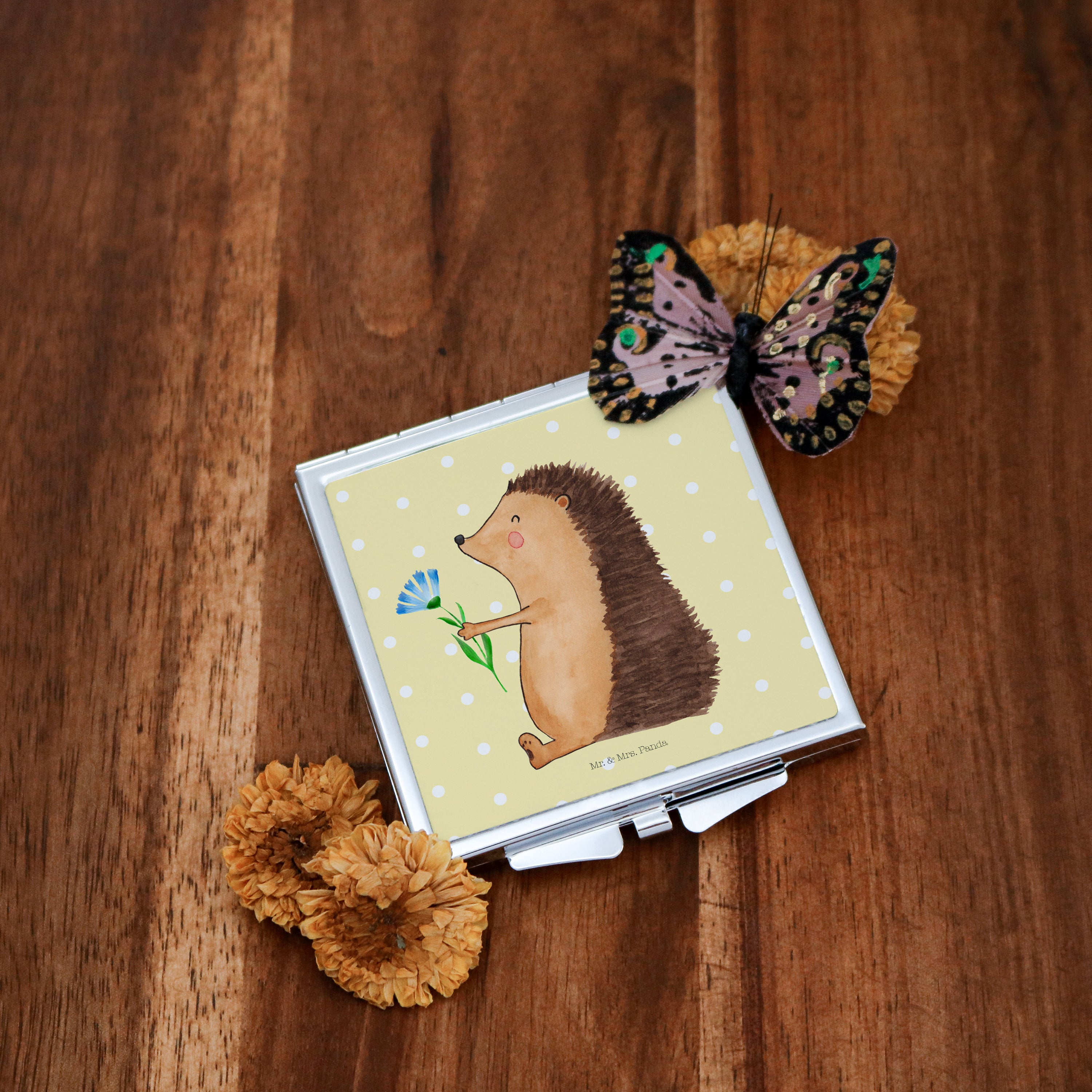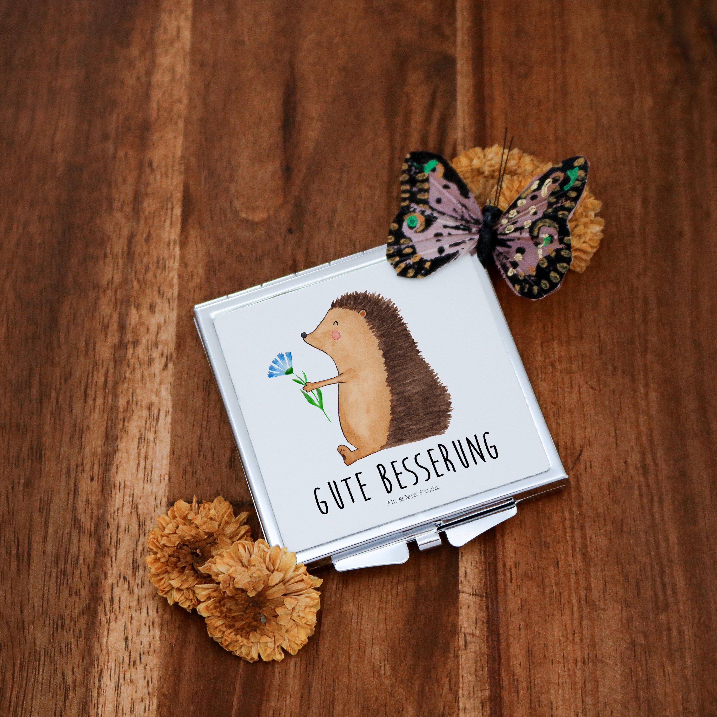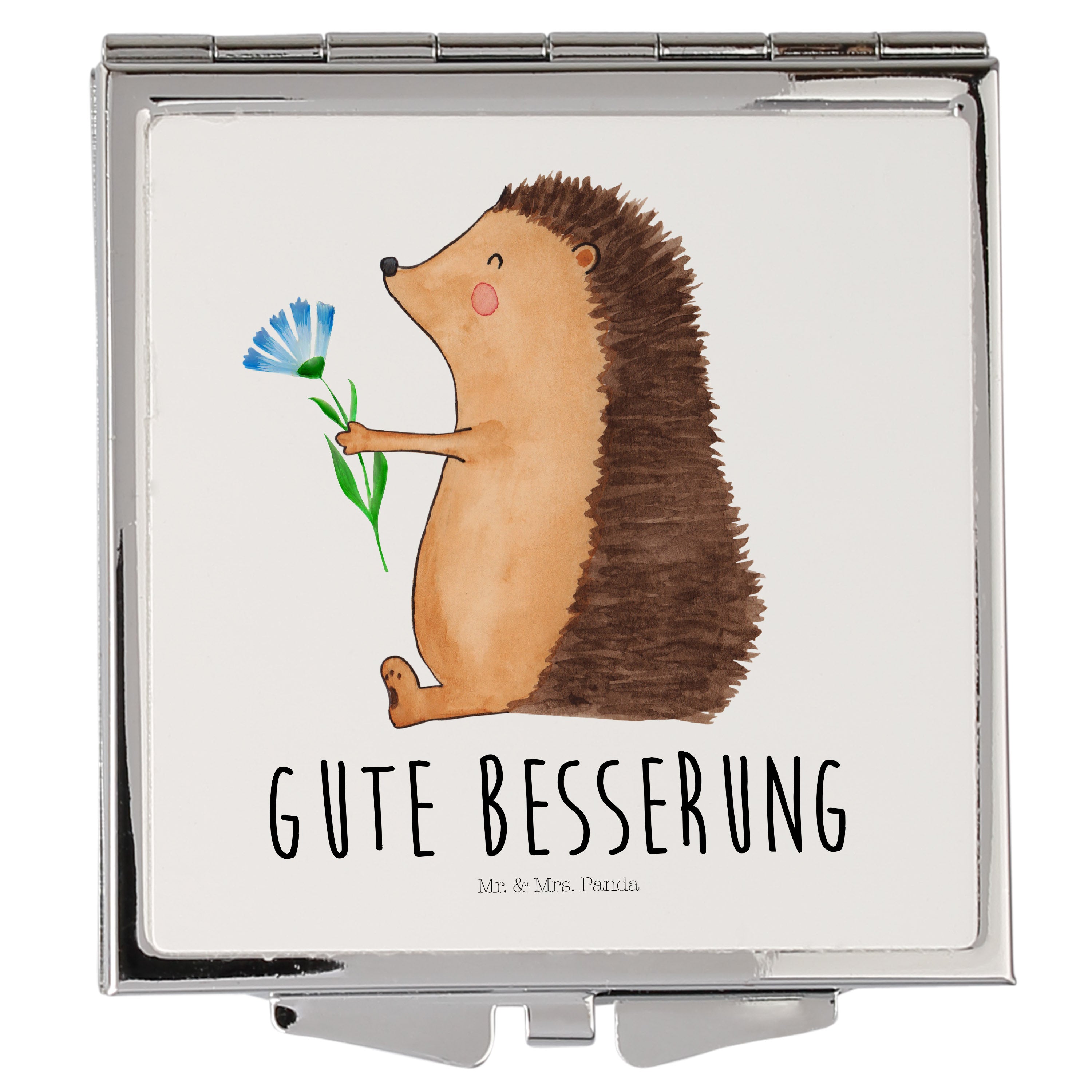 Handtaschenspiegel quadratisch Igel mit Blume - mit Spruch - Weiß