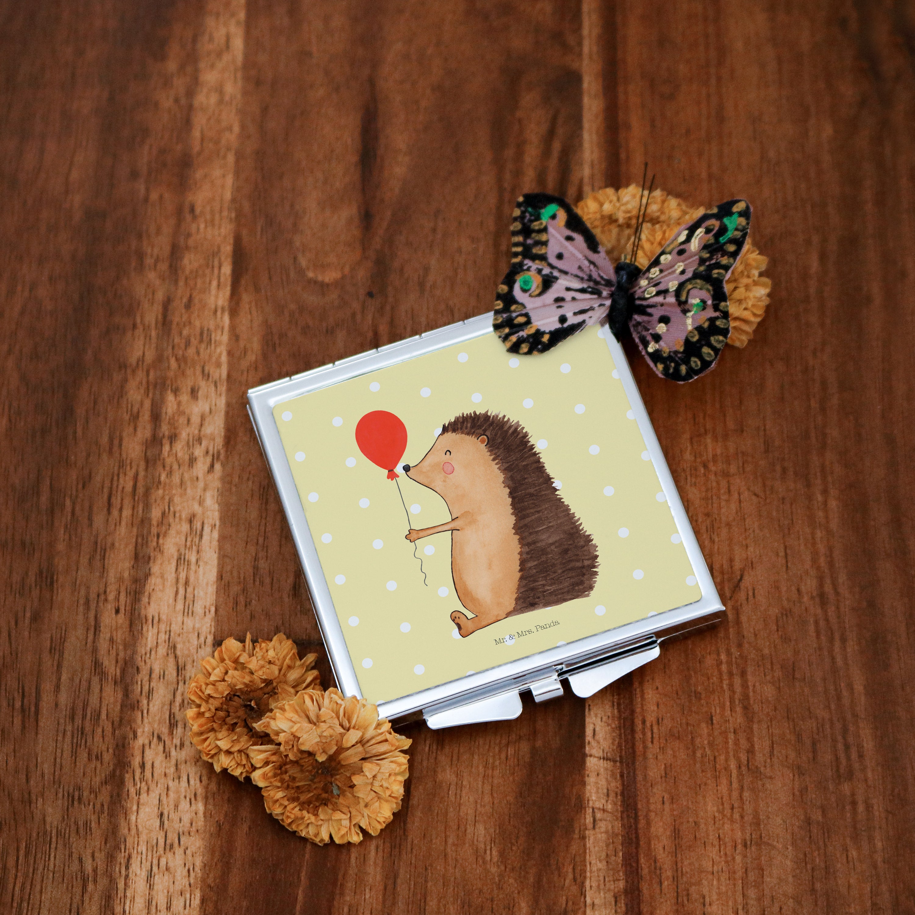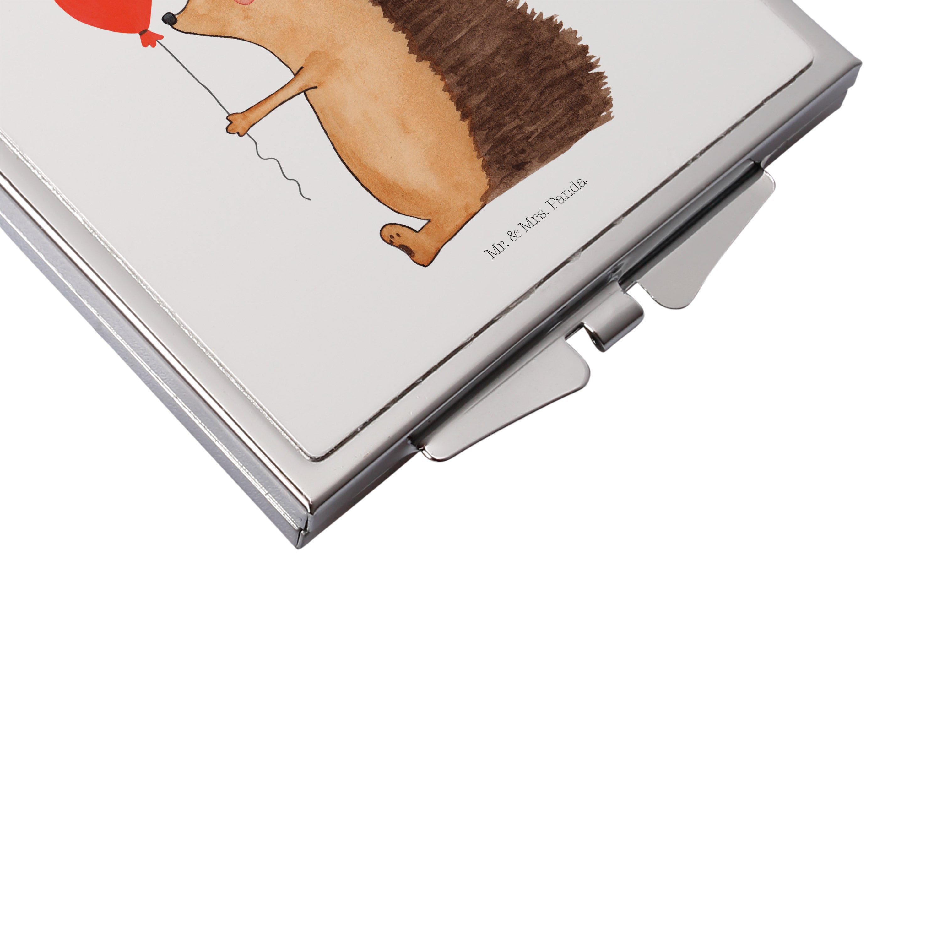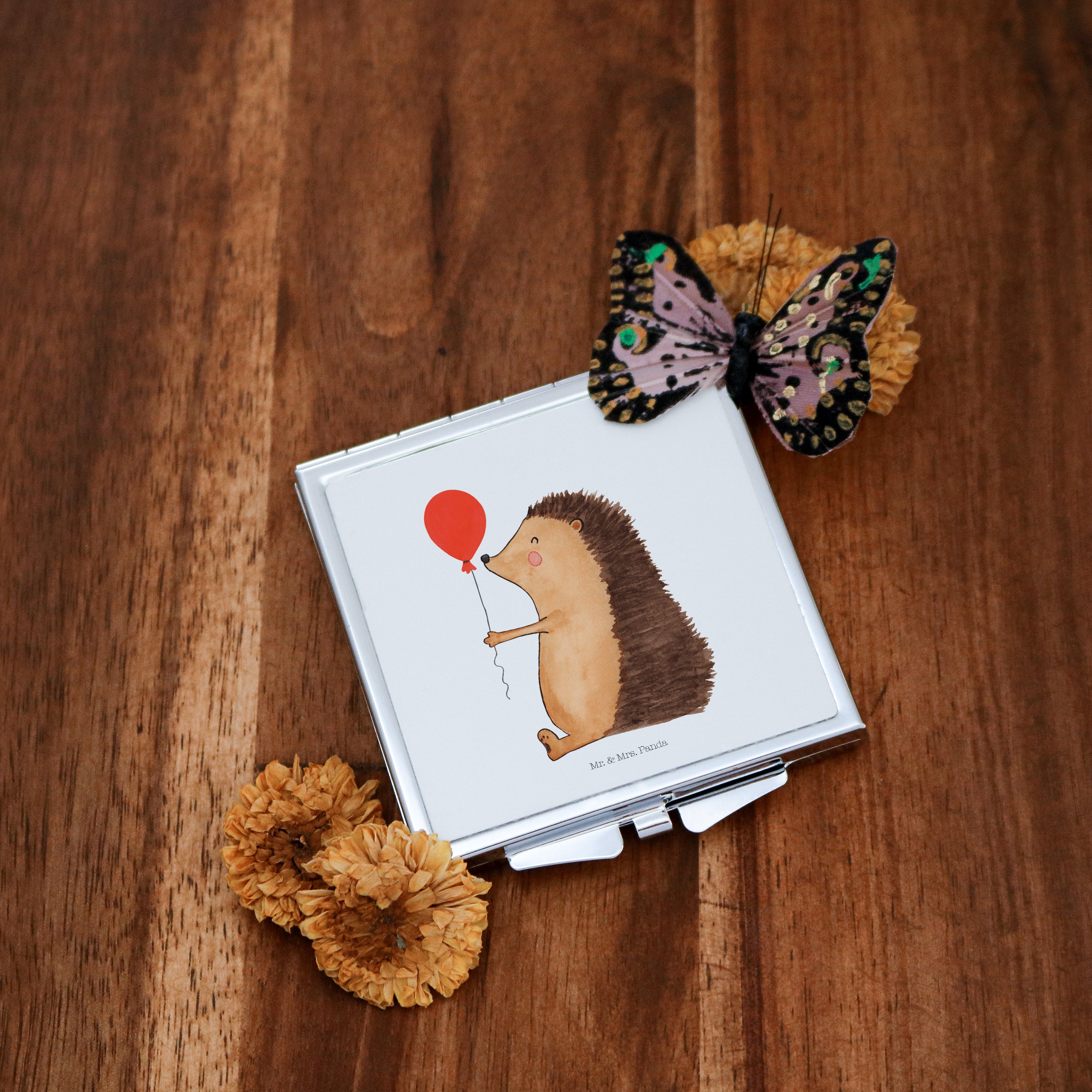 Handtaschenspiegel quadratisch Igel mit Luftballon - mit Spruch - Weiß