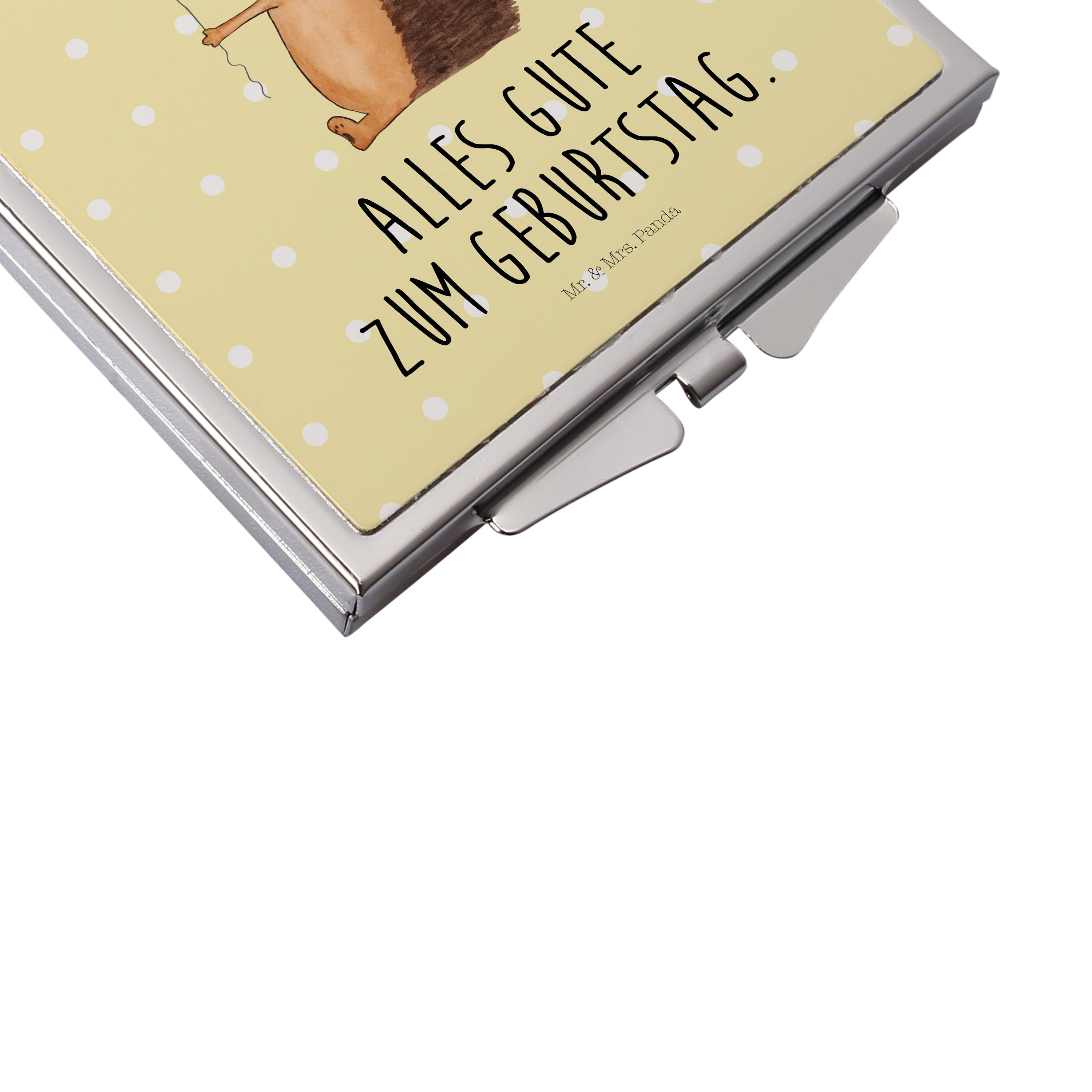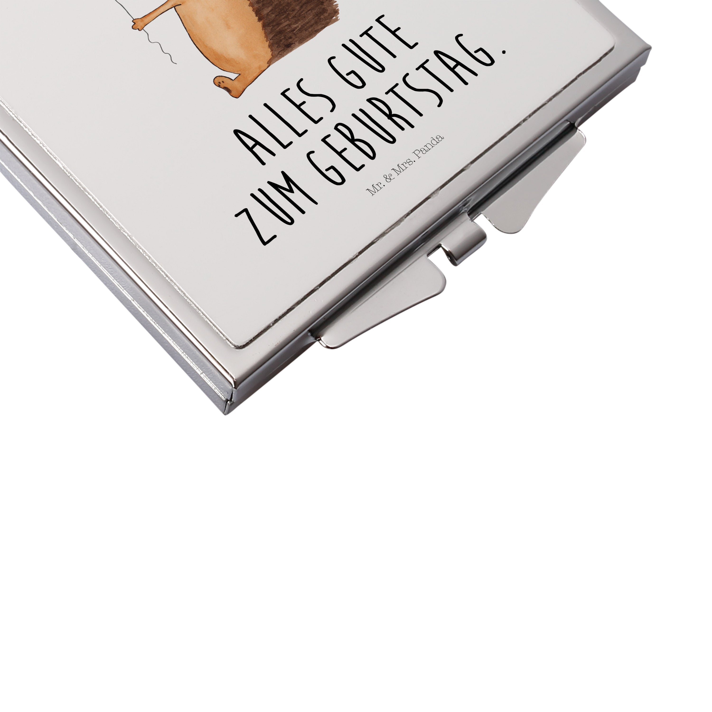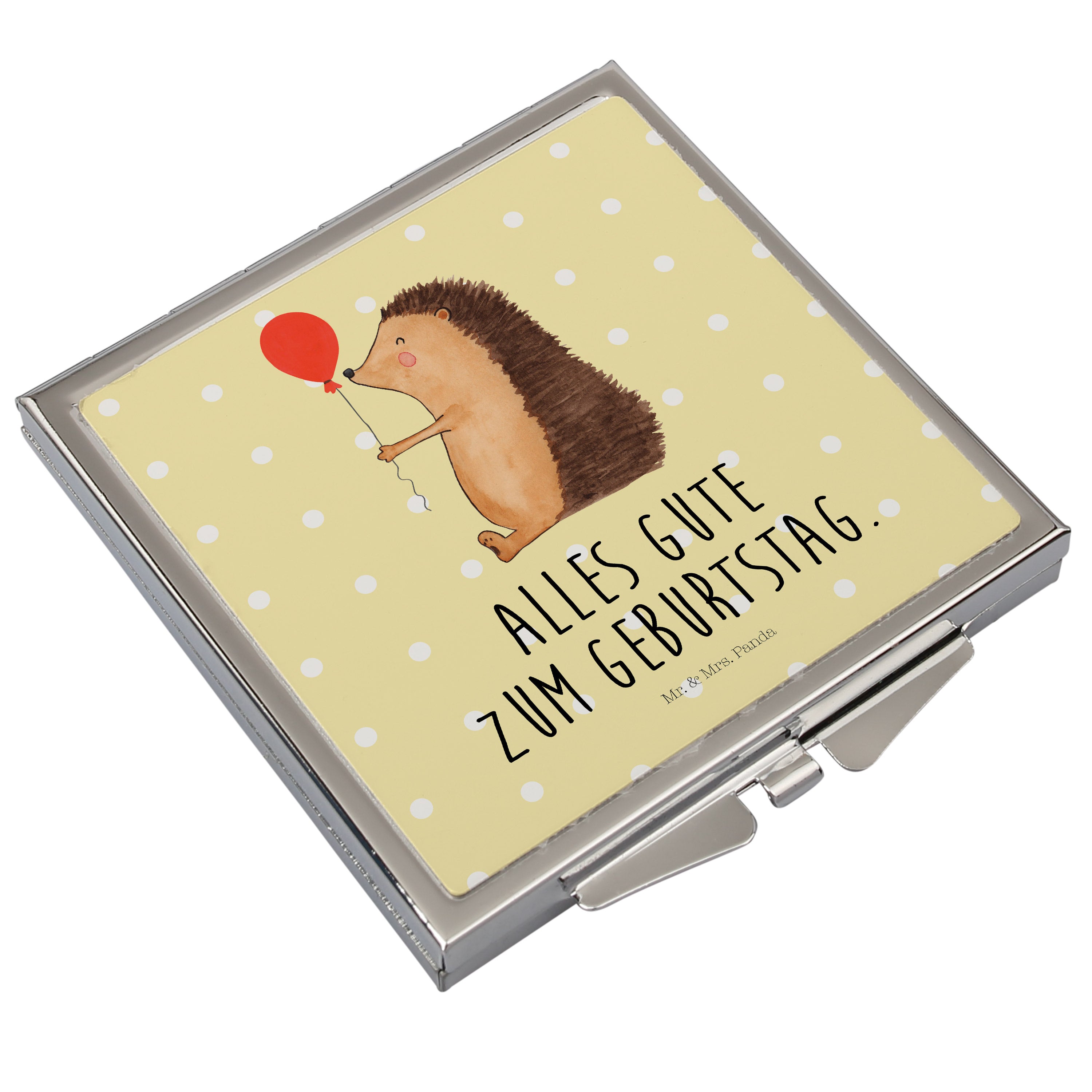 Handtaschenspiegel quadratisch Igel mit Luftballon Spiegel, Handtasche, Quadrat, silber, schminken, Schminkspiegel, Tiermotive, Gute Laune, lustige Sprüche, Tiere, Igel, Geburtstag, Herzlichen Glückwunsch, Glückwunsch, Geburtstagskind, Ballon, Happy Birthday
