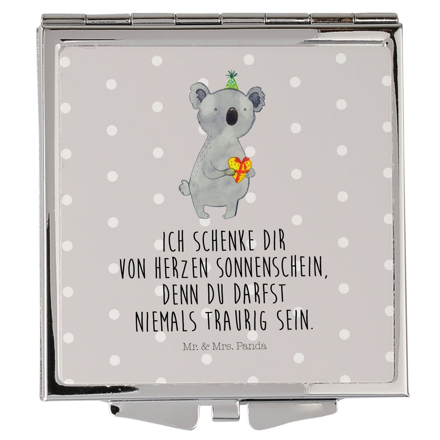 Handtaschenspiegel quadratisch Koala Geschenk - mit Spruch - Grau Pastell