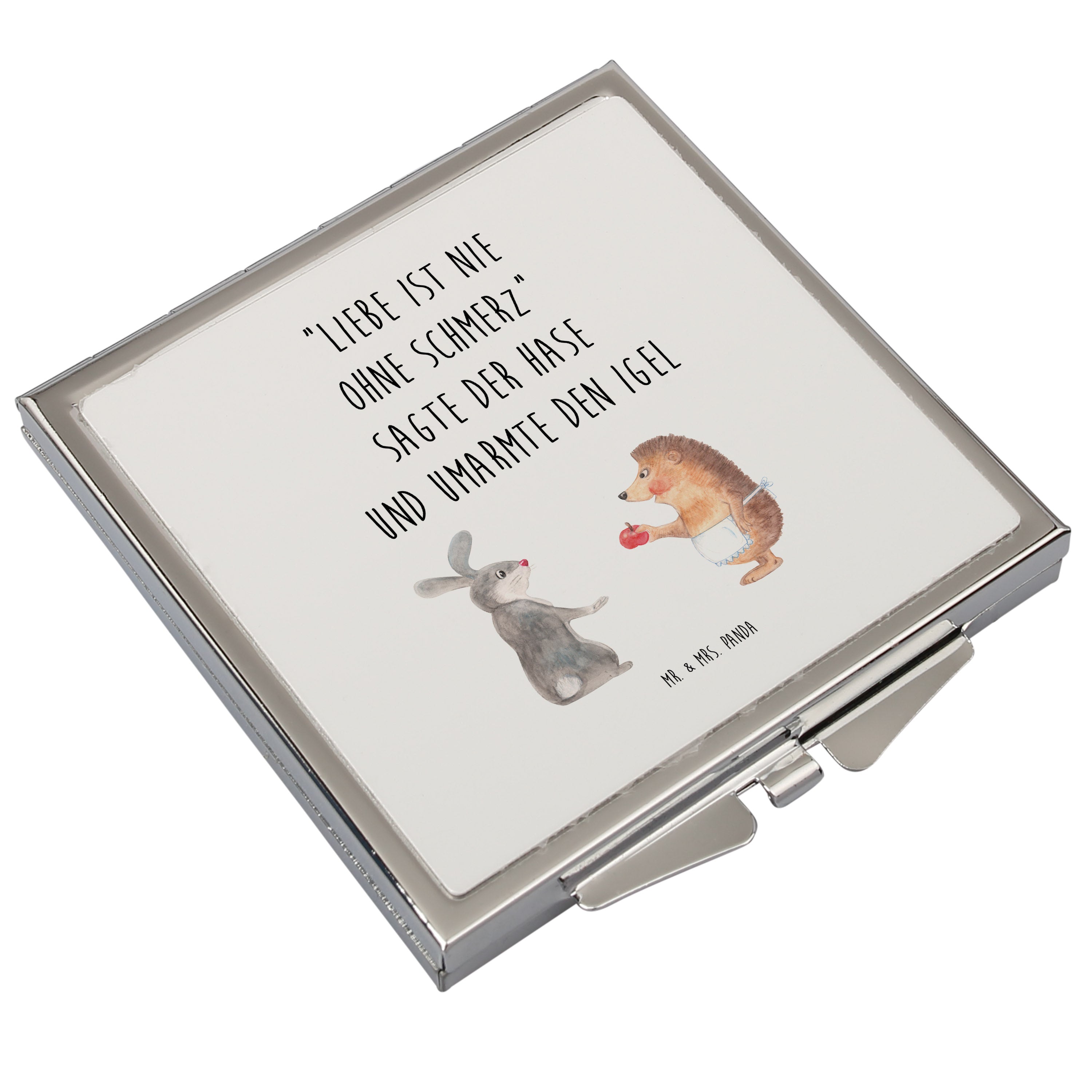 Handtaschenspiegel quadratisch Liebe ist nie ohne Schmerz - mit Spruch - Weiß