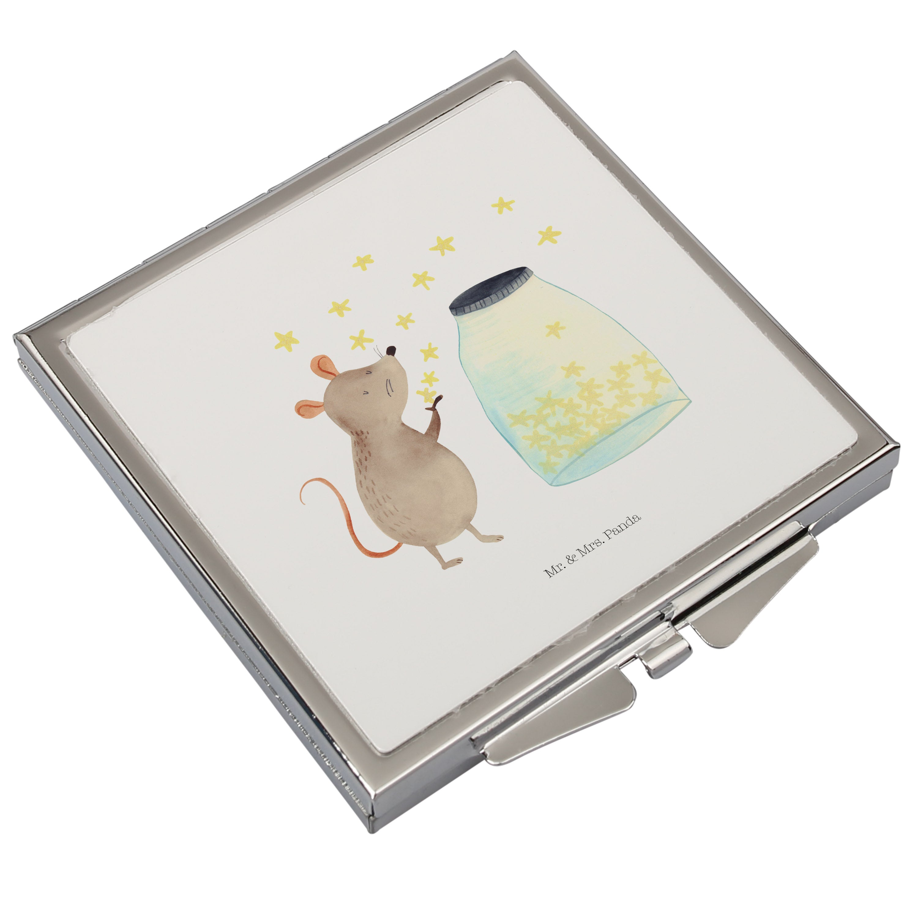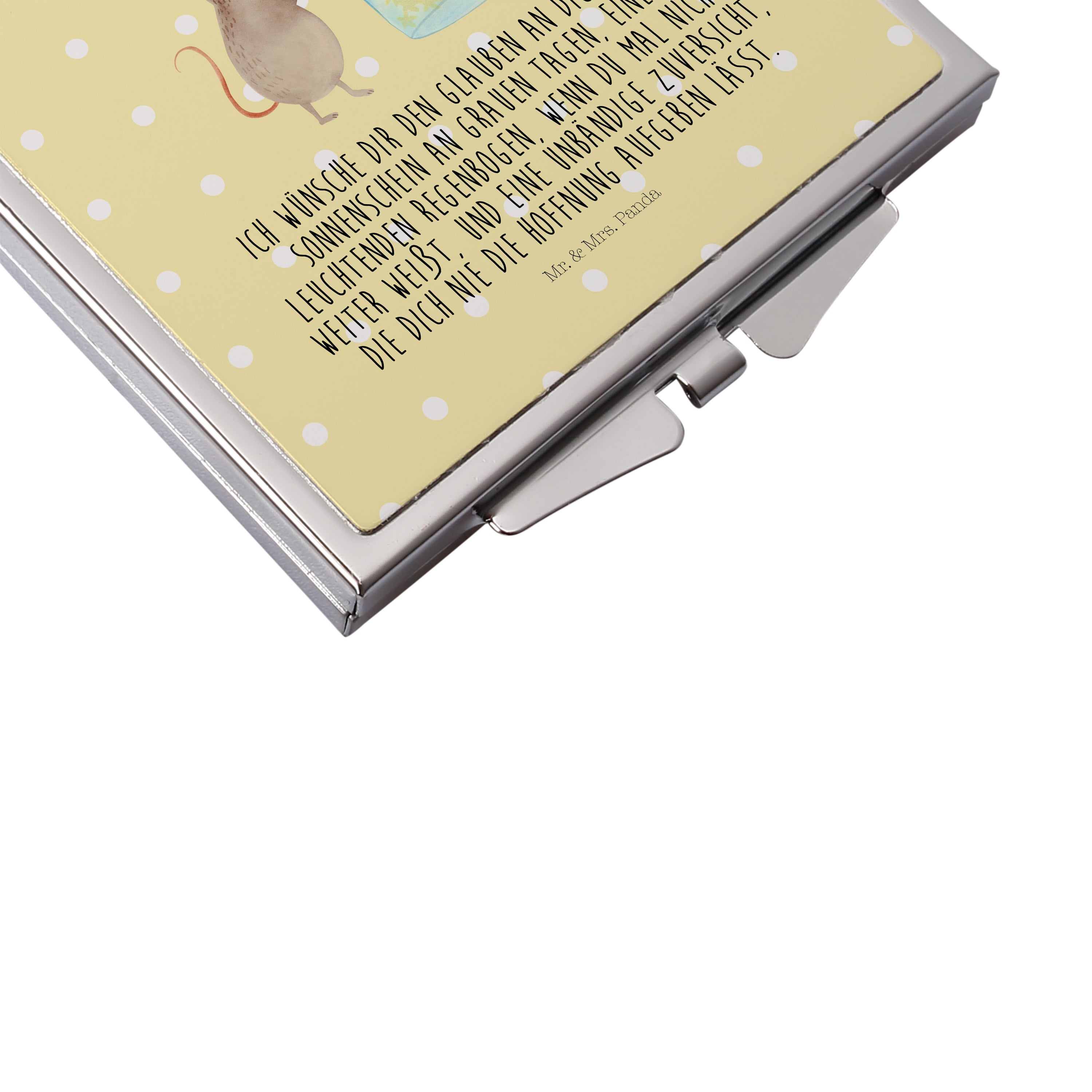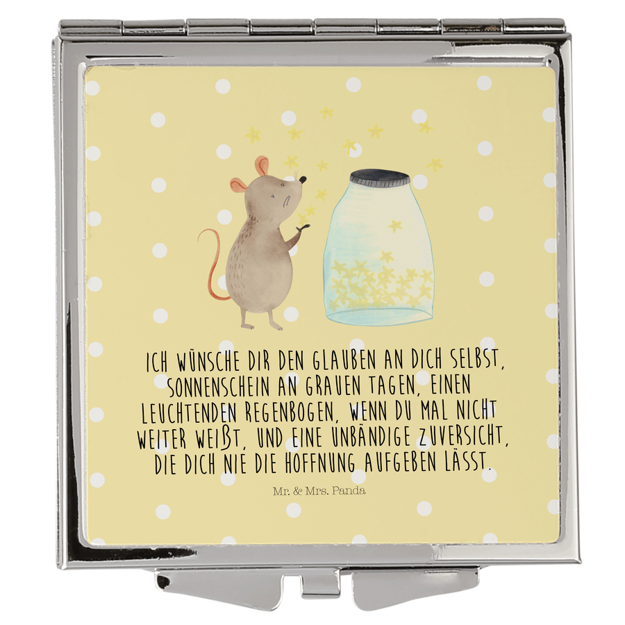 Handtaschenspiegel quadratisch Maus Sterne - mit Spruch - Gelb Pastell