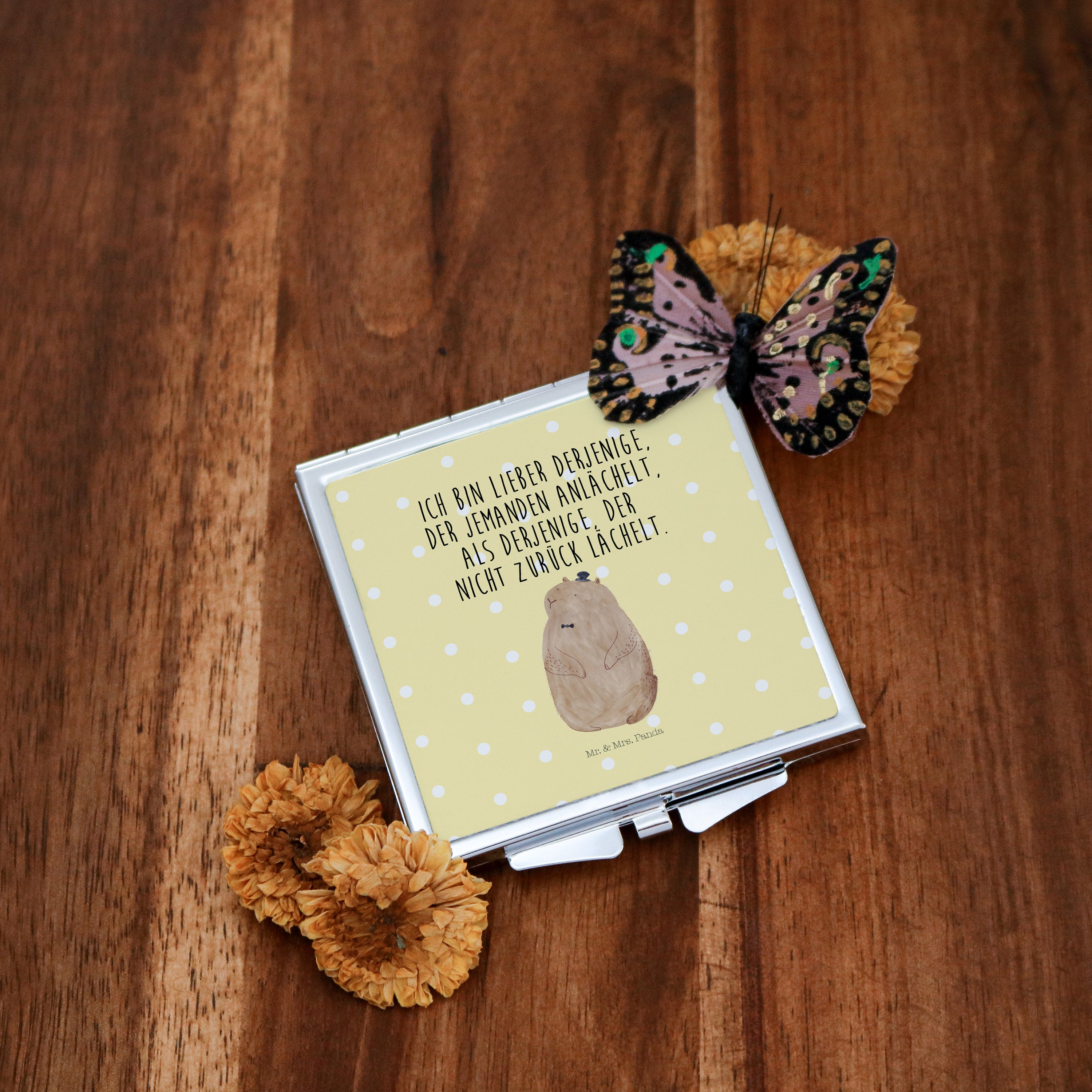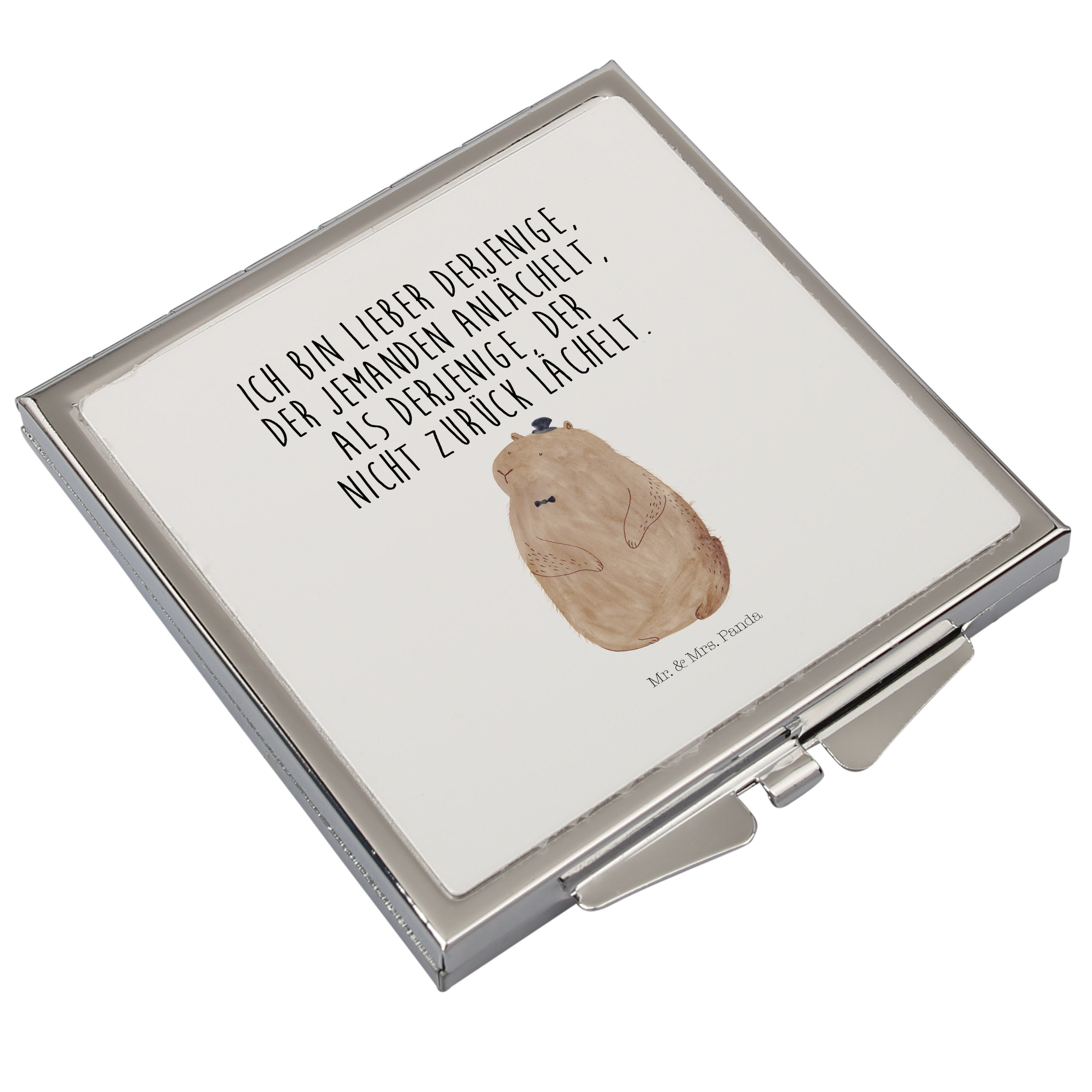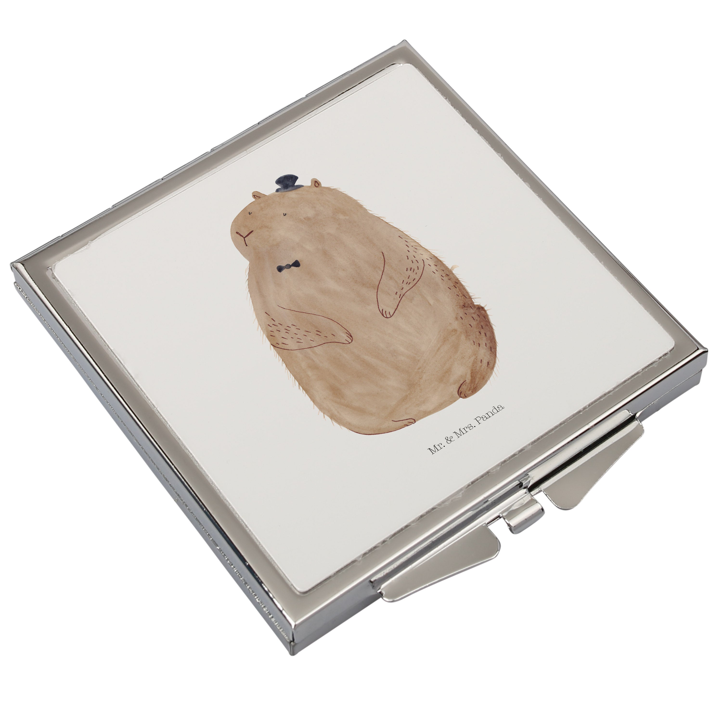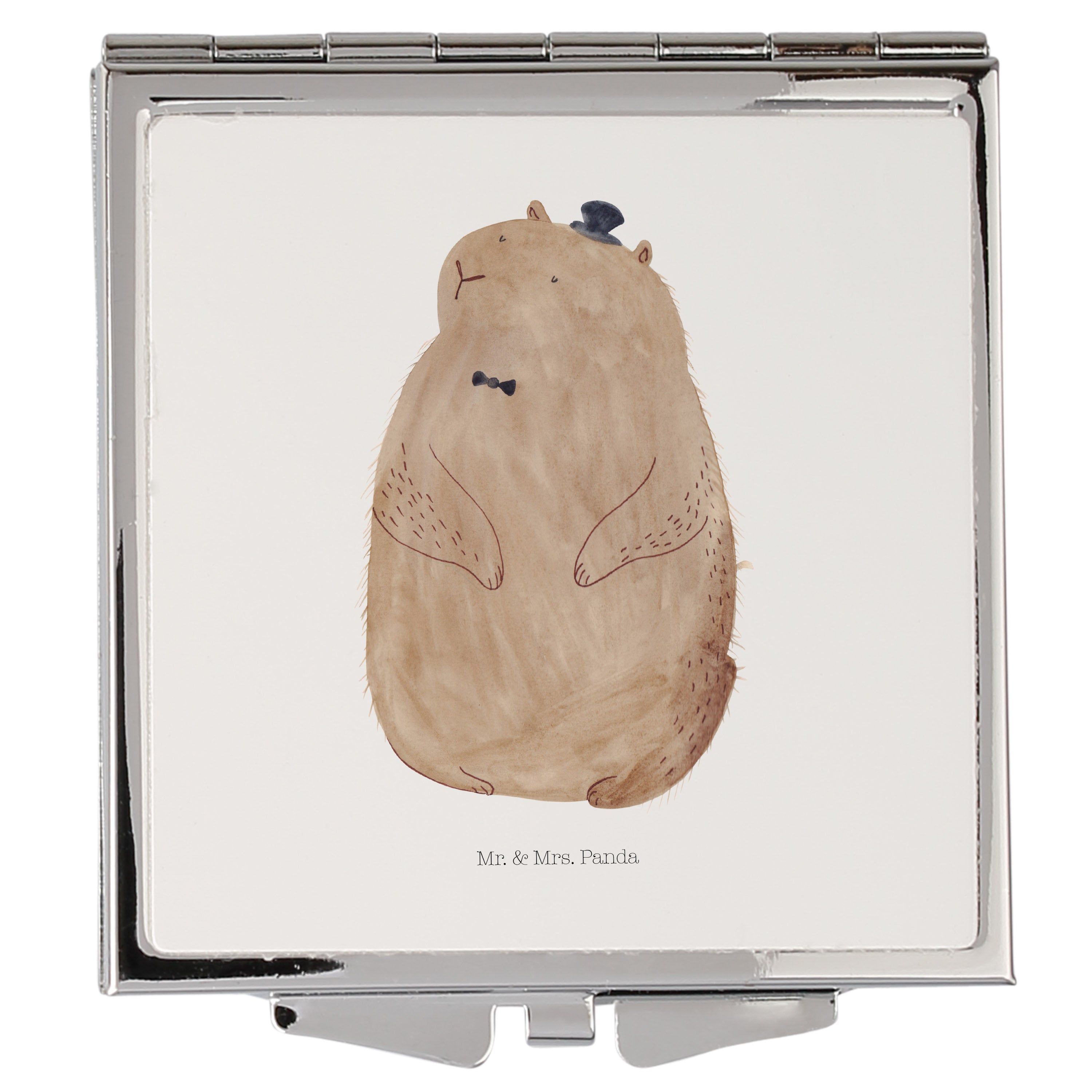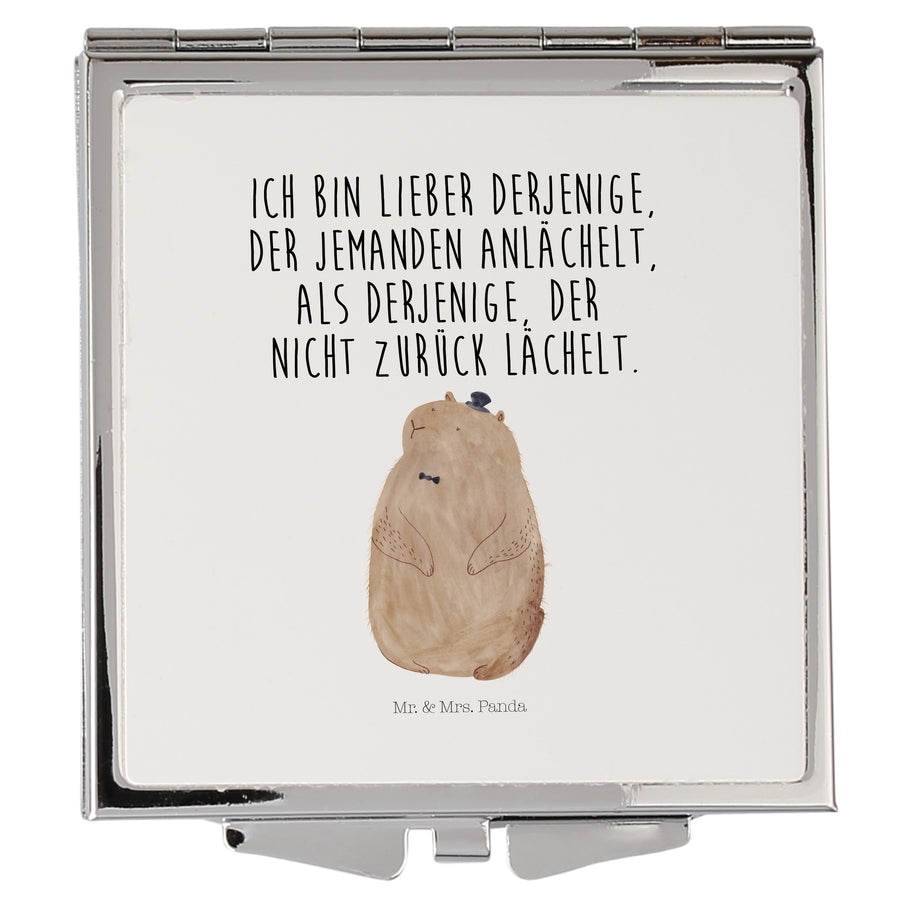 Handtaschenspiegel quadratisch Murmeltier - mit Spruch - Weiß
