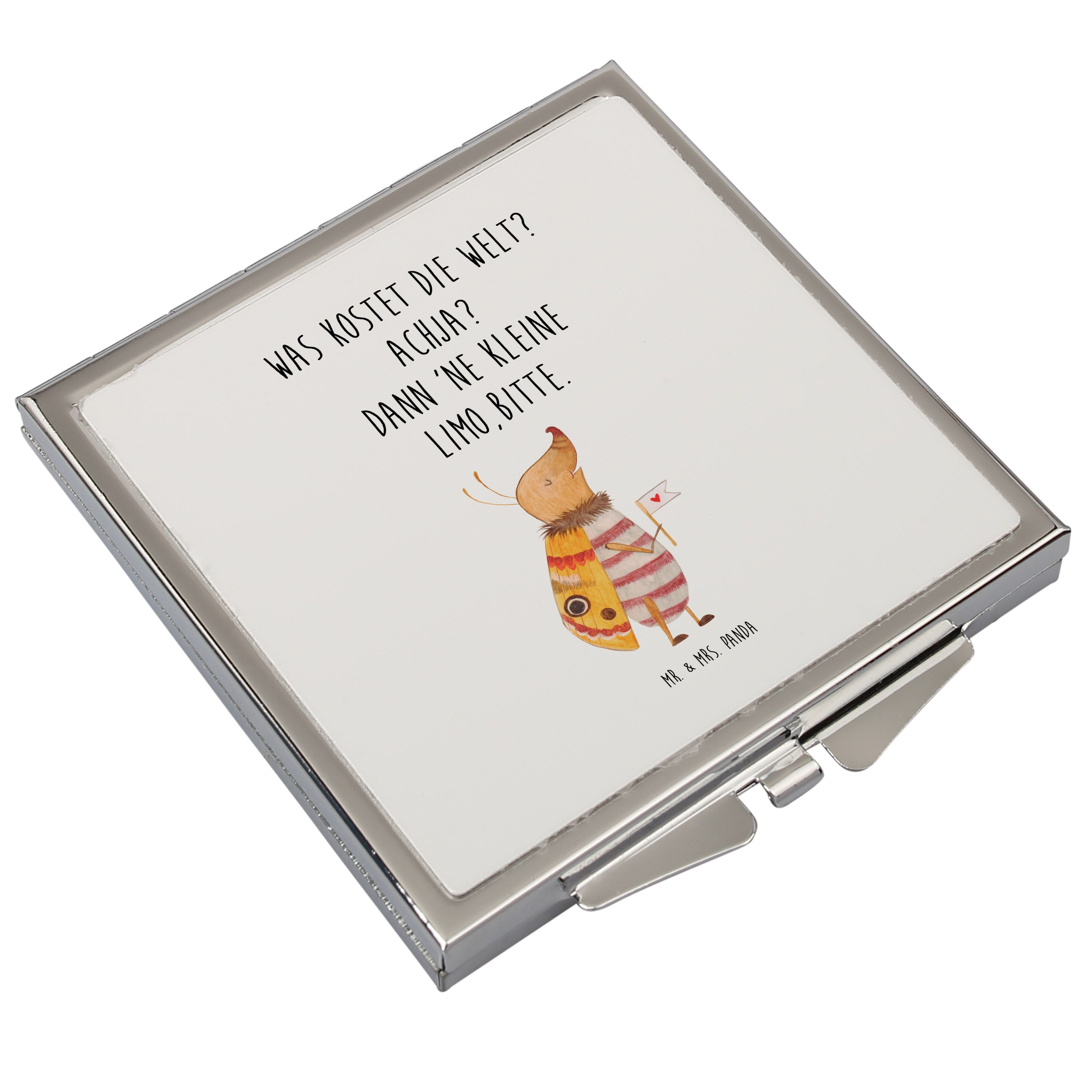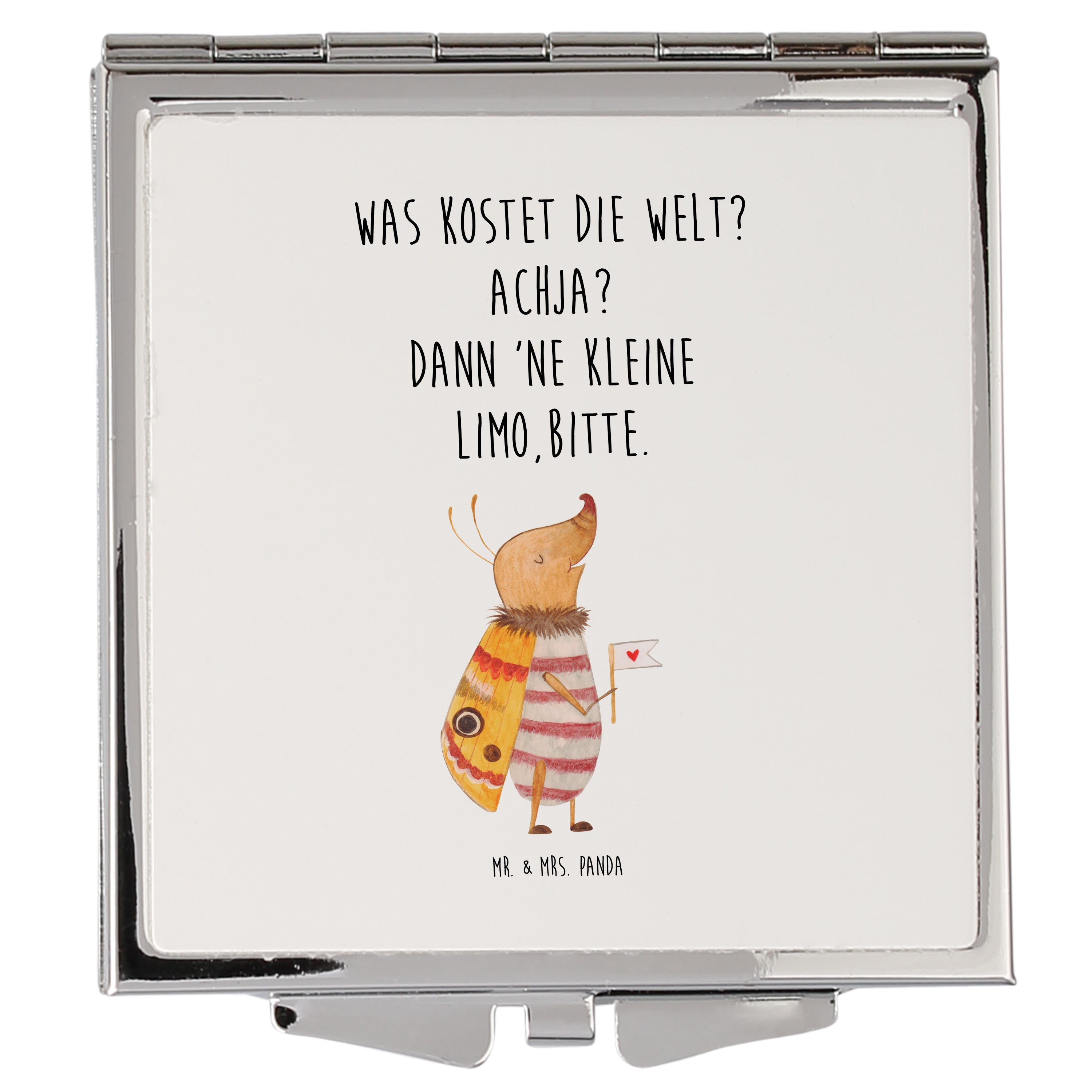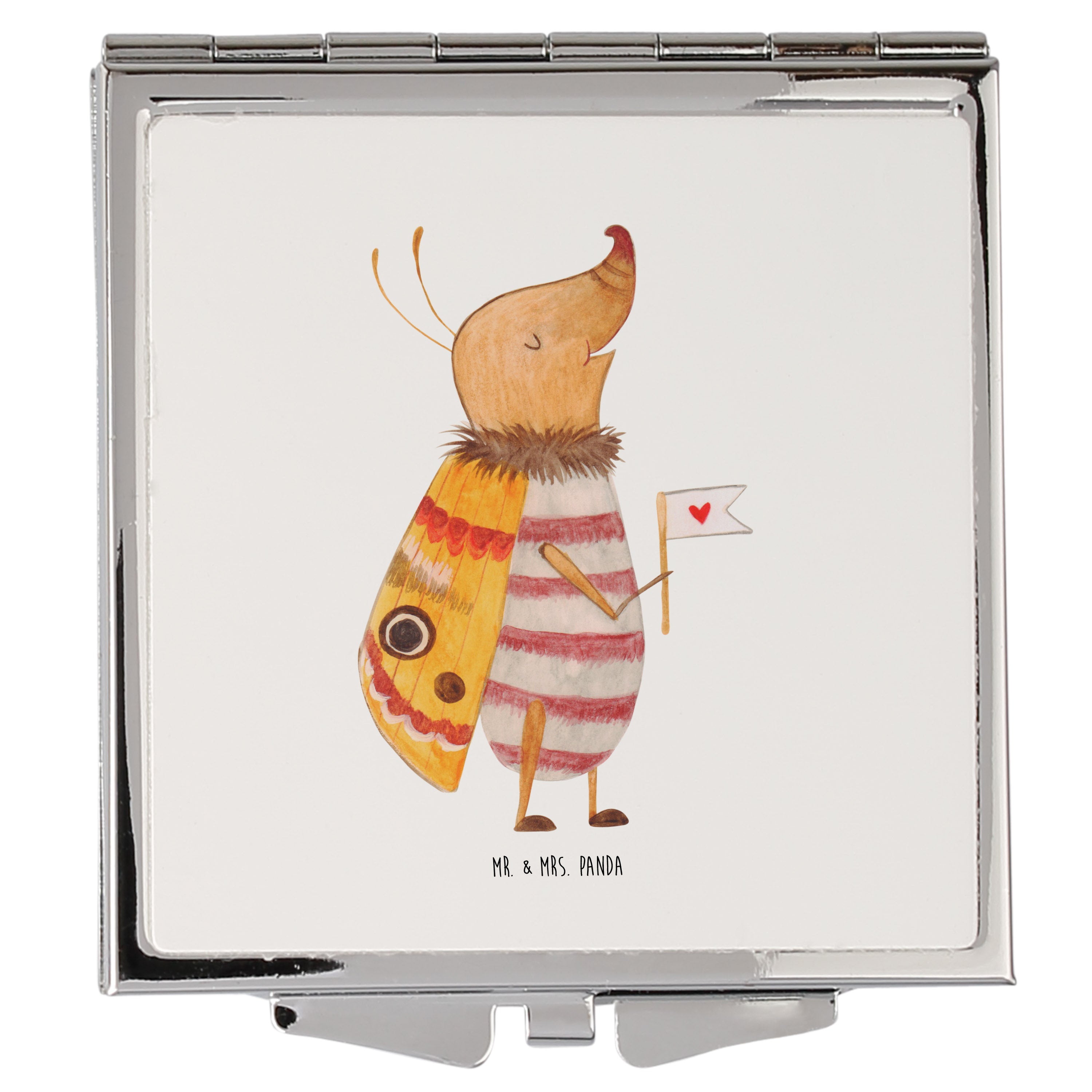 Handtaschenspiegel quadratisch Nachtfalter mit Fähnchen - mit Spruch - Weiß