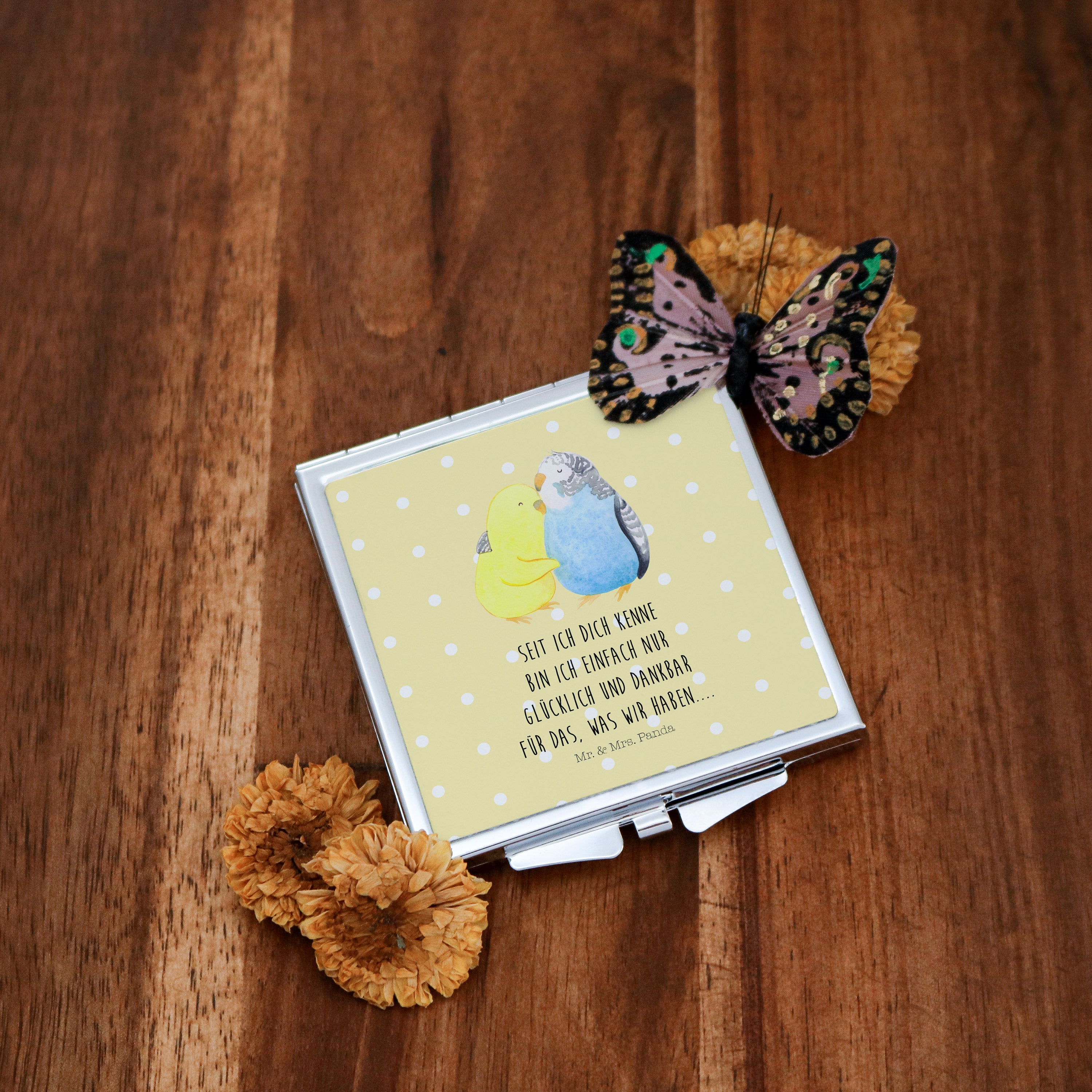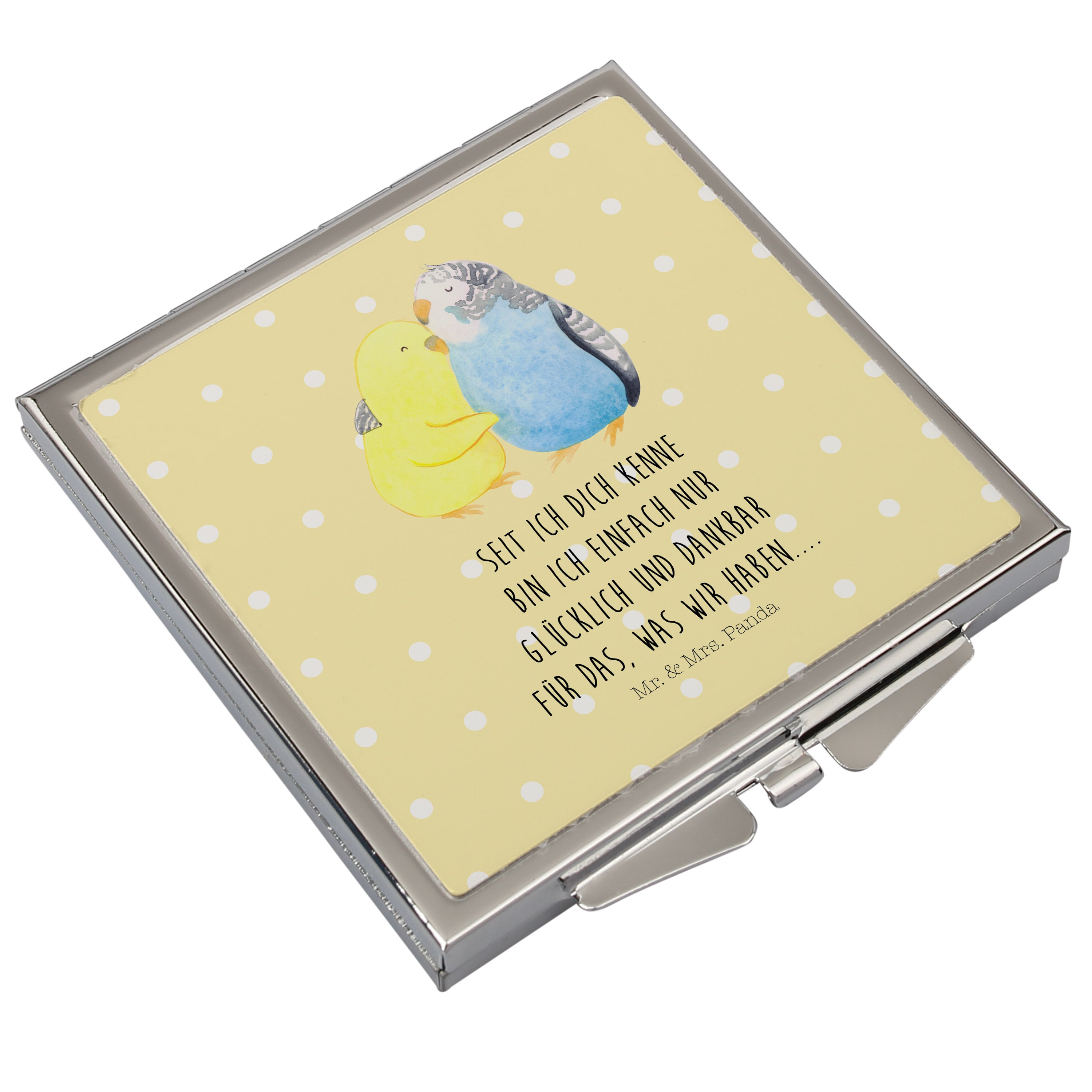 Handtaschenspiegel quadratisch Nasenbär - mit Spruch - Gelb Pastell