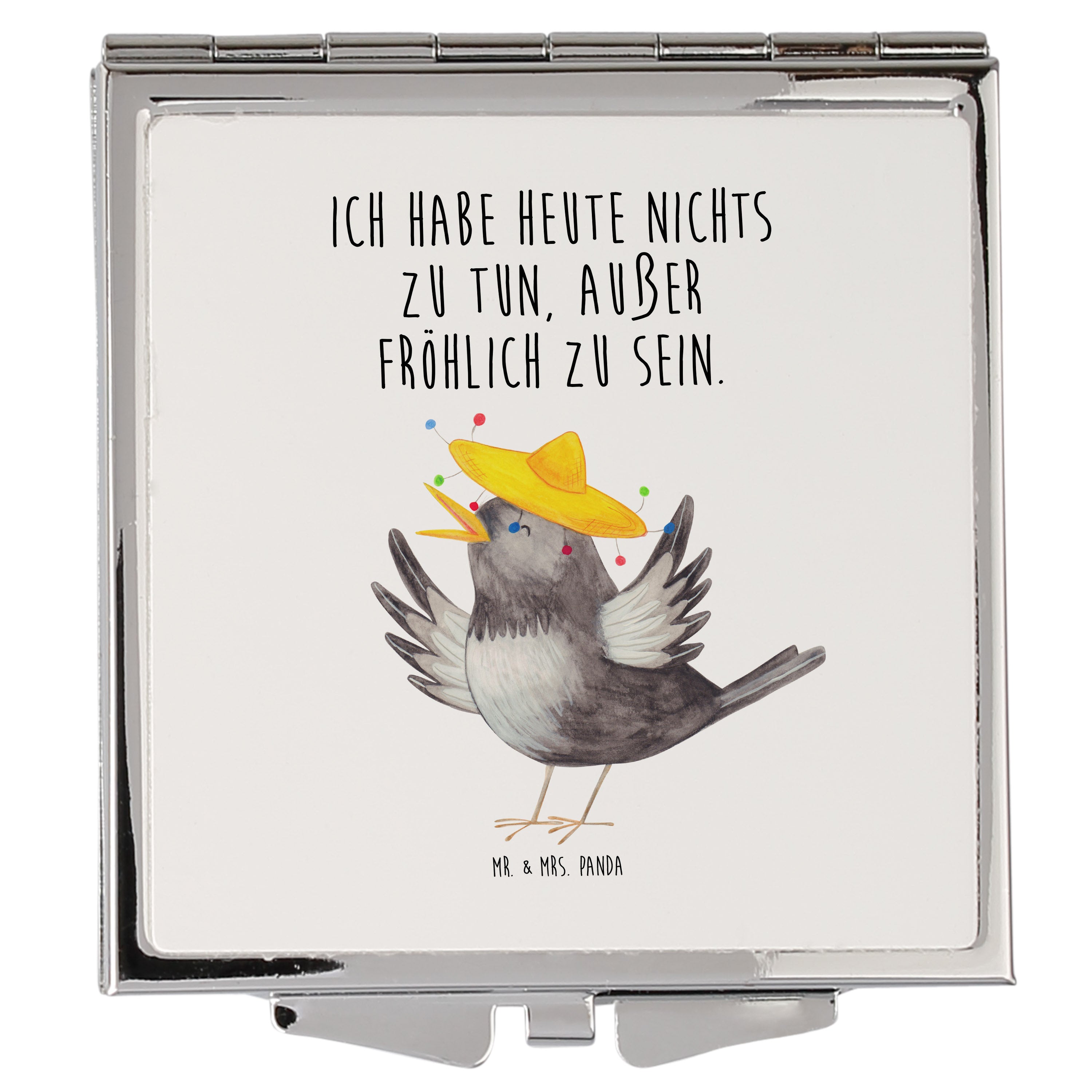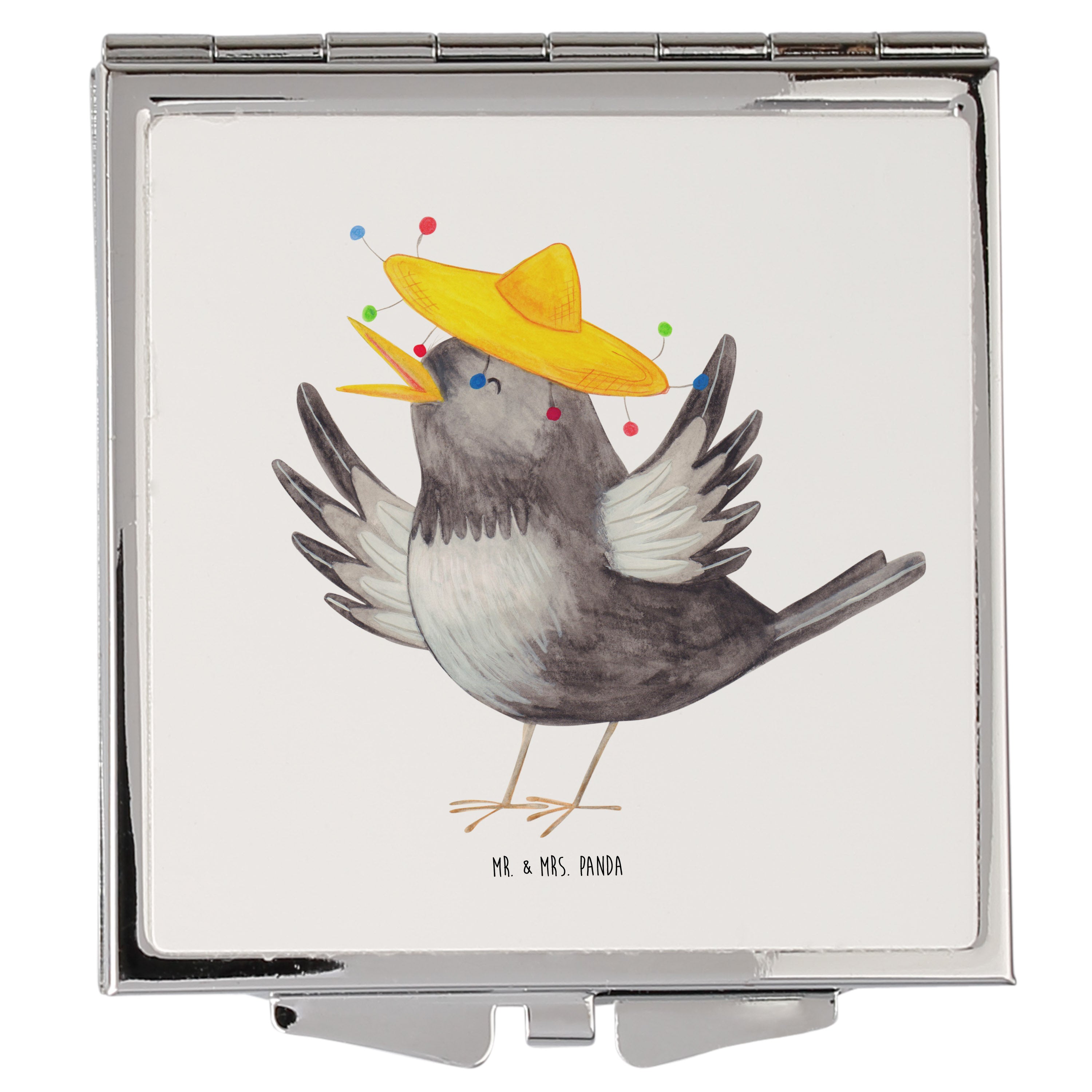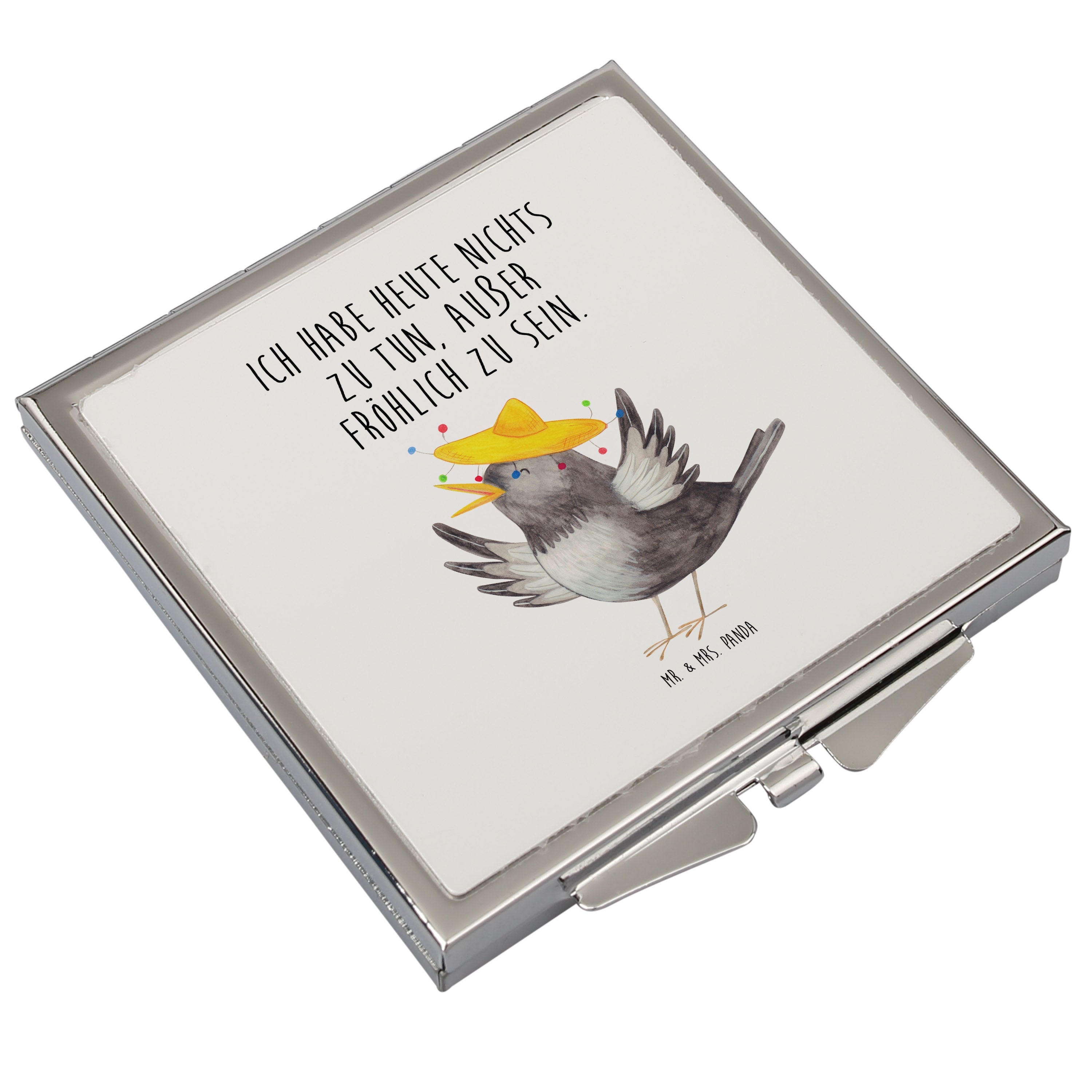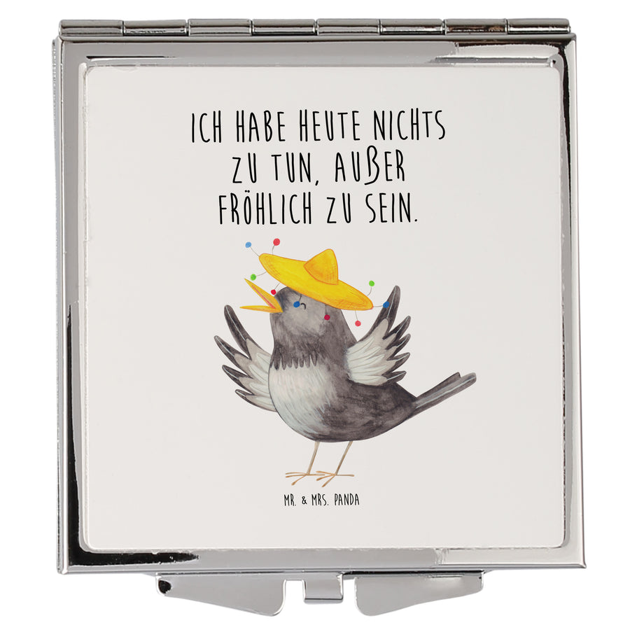 Handtaschenspiegel quadratisch Rabe mit Sombrero - mit Spruch - Weiß