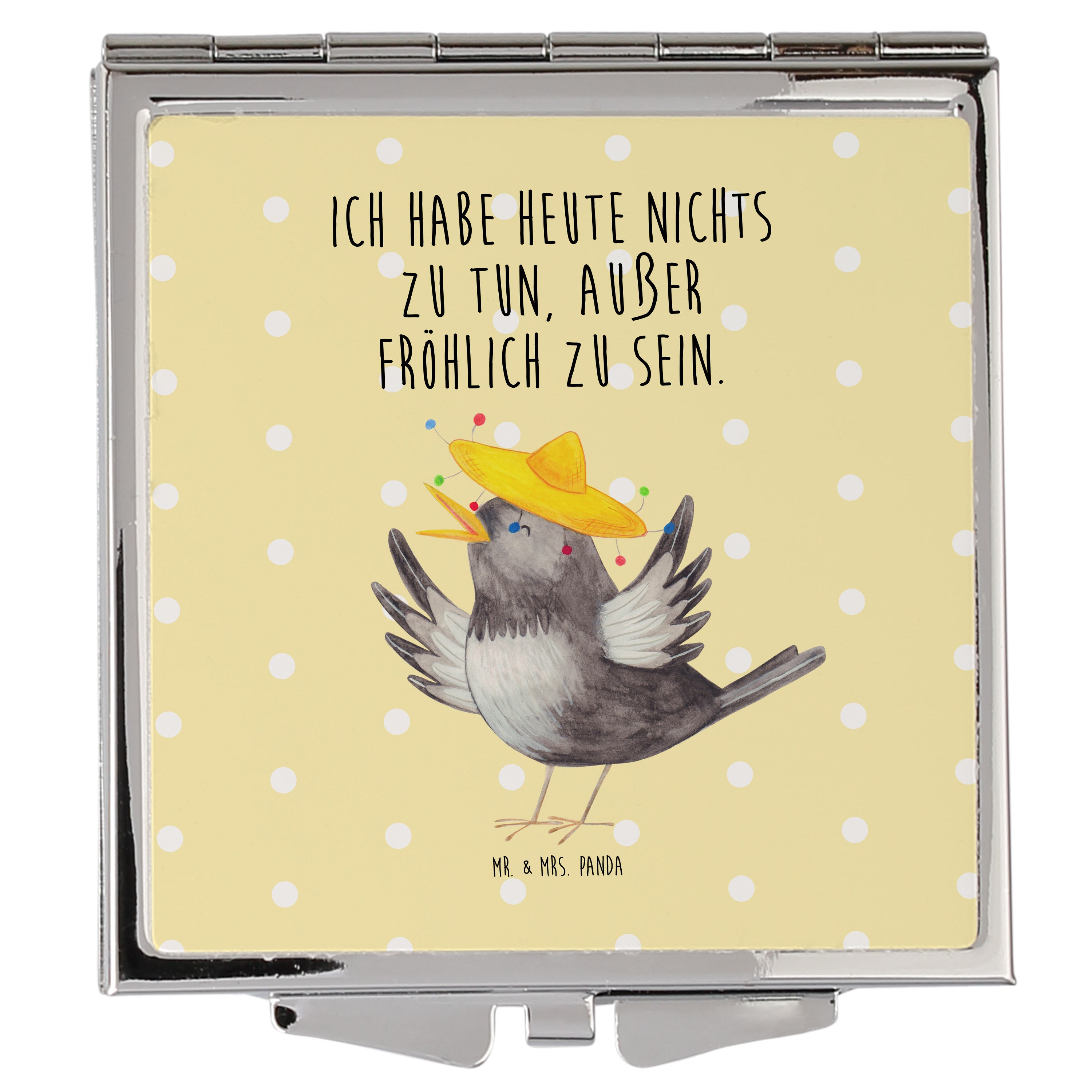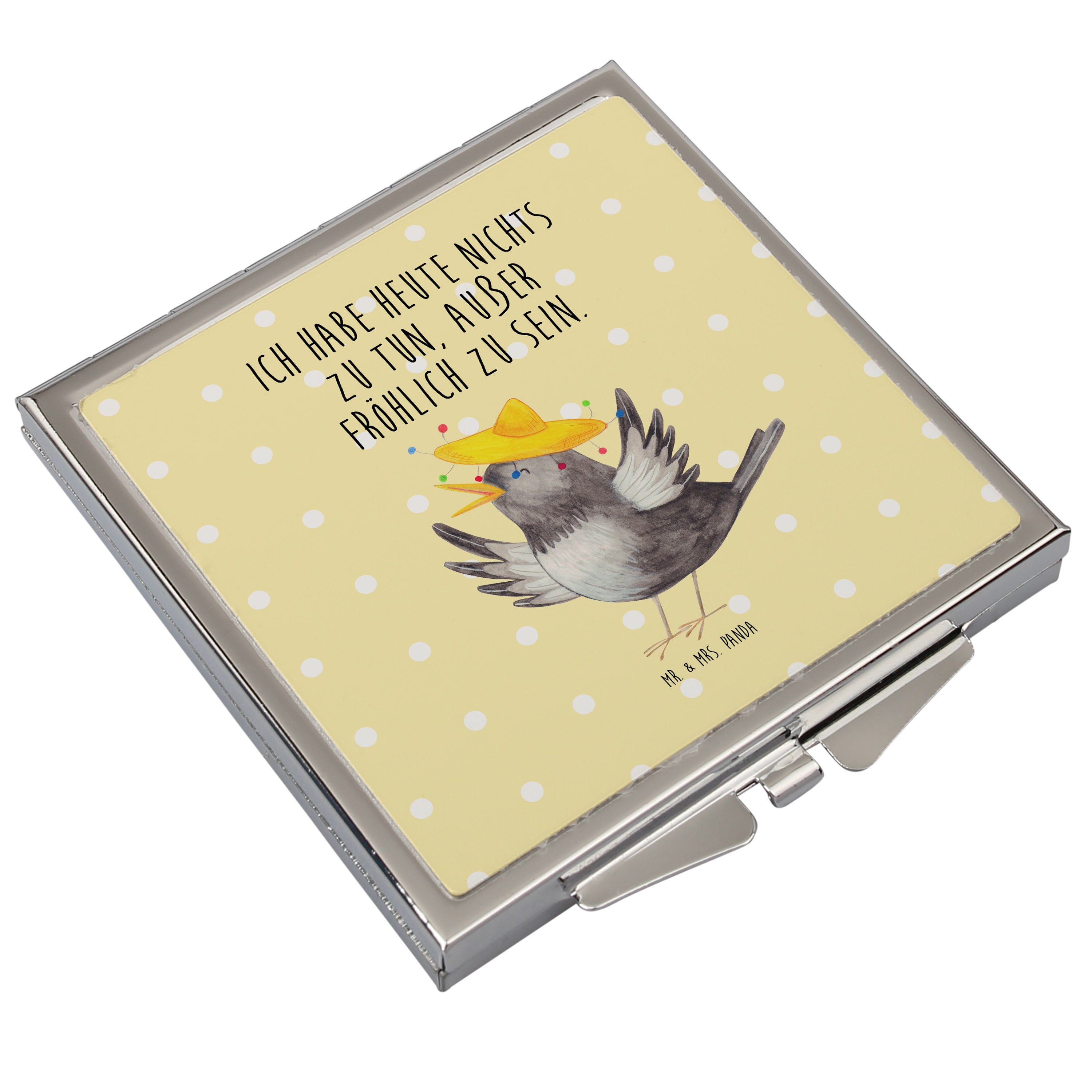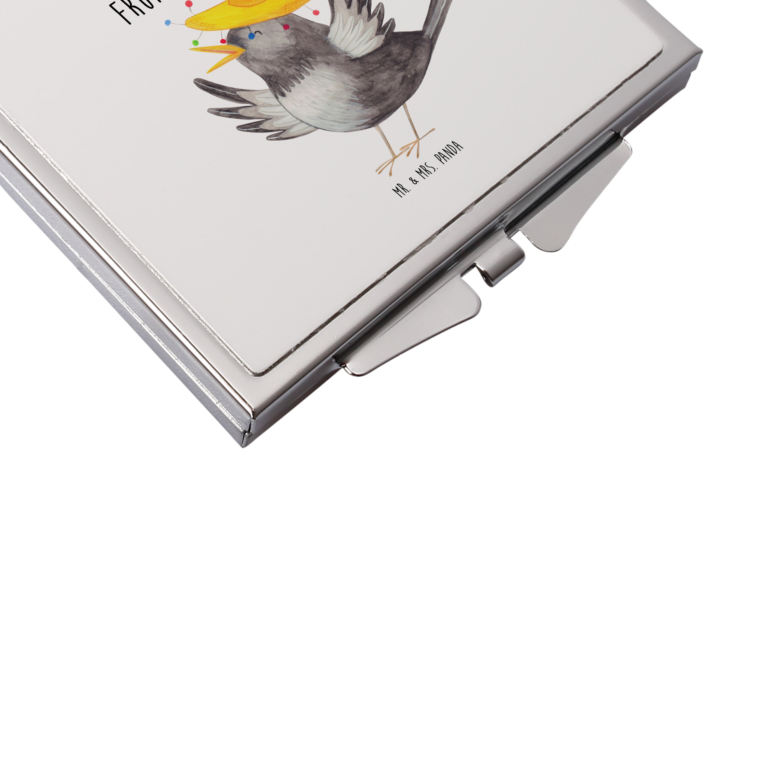 Handtaschenspiegel quadratisch Rabe mit Sombrero - mit Spruch - Weiß