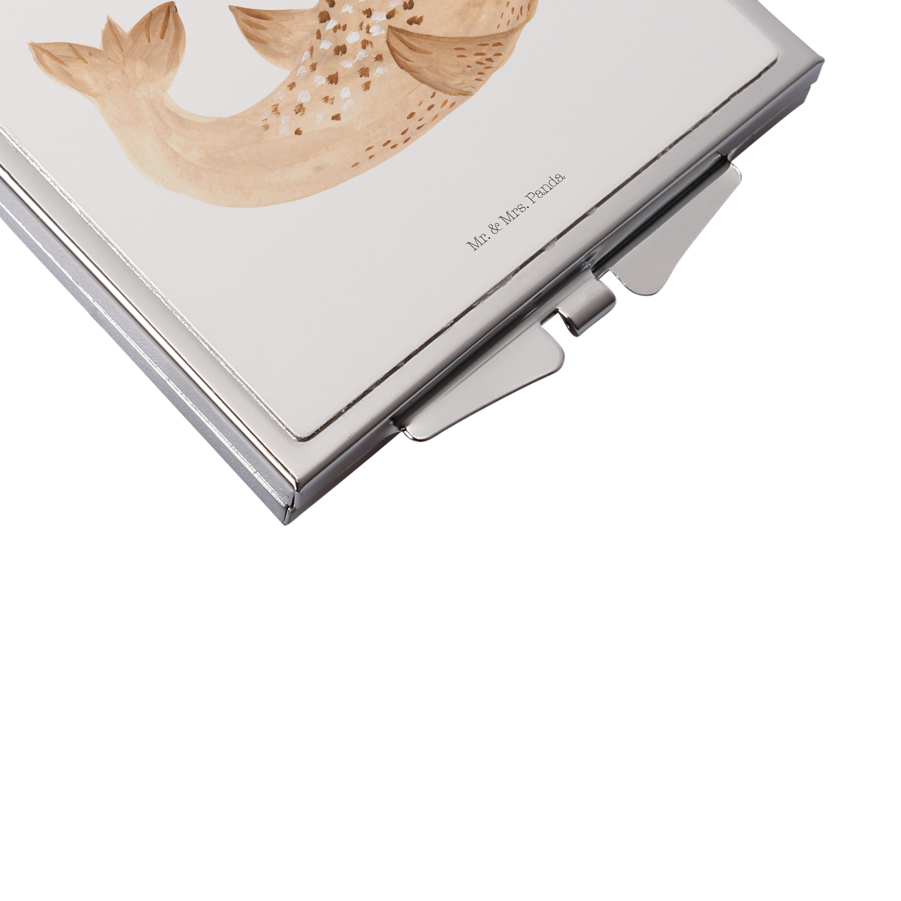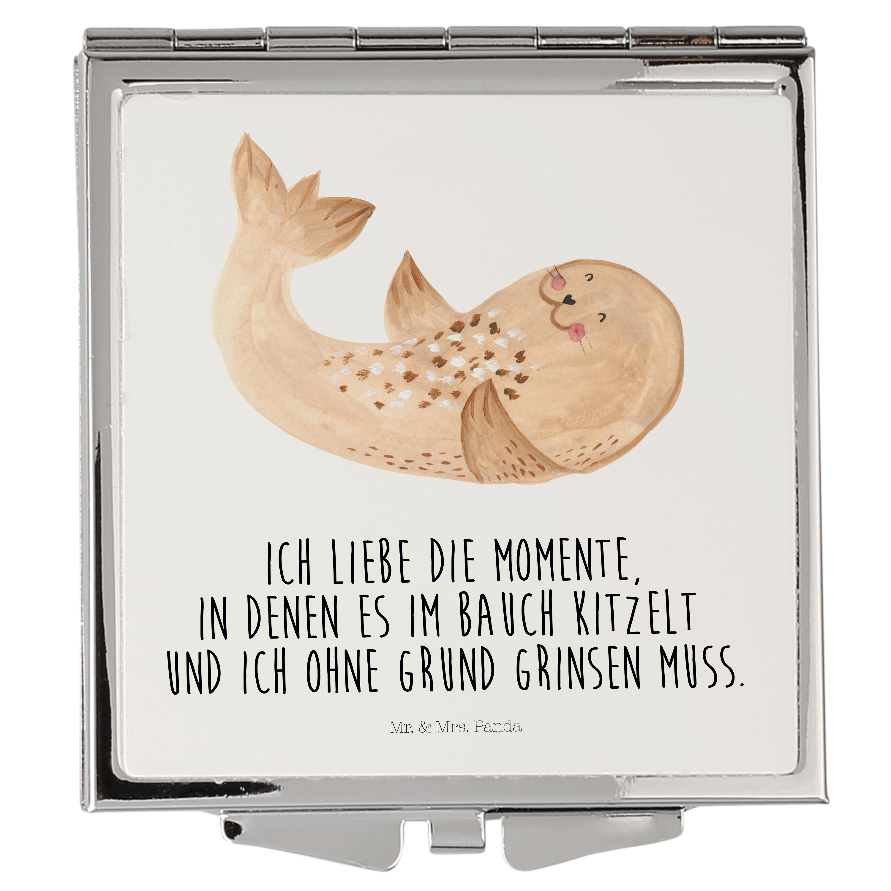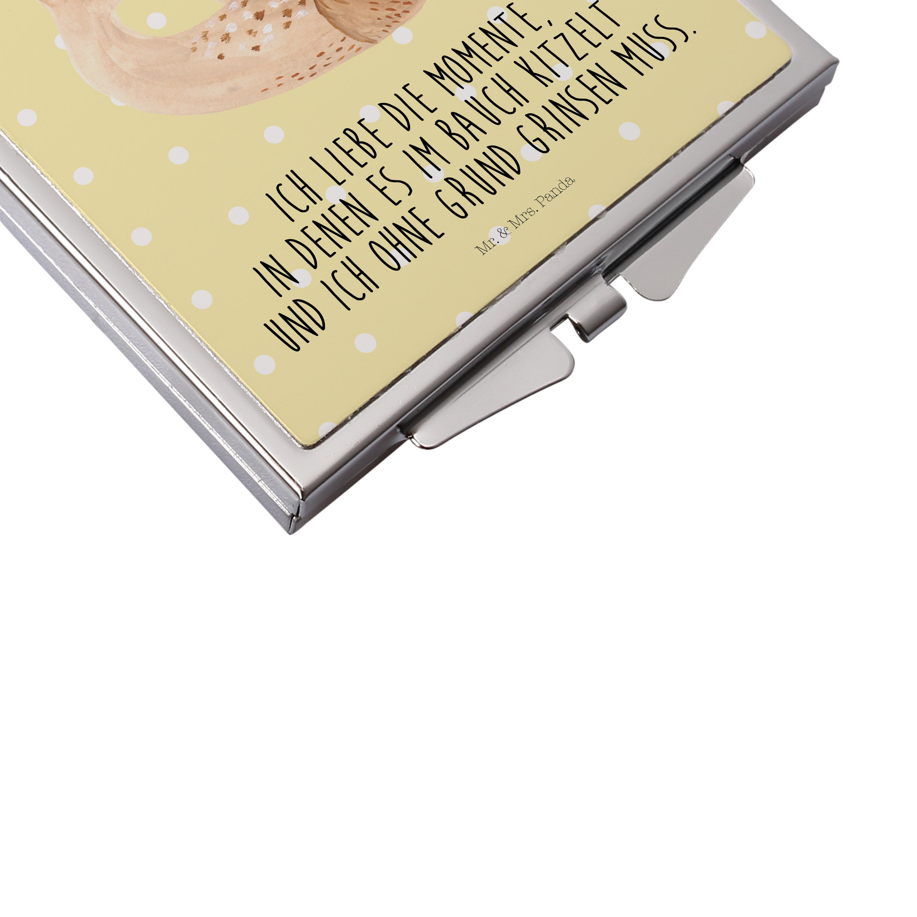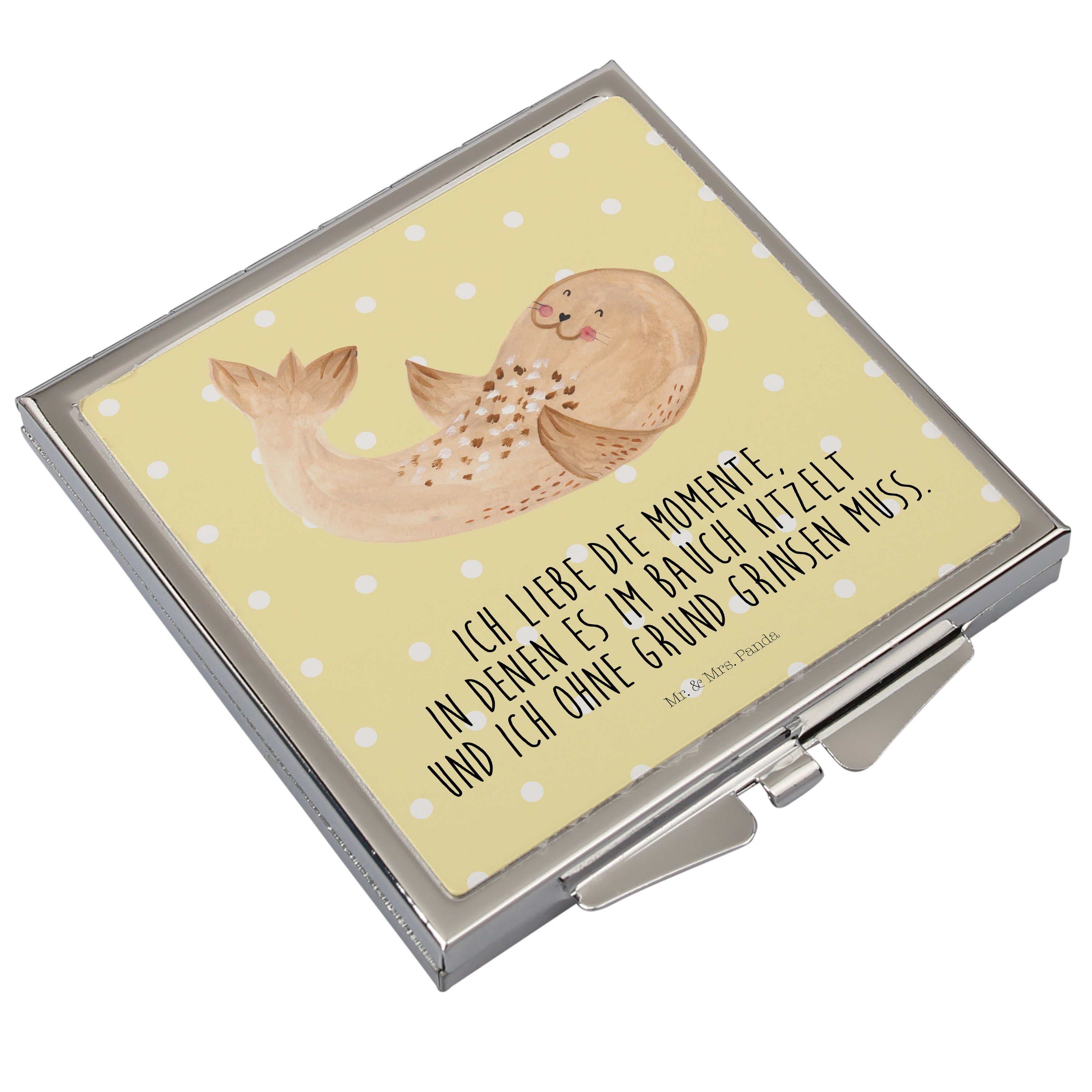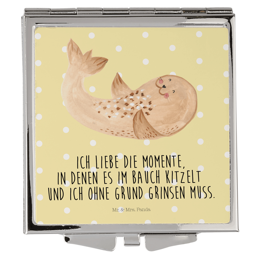 Handtaschenspiegel quadratisch Robbe liegend - mit Spruch - Gelb Pastell