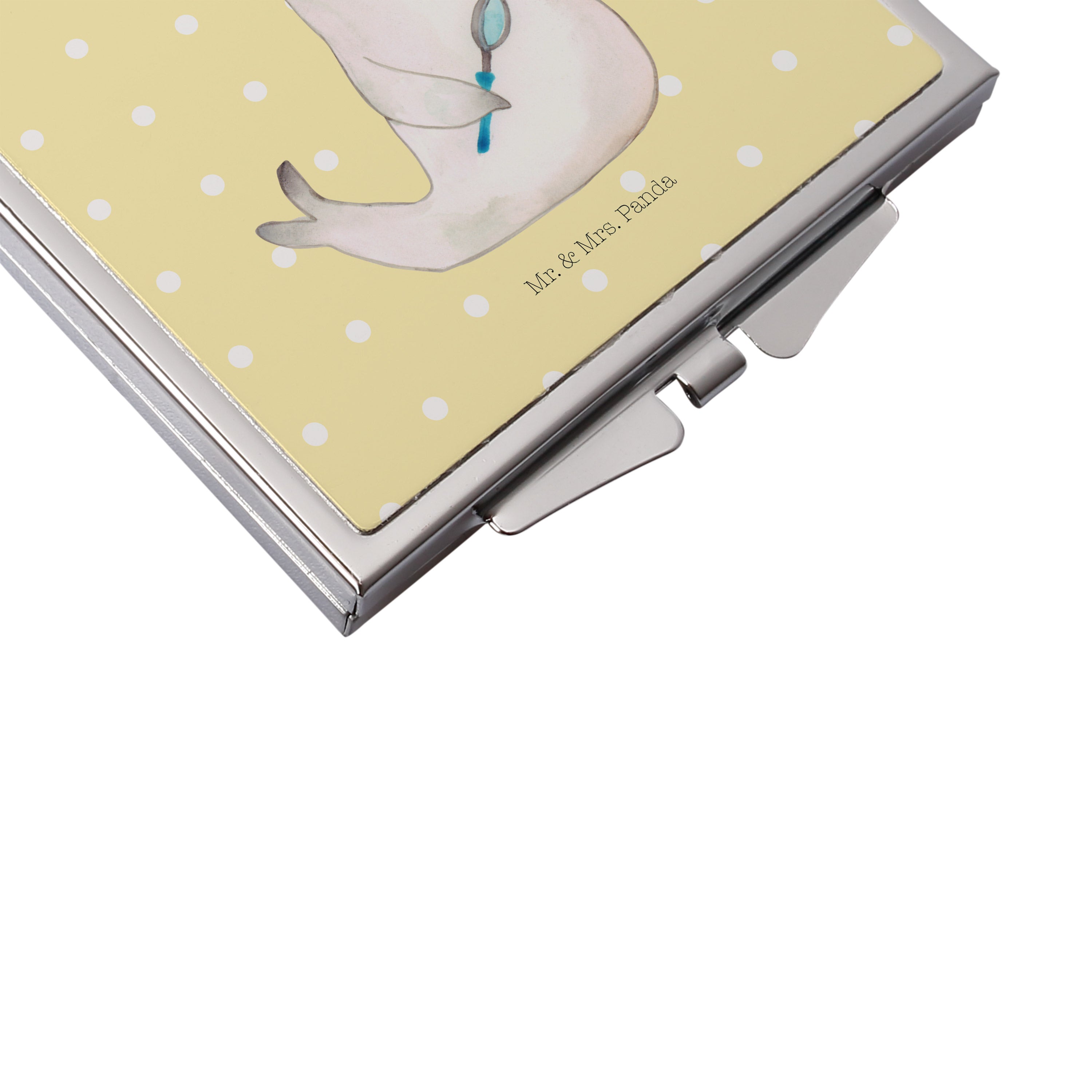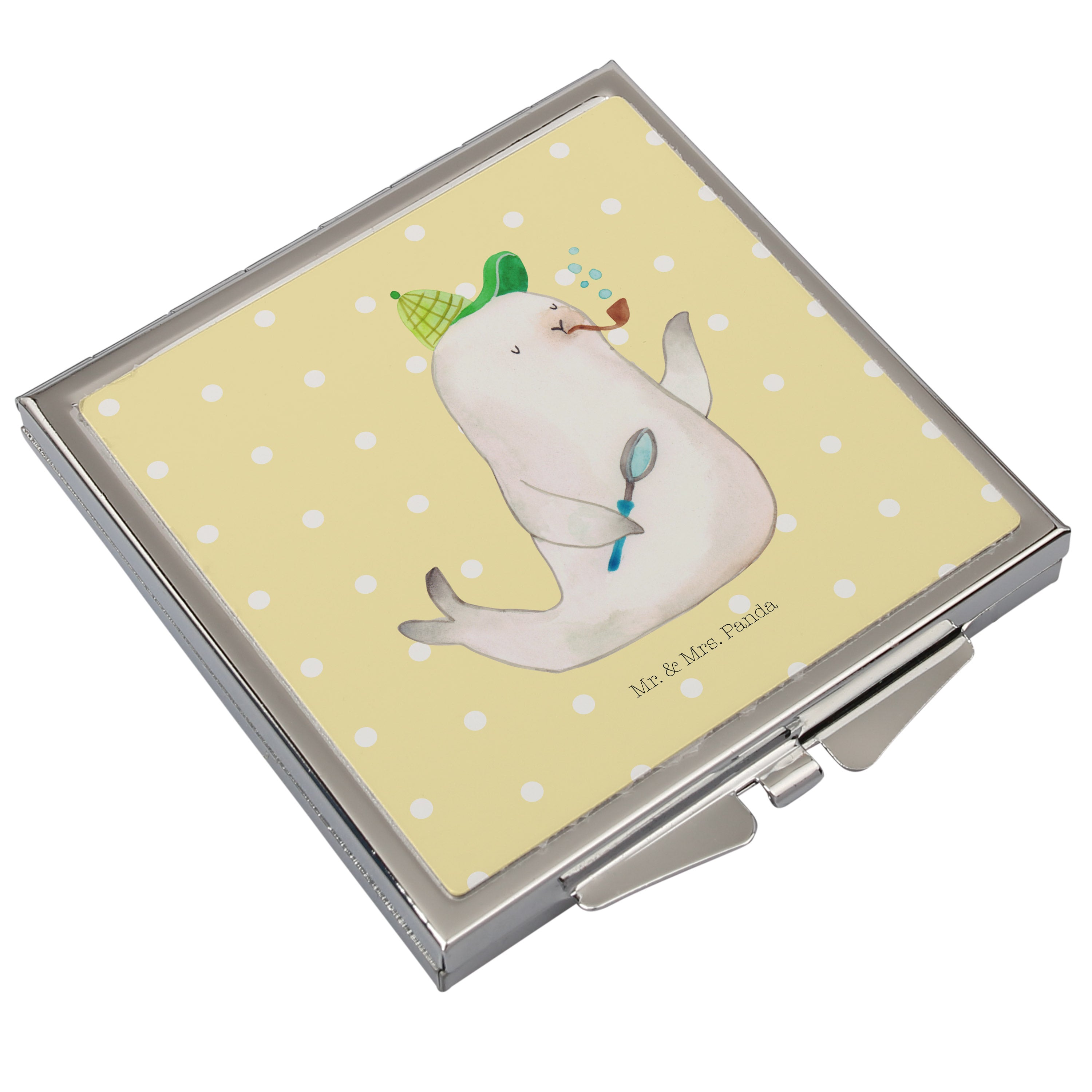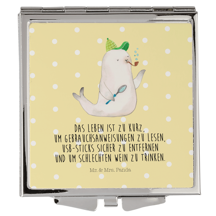 Handtaschenspiegel quadratisch Robbe Sherlock - mit Spruch - Gelb Pastell