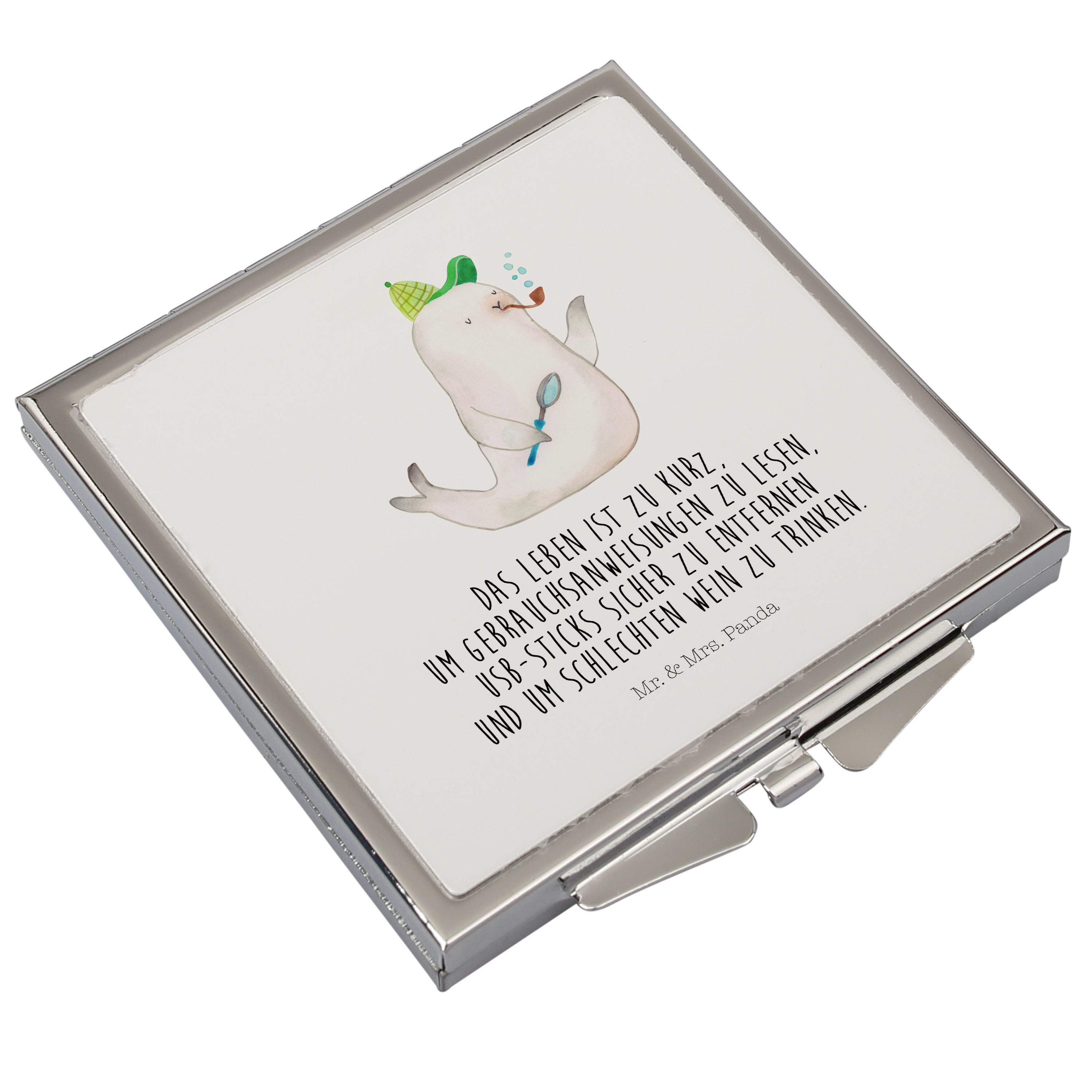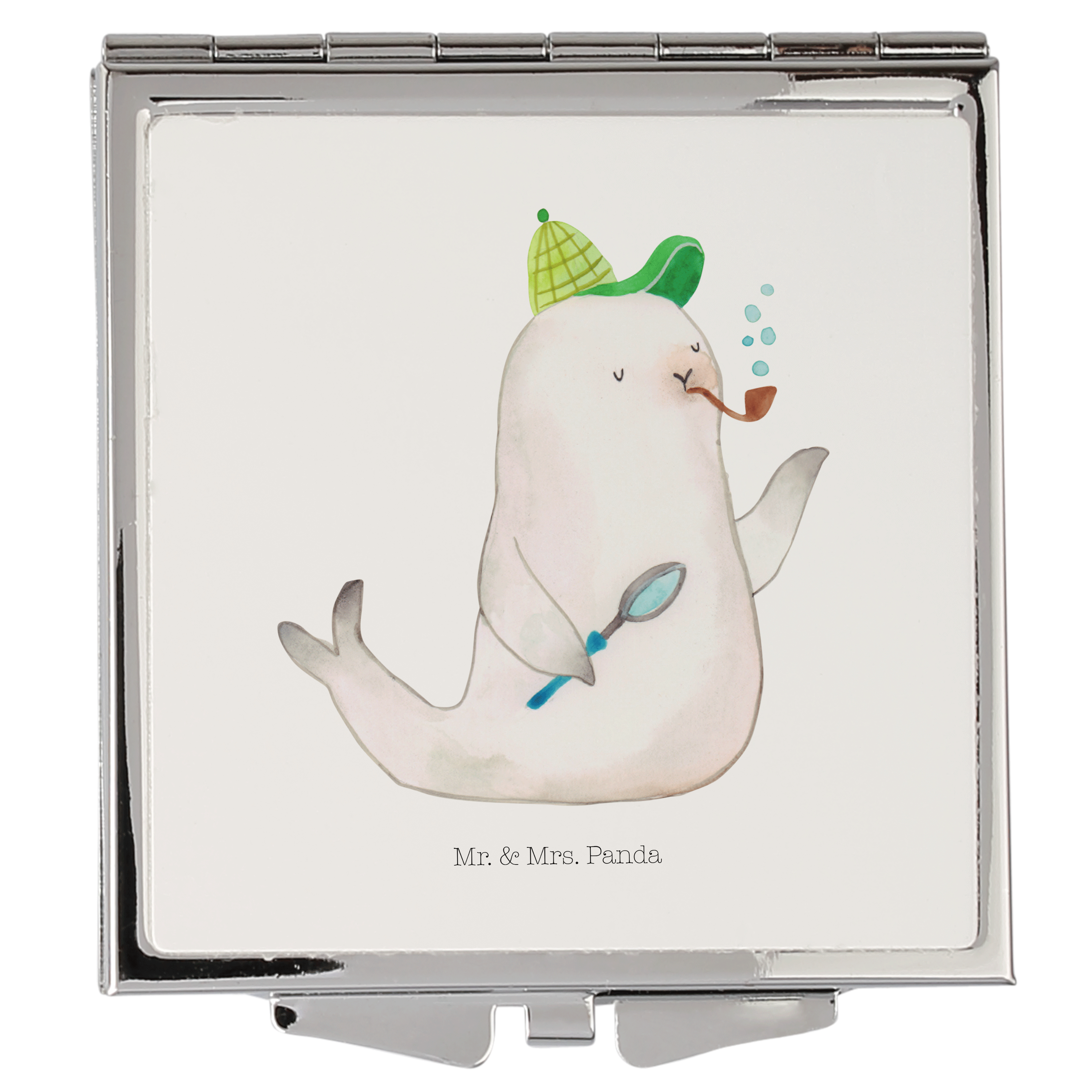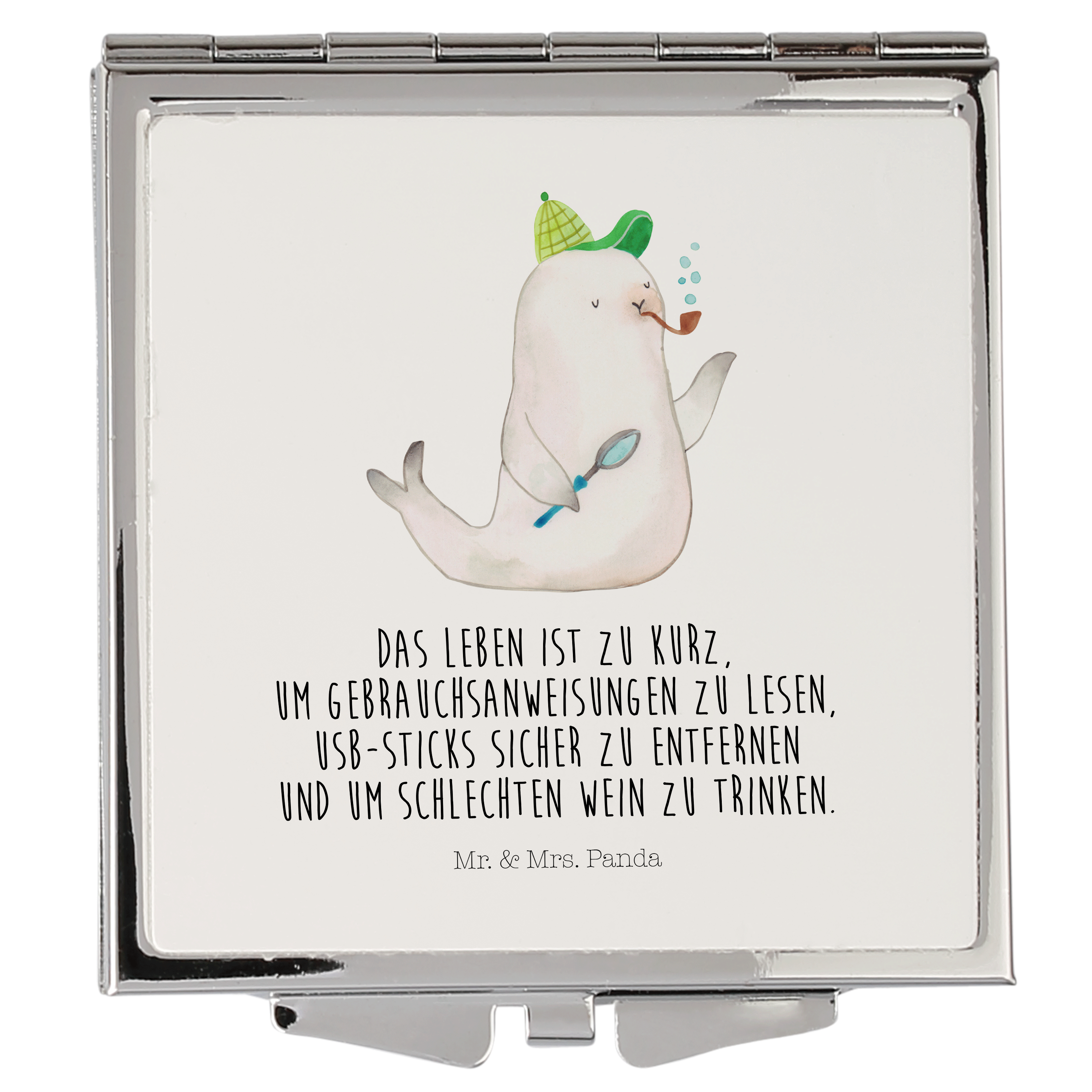 Handtaschenspiegel quadratisch Robbe Sherlock - mit Spruch - Gelb Pastell