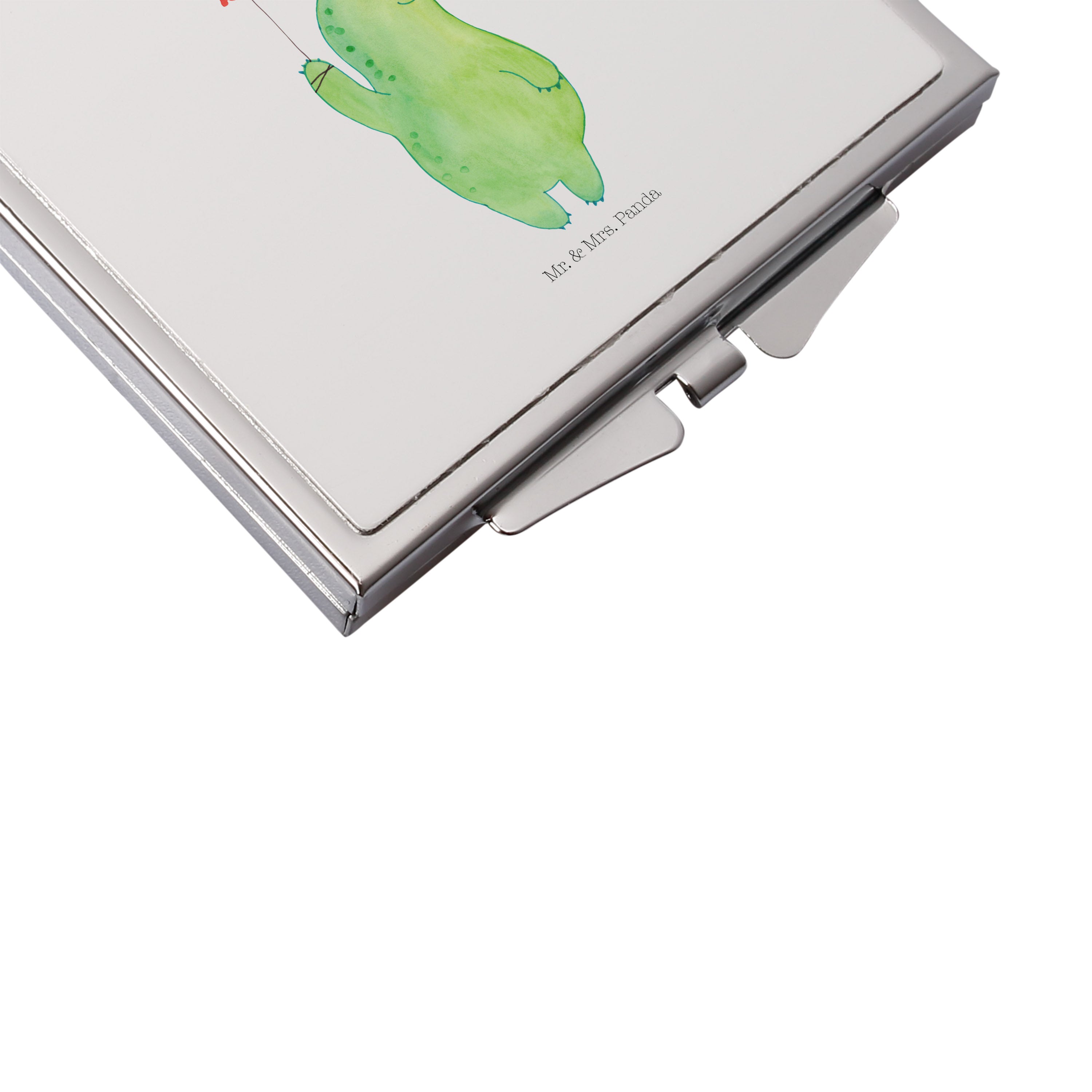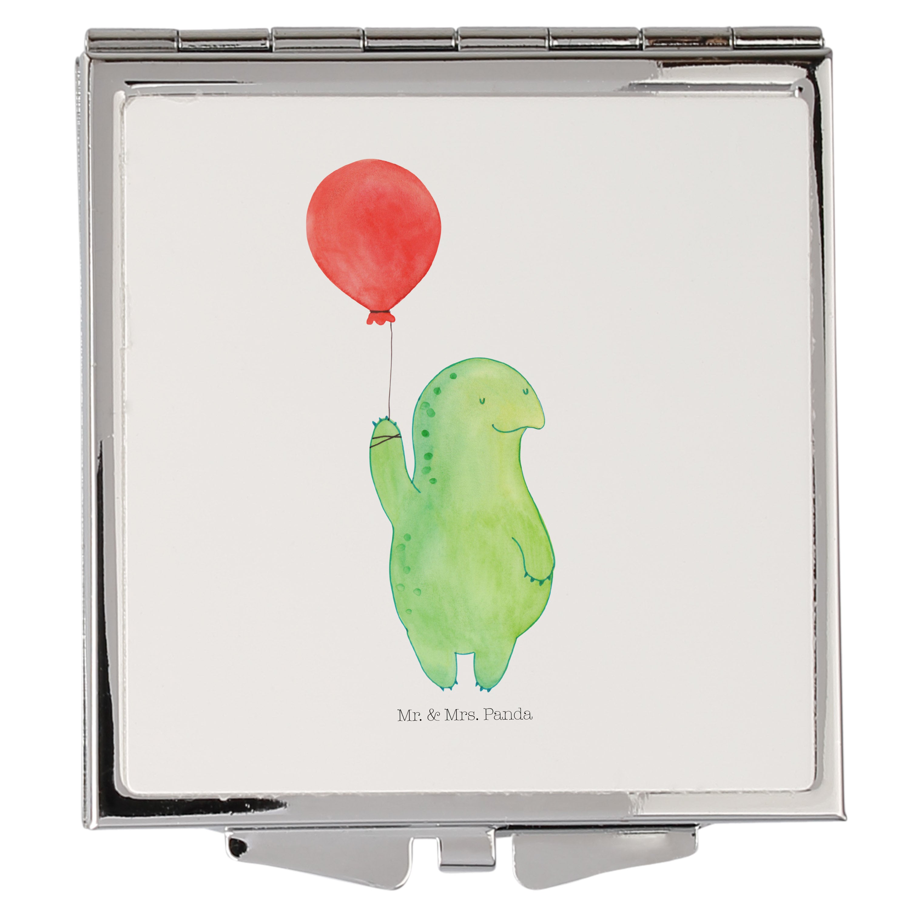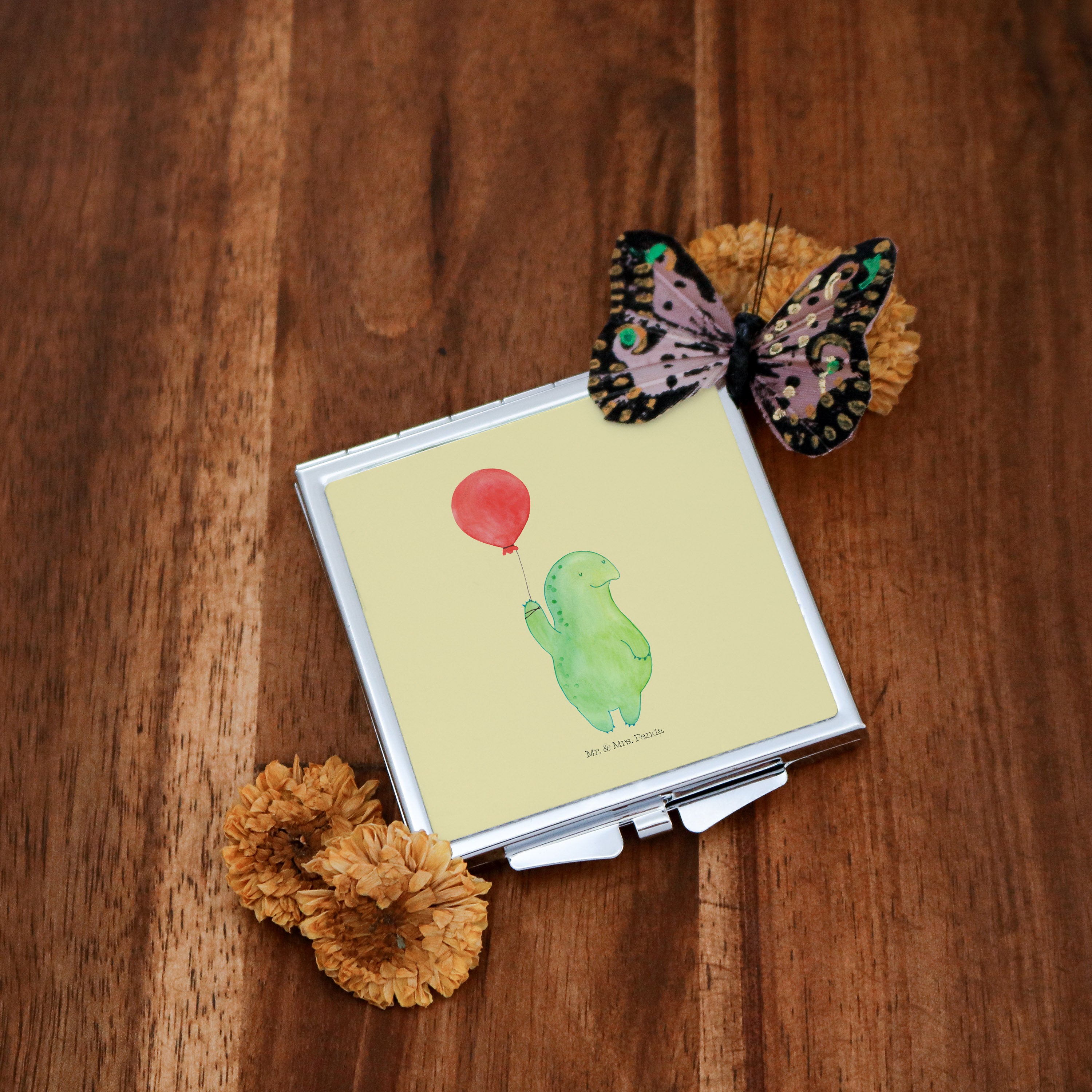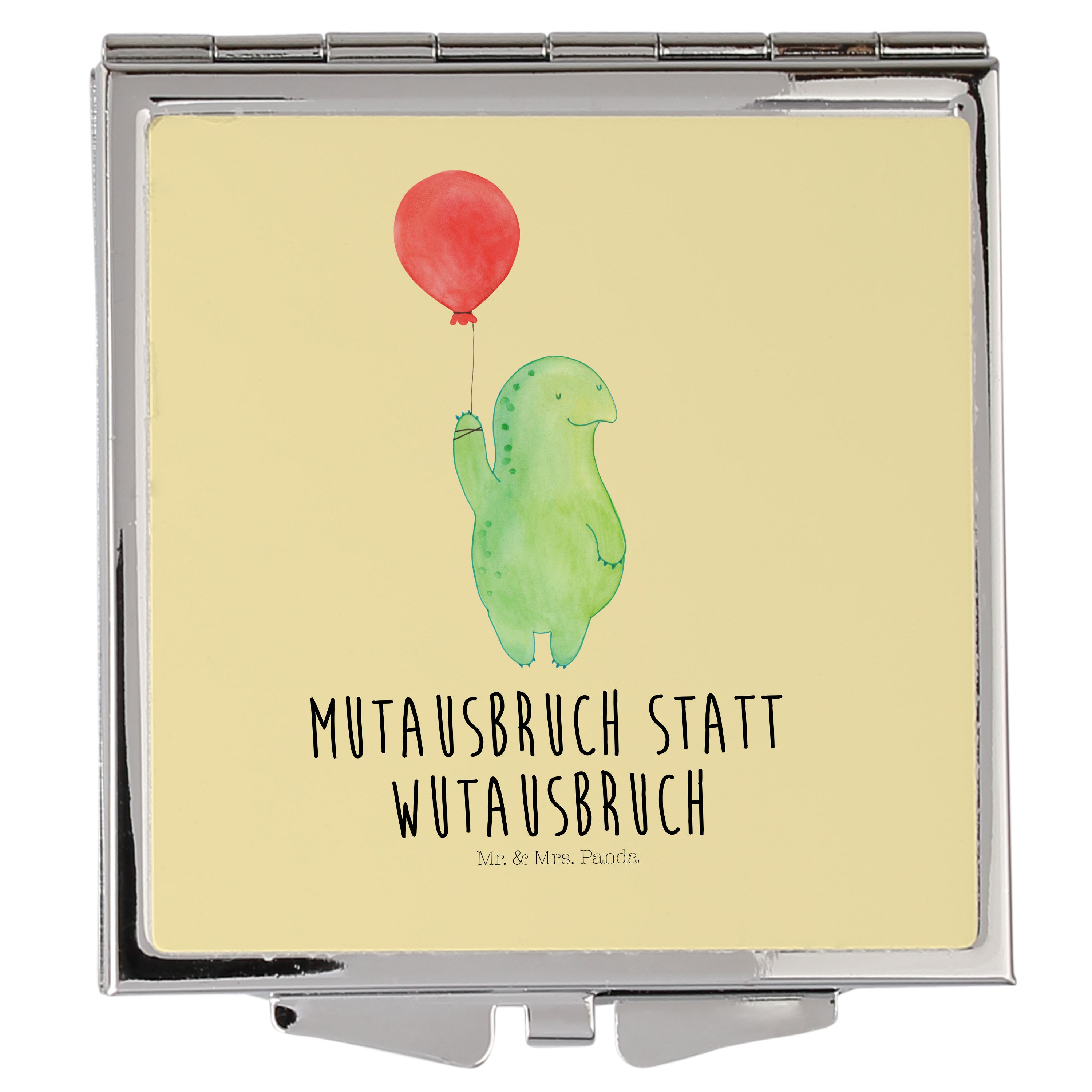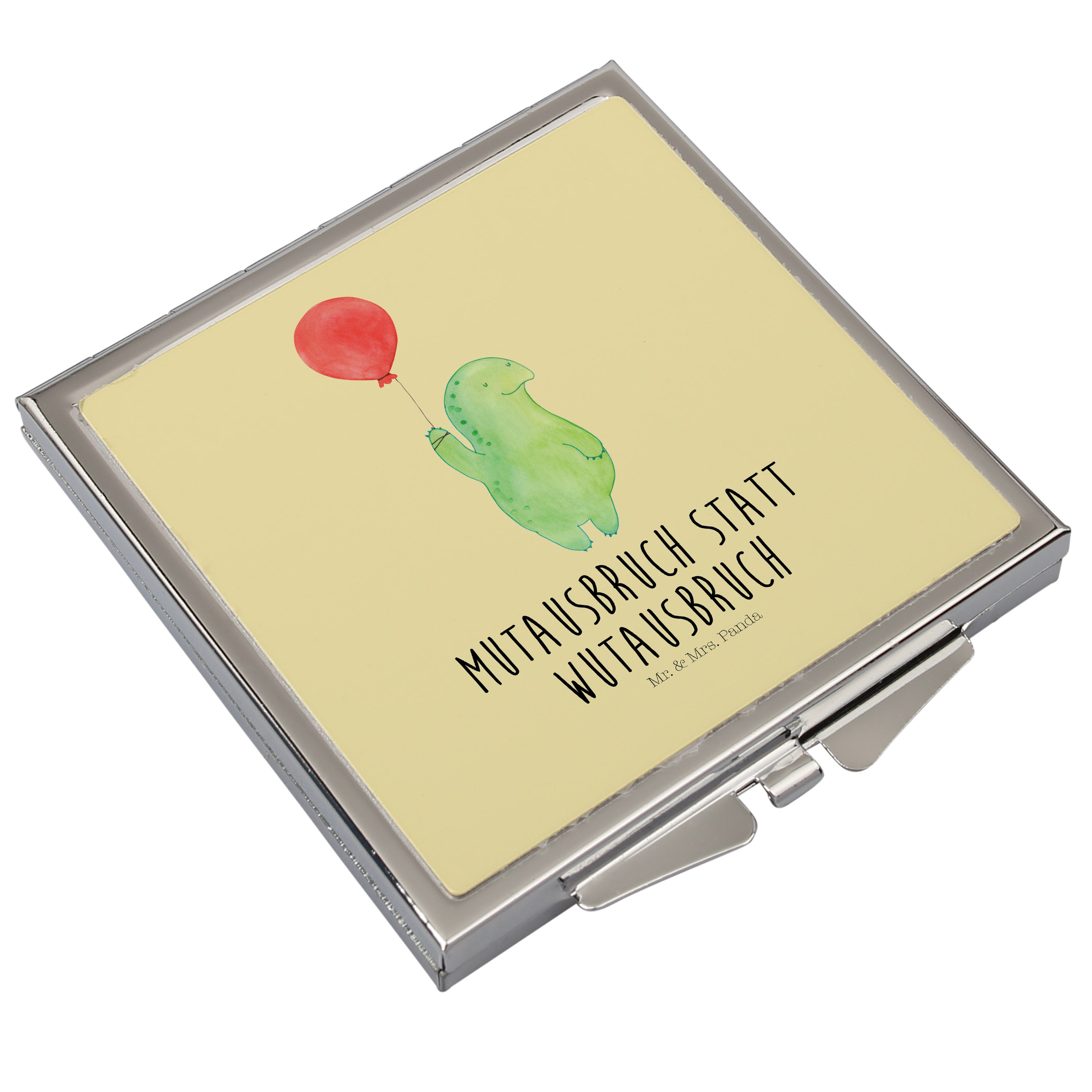 Handtaschenspiegel quadratisch Schildkröte Luftballon - mit Spruch - Gelb Pastell