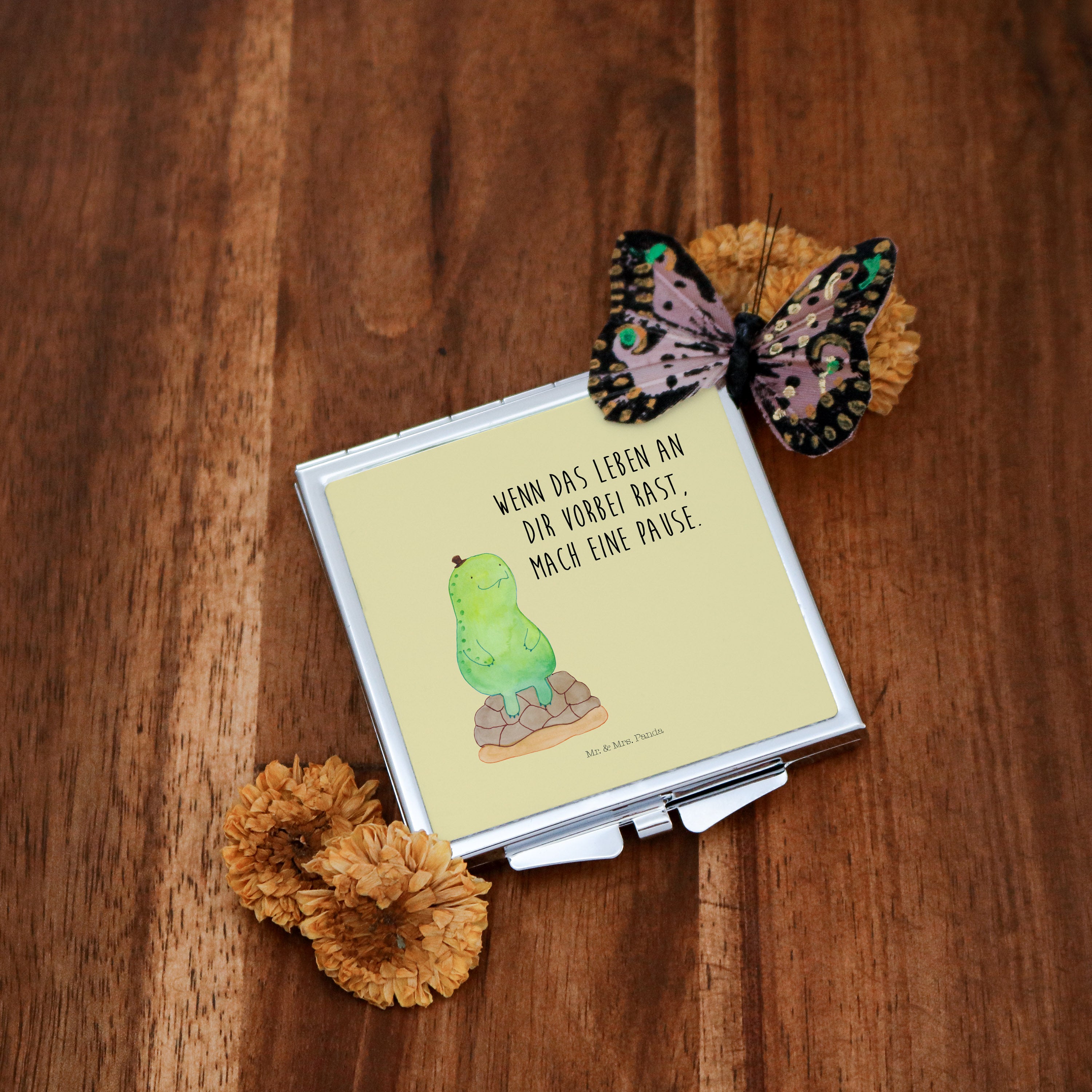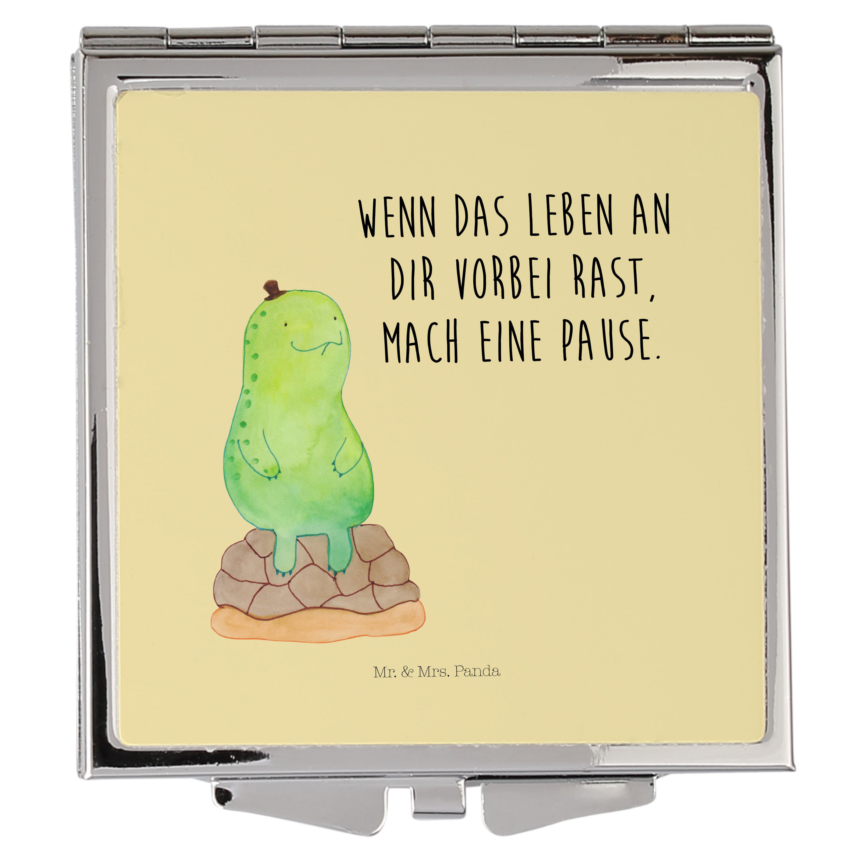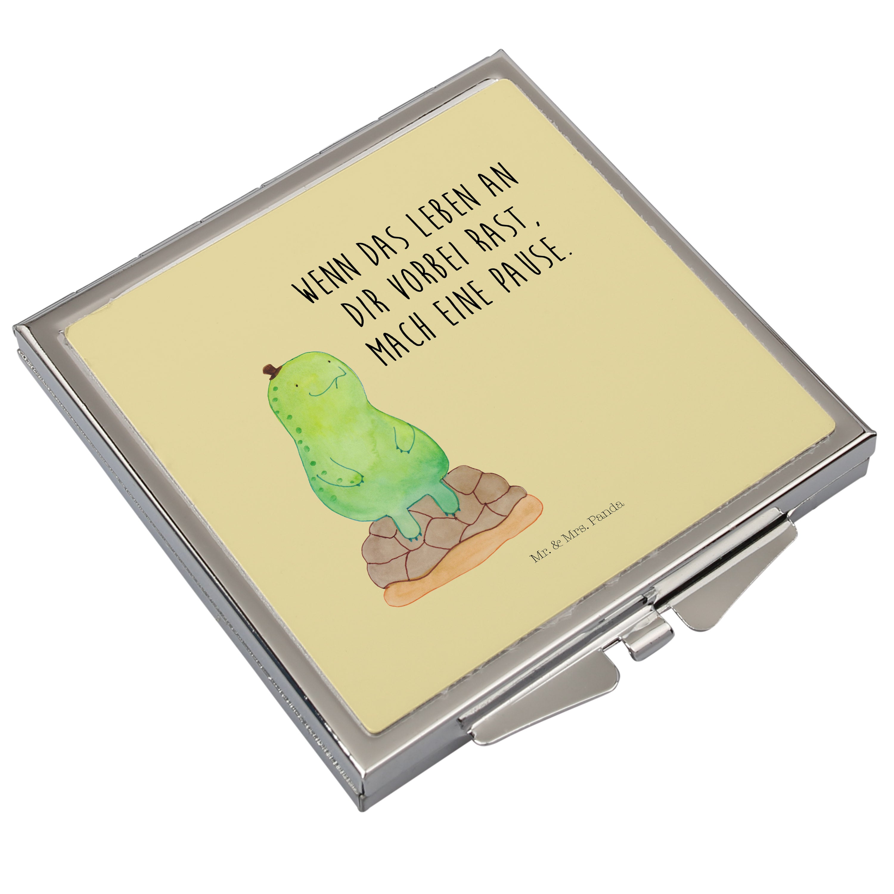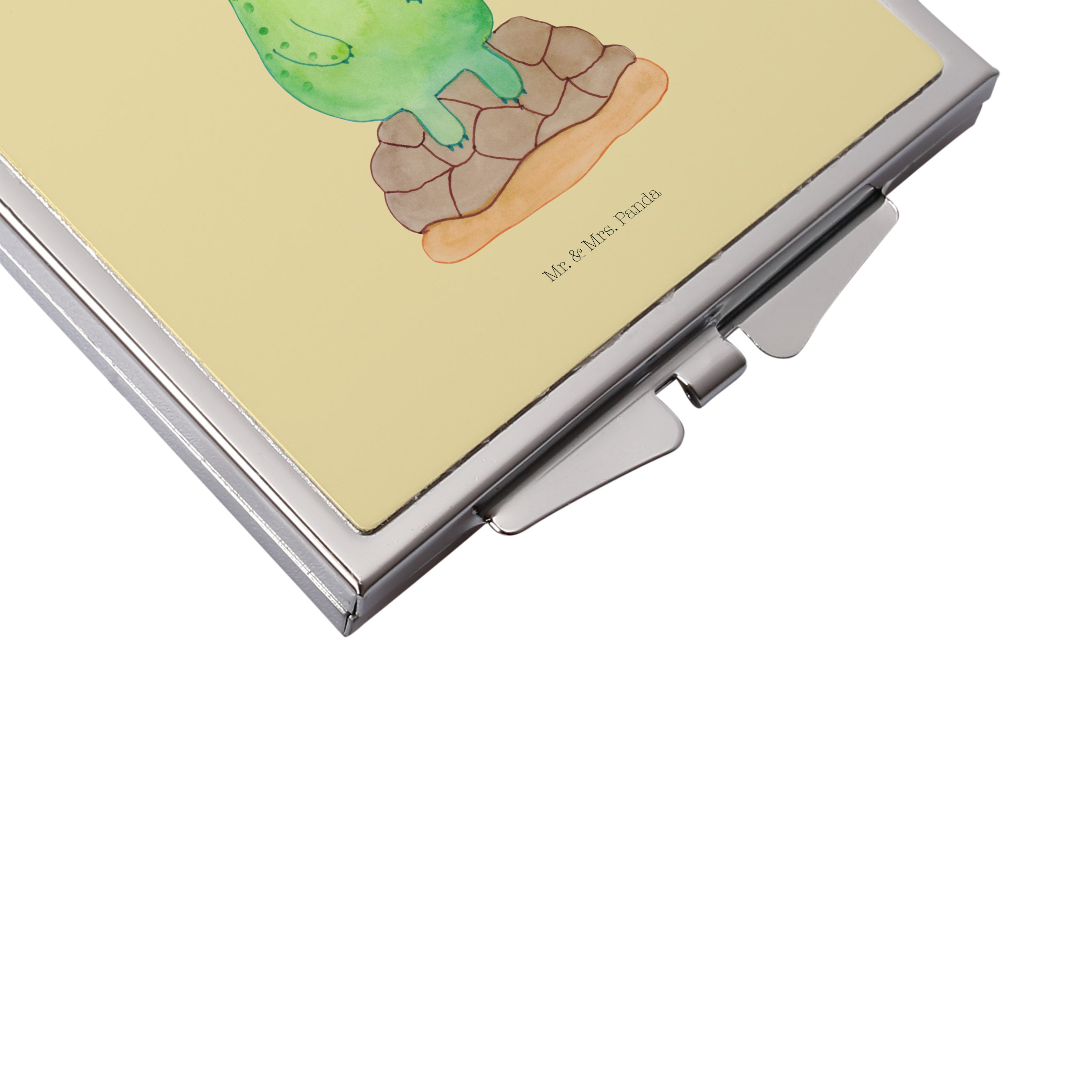 Handtaschenspiegel quadratisch Schildkröte pausiert - mit Spruch - Gelb Pastell