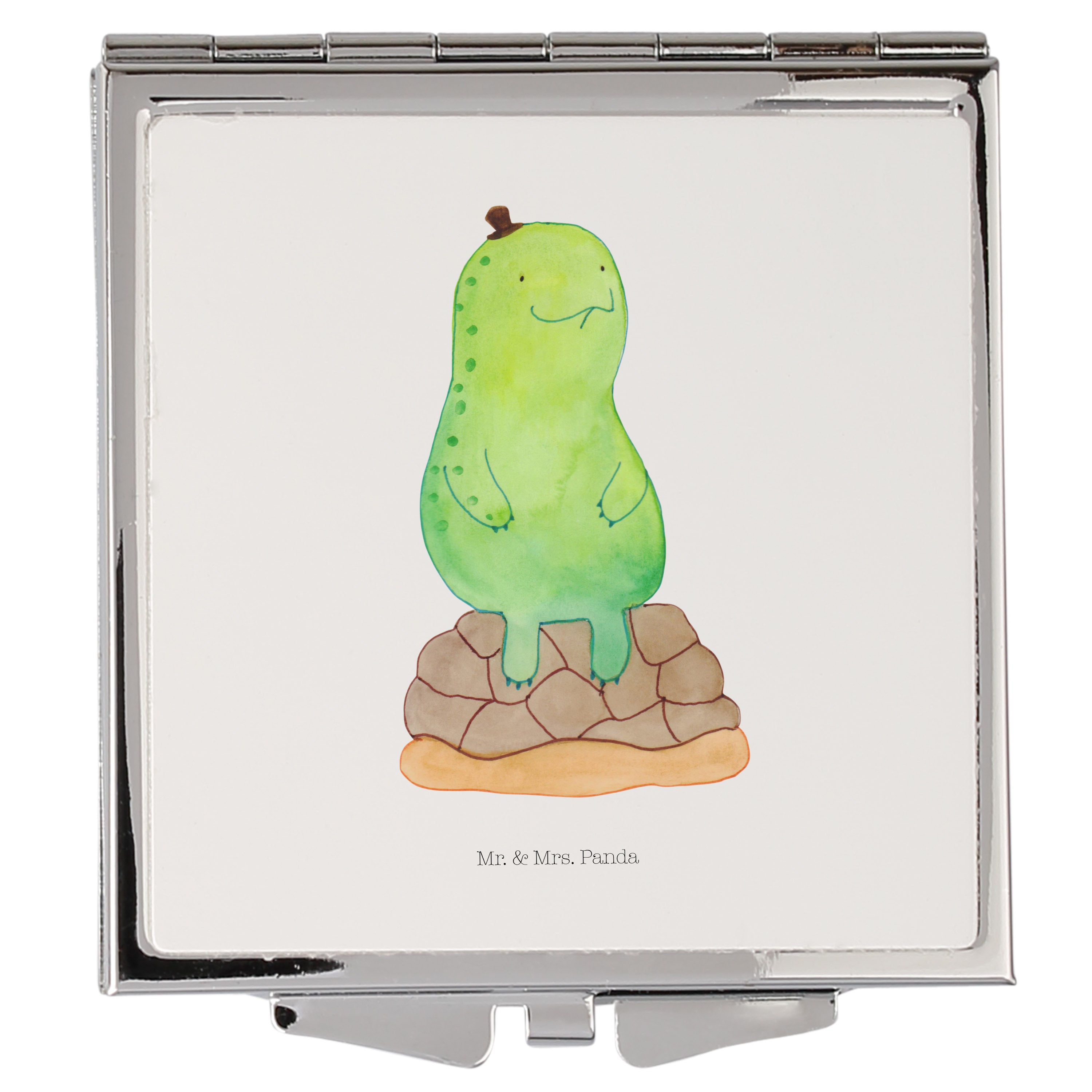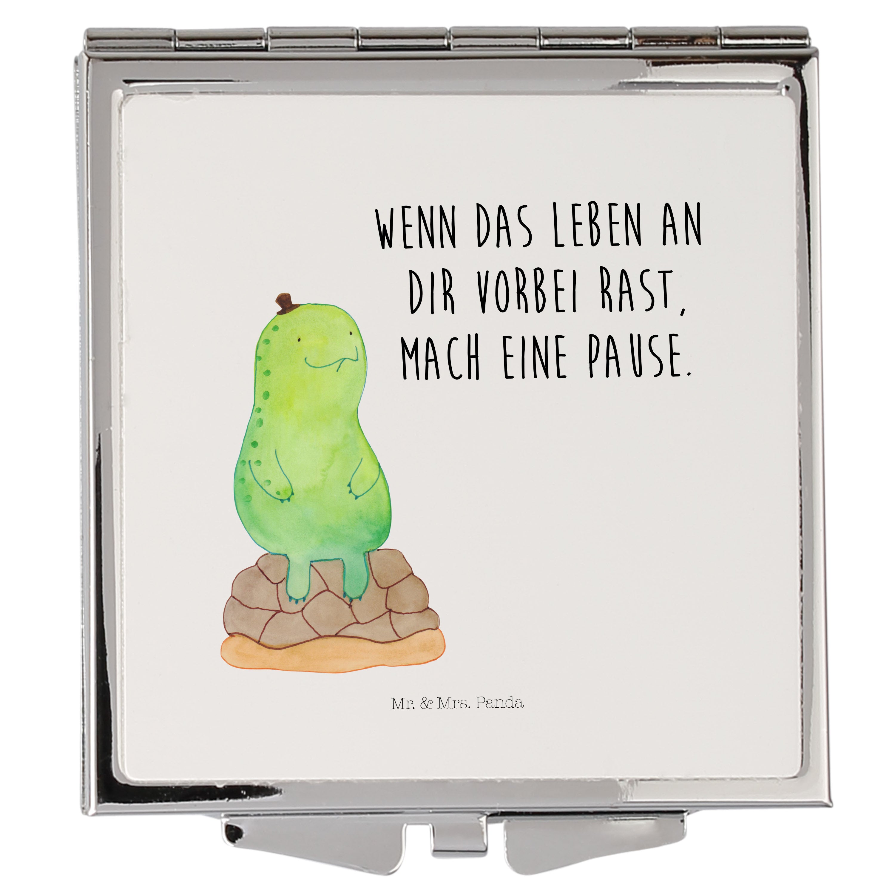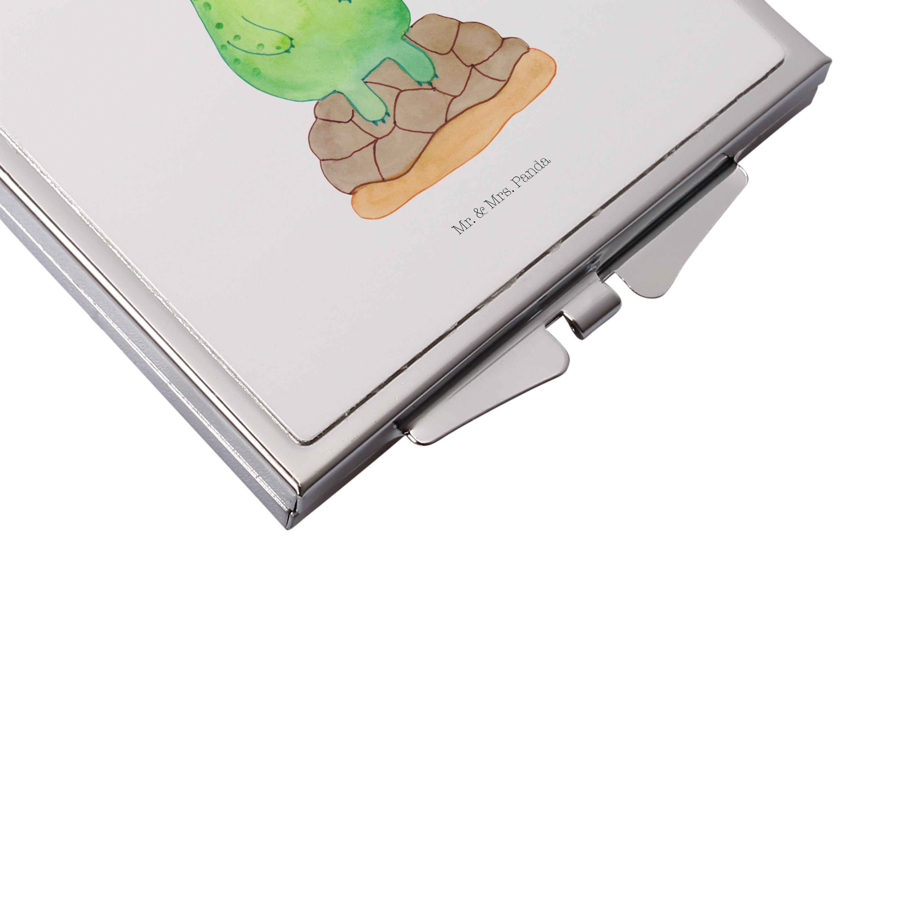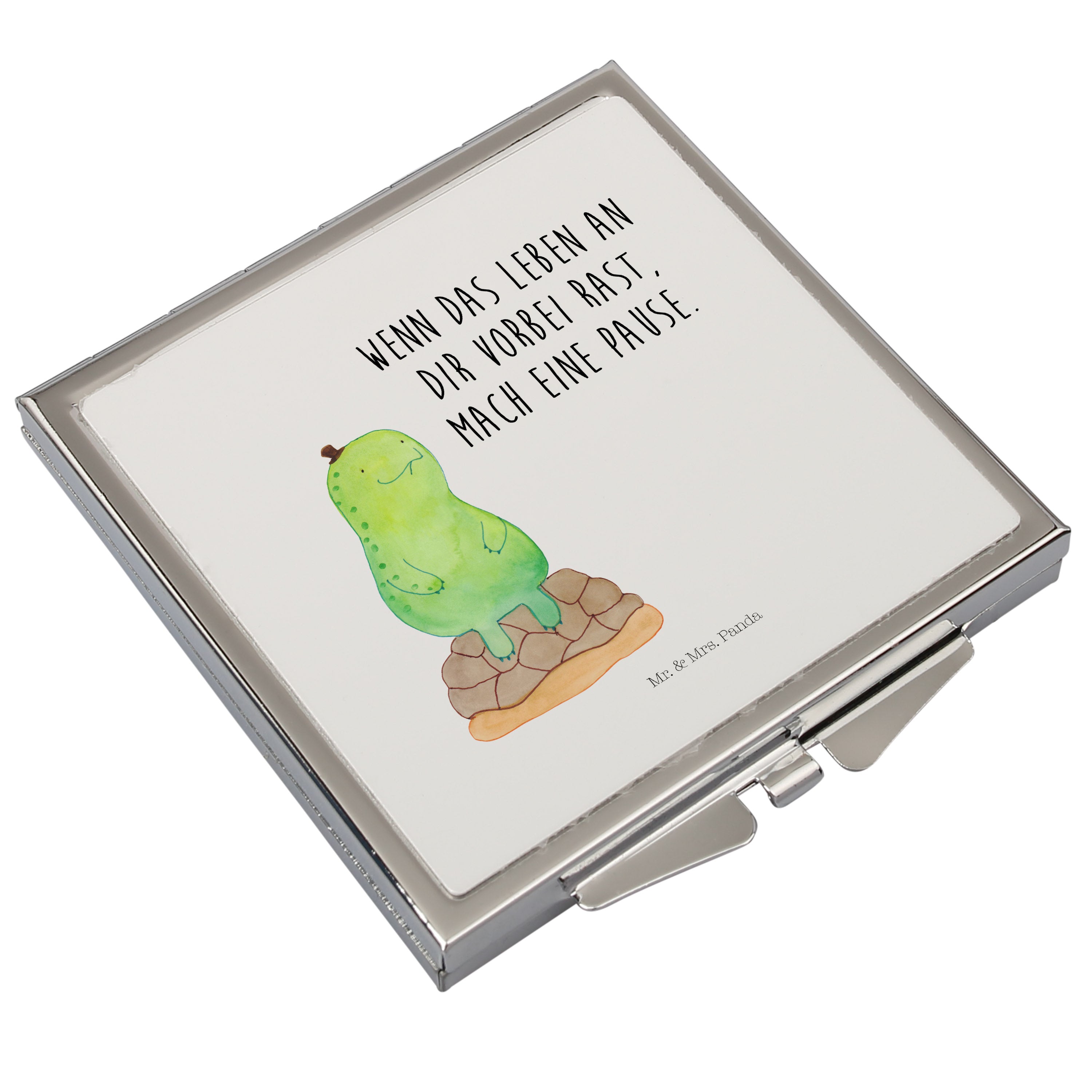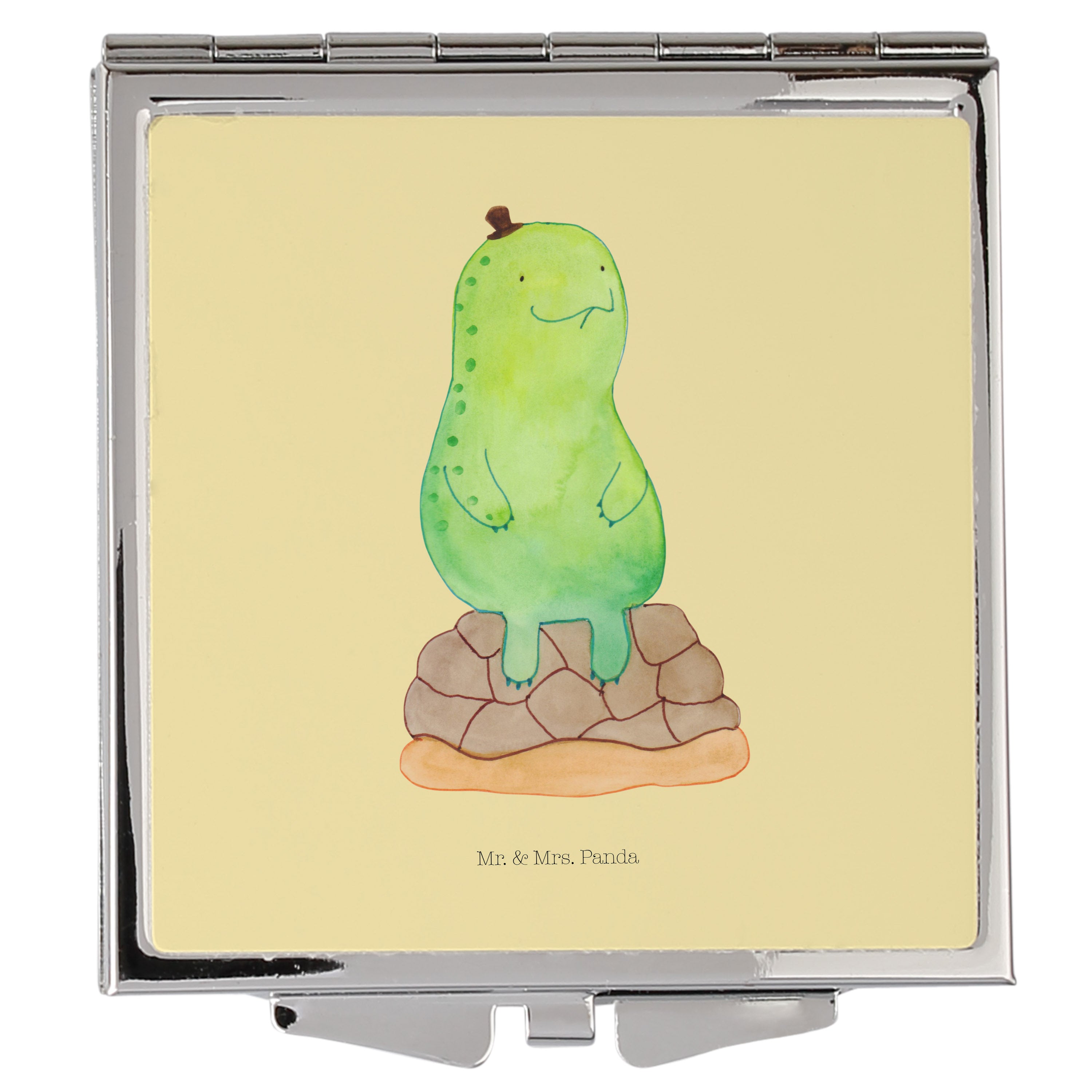 Handtaschenspiegel quadratisch Schildkröte pausiert - mit Spruch - Gelb Pastell