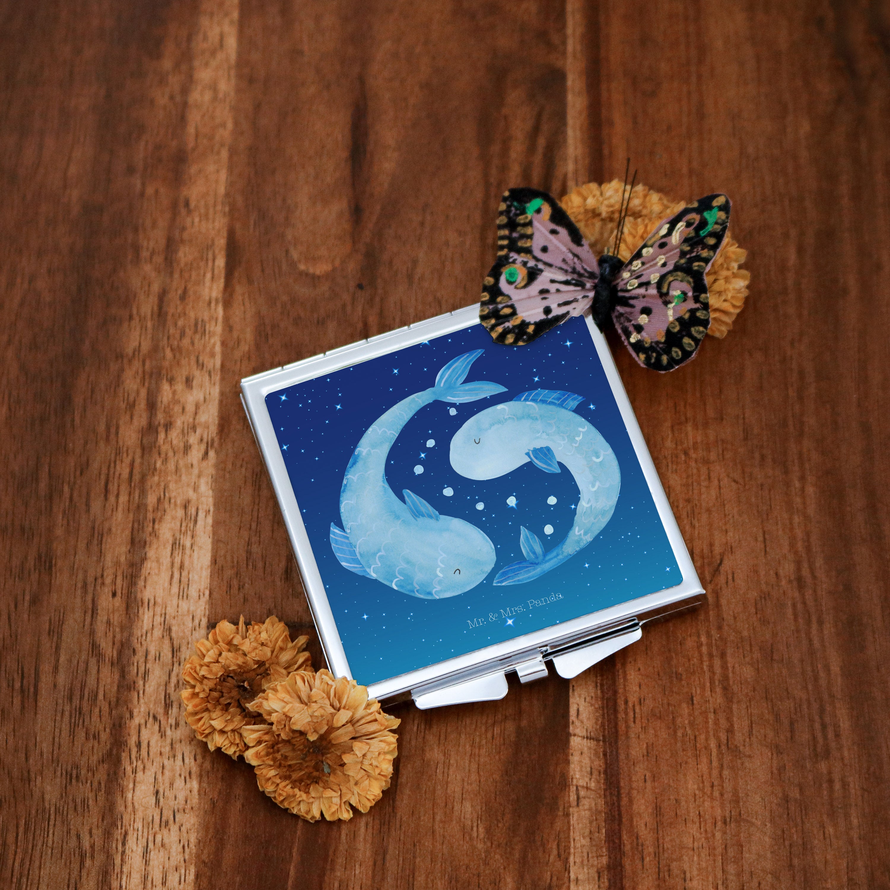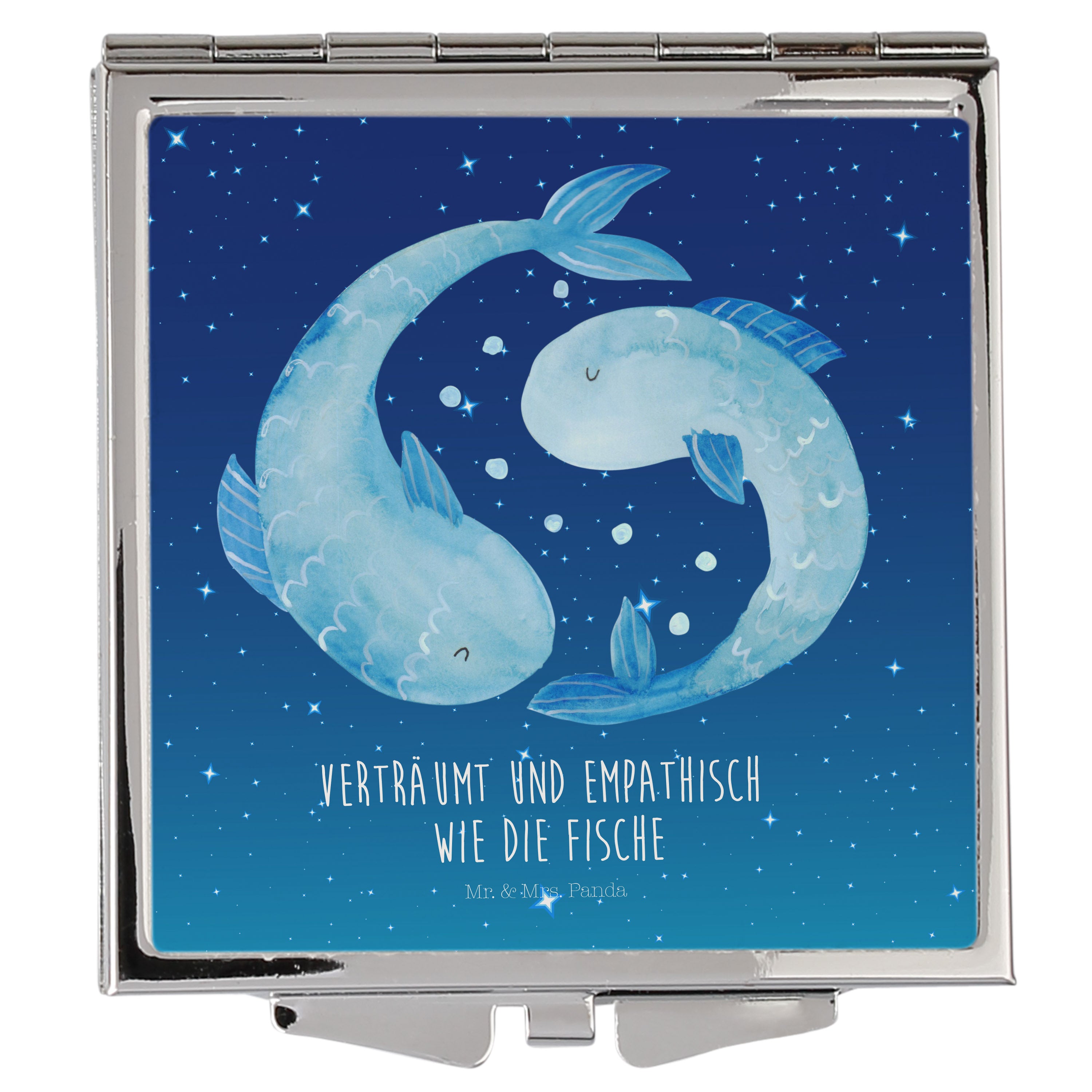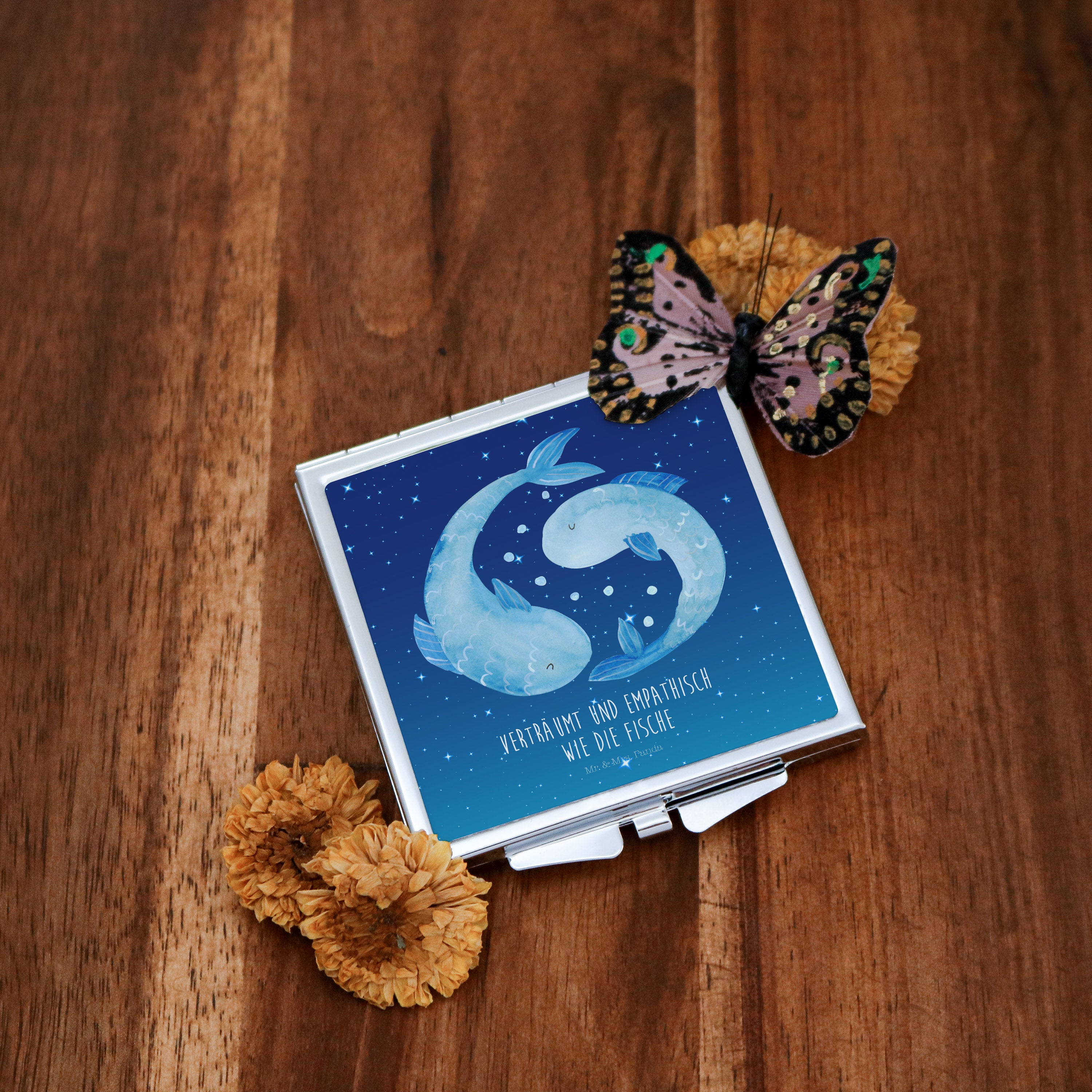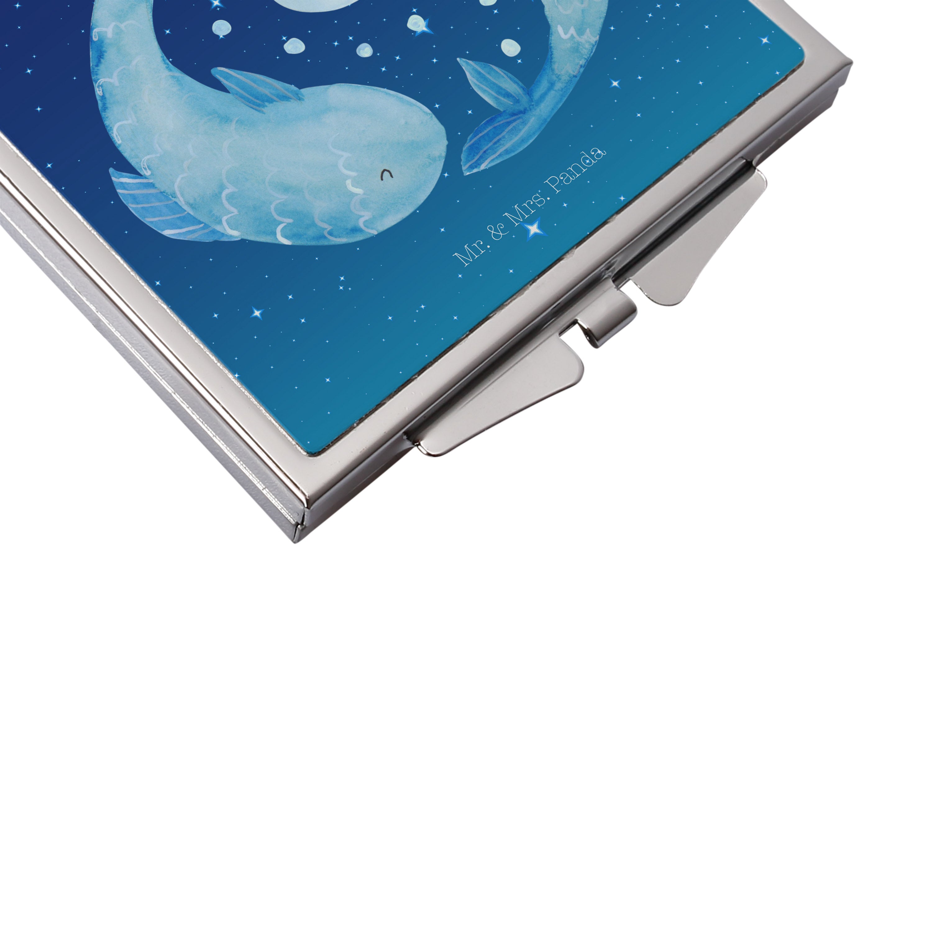 Handtaschenspiegel quadratisch Sternzeichen Fische - mit Spruch - Sternenhimmel Blau