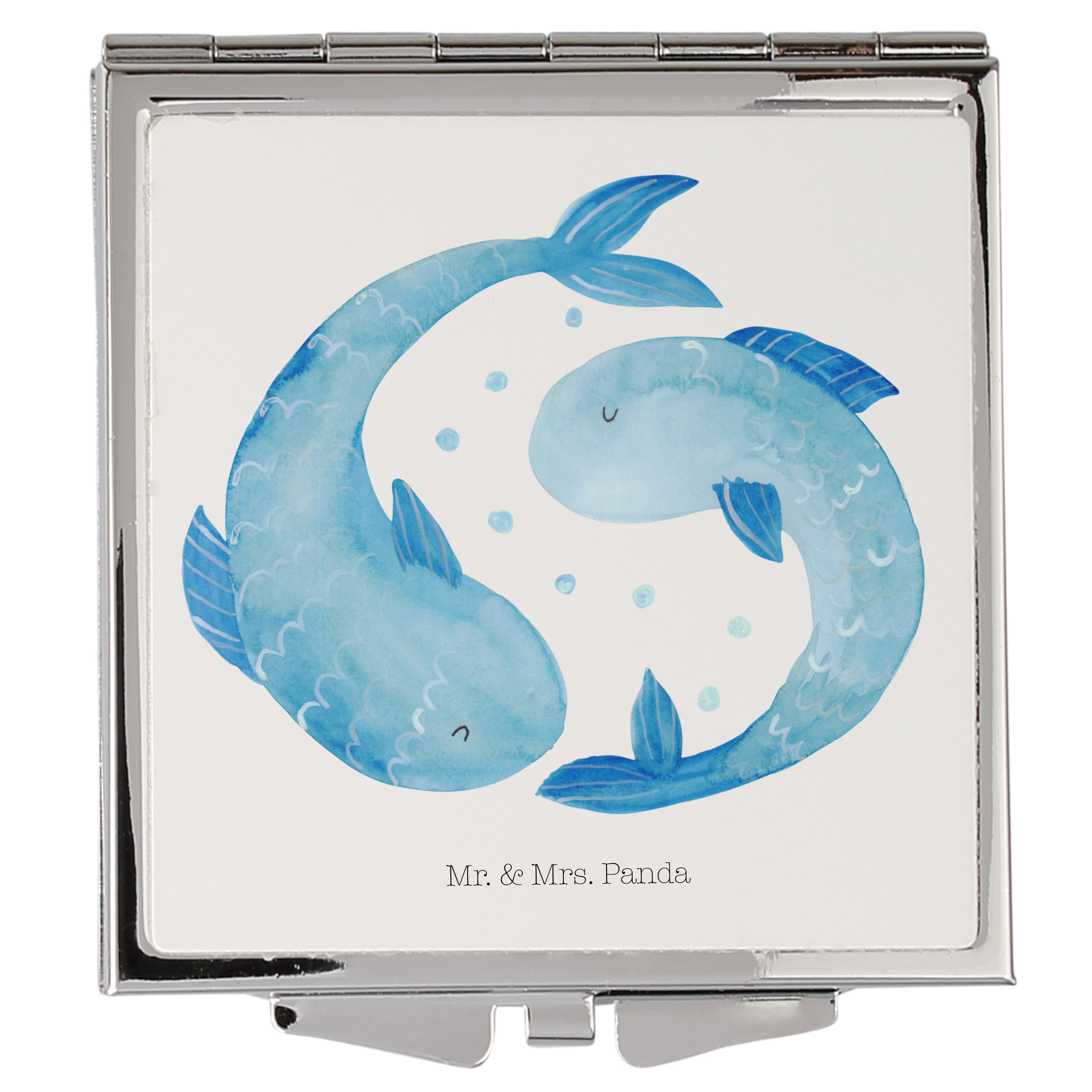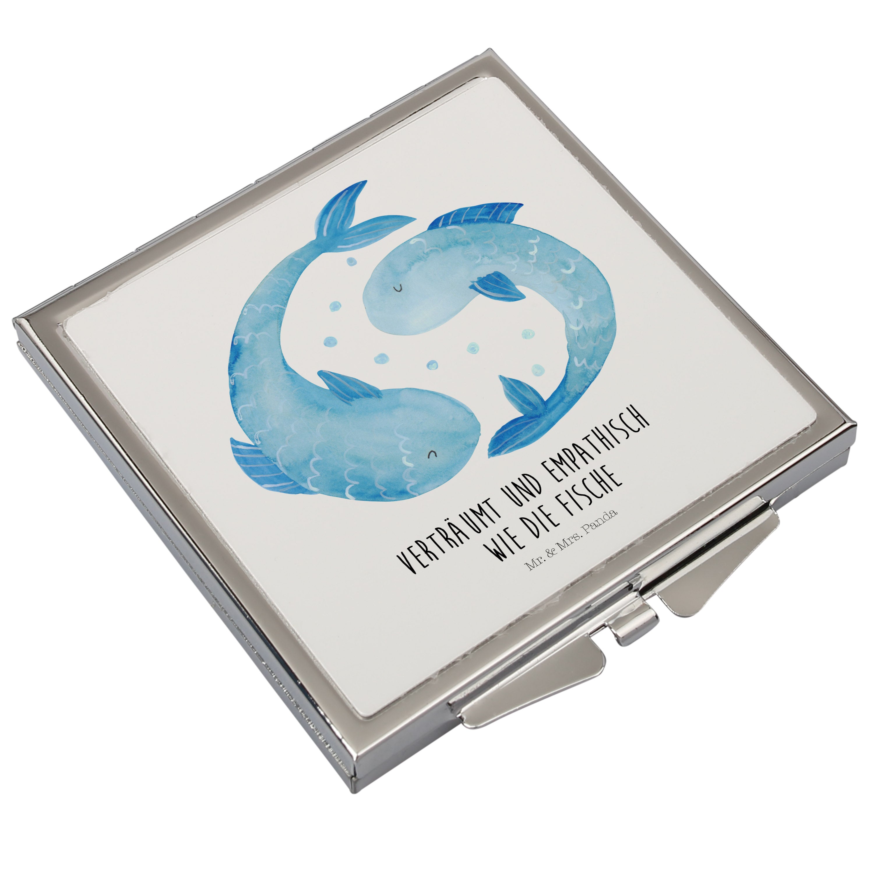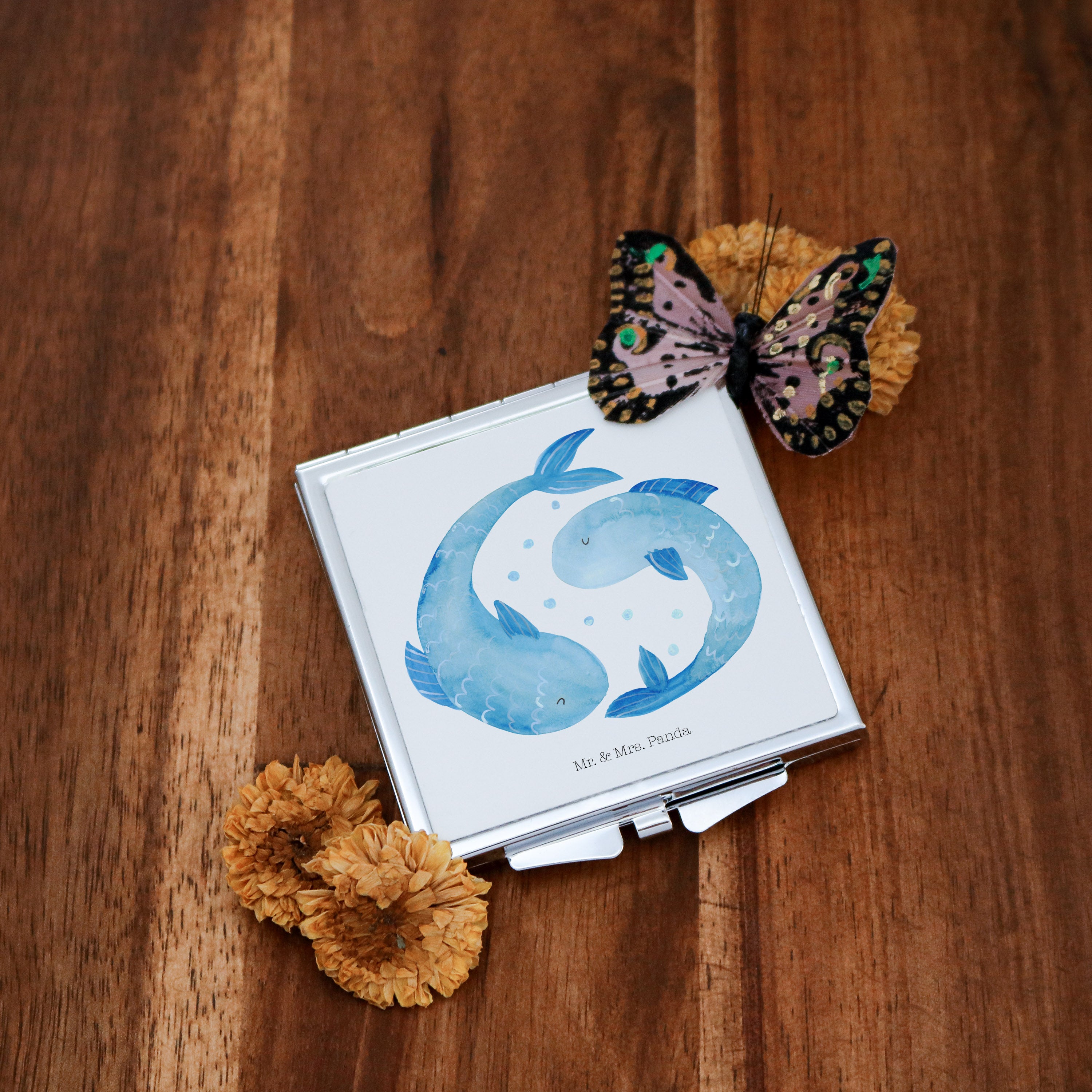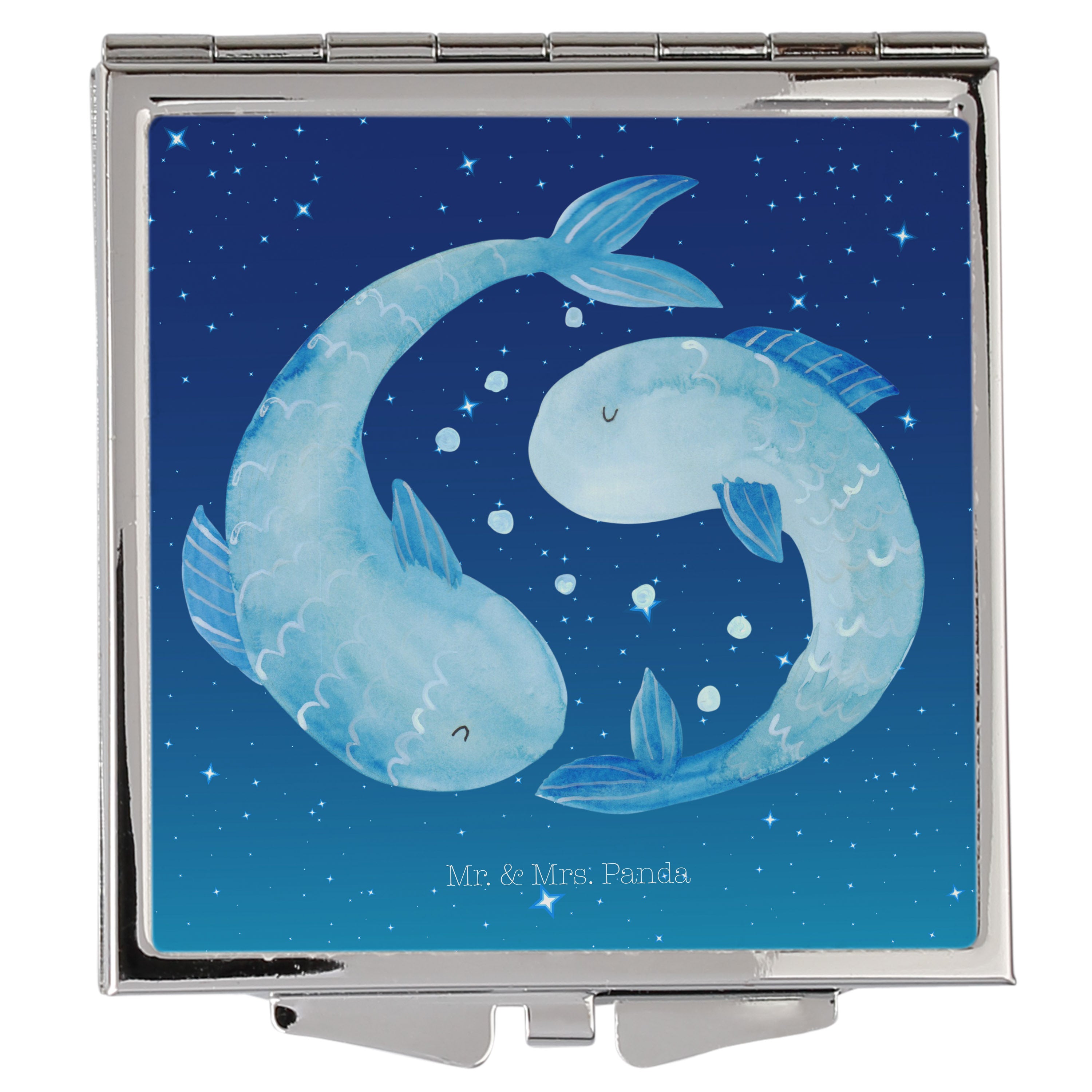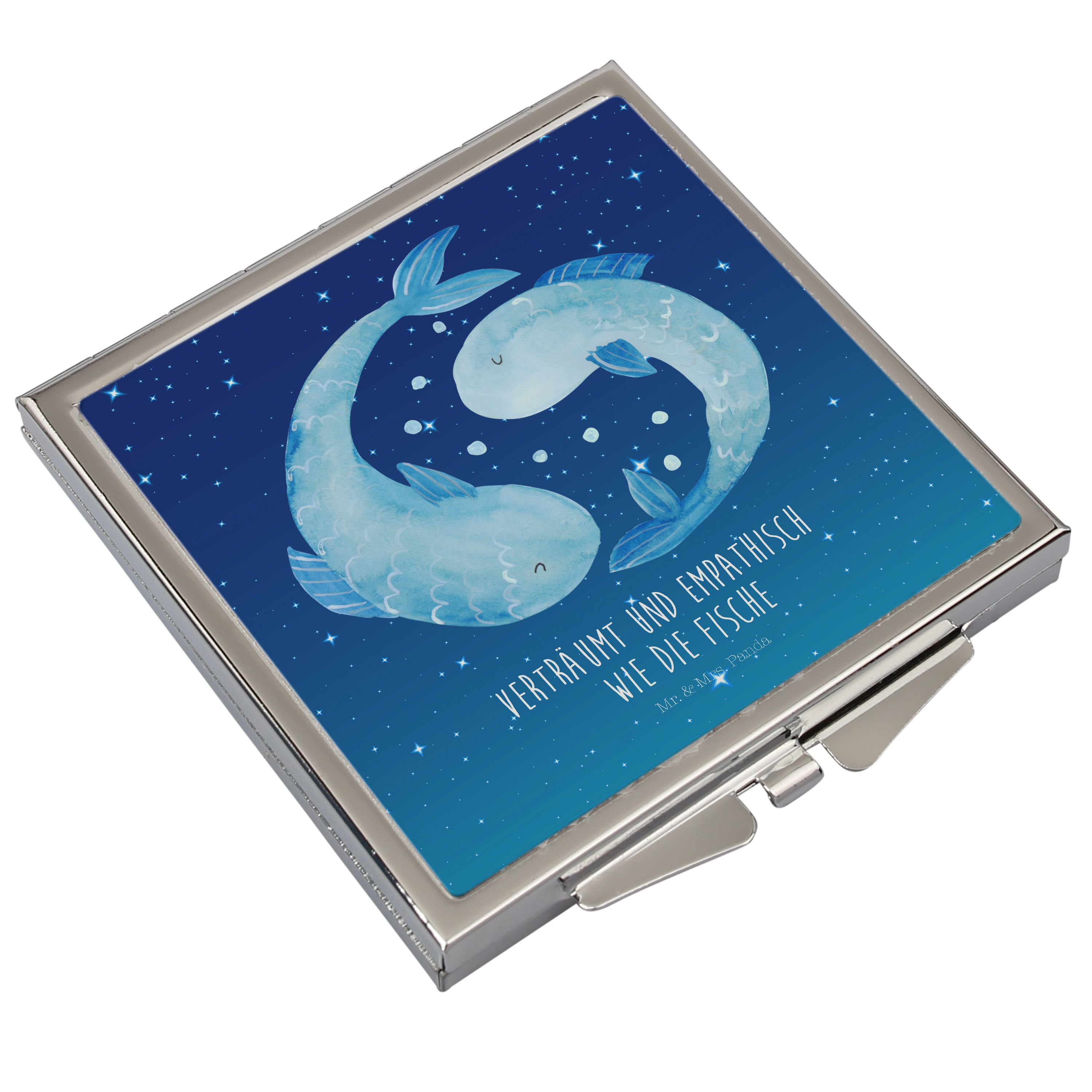 Handtaschenspiegel quadratisch Sternzeichen Fische - mit Spruch - Sternenhimmel Blau