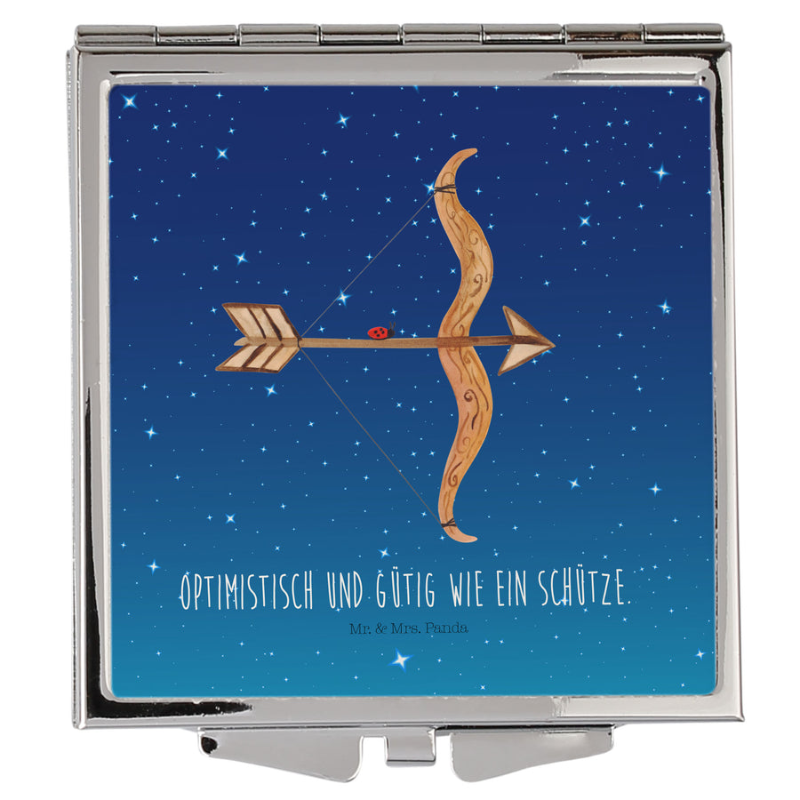 Handtaschenspiegel quadratisch Sternzeichen Schütze - mit Spruch - Sternenhimmel Blau