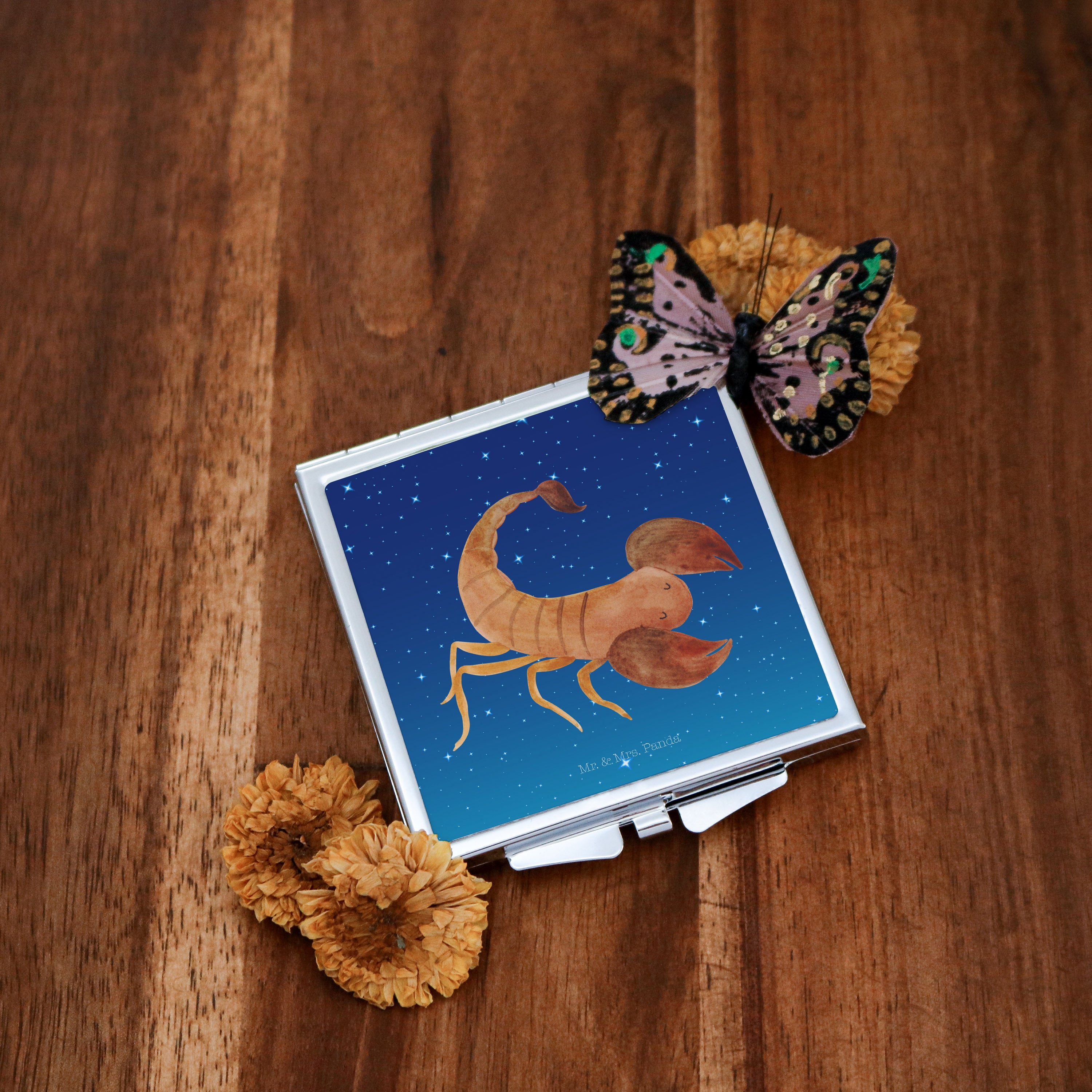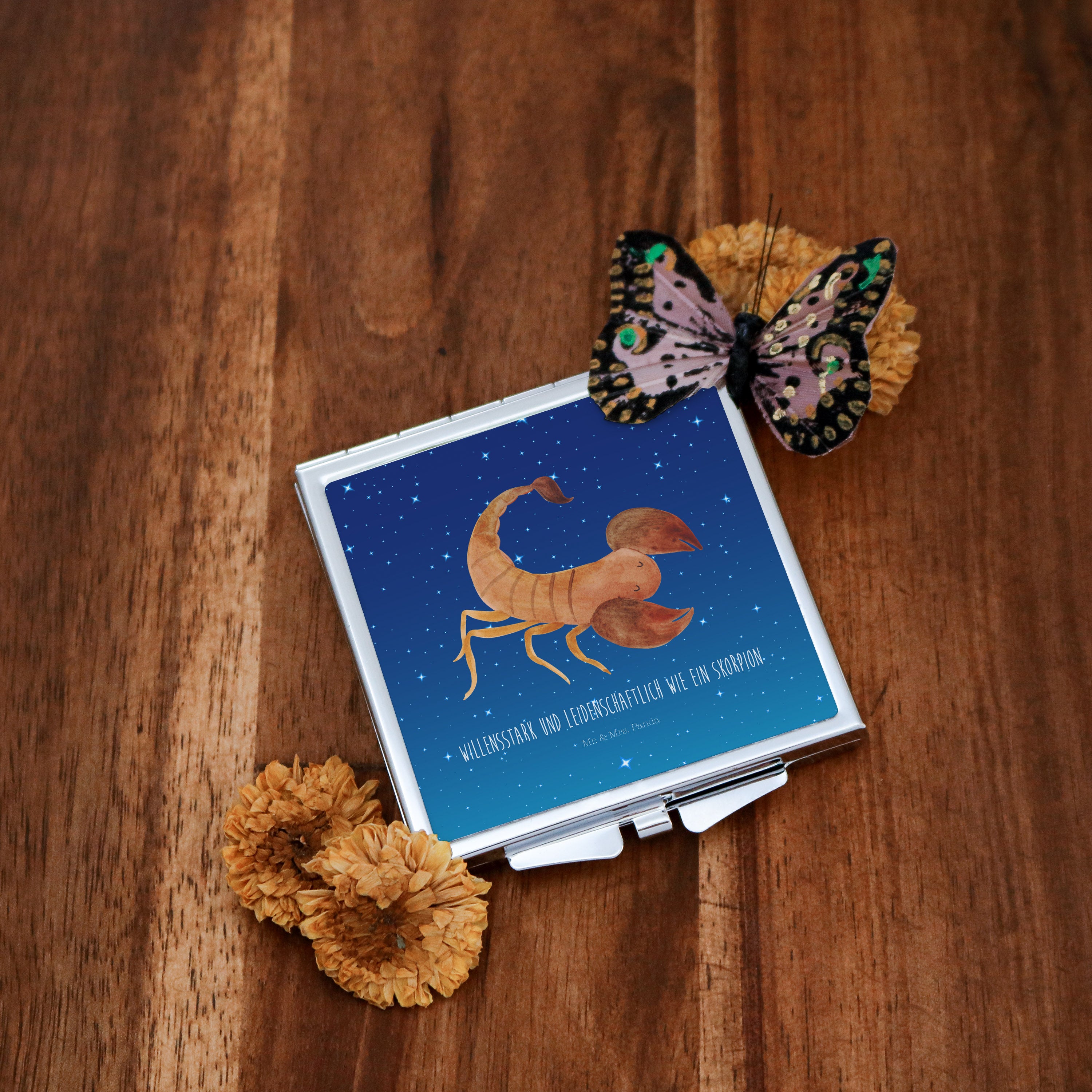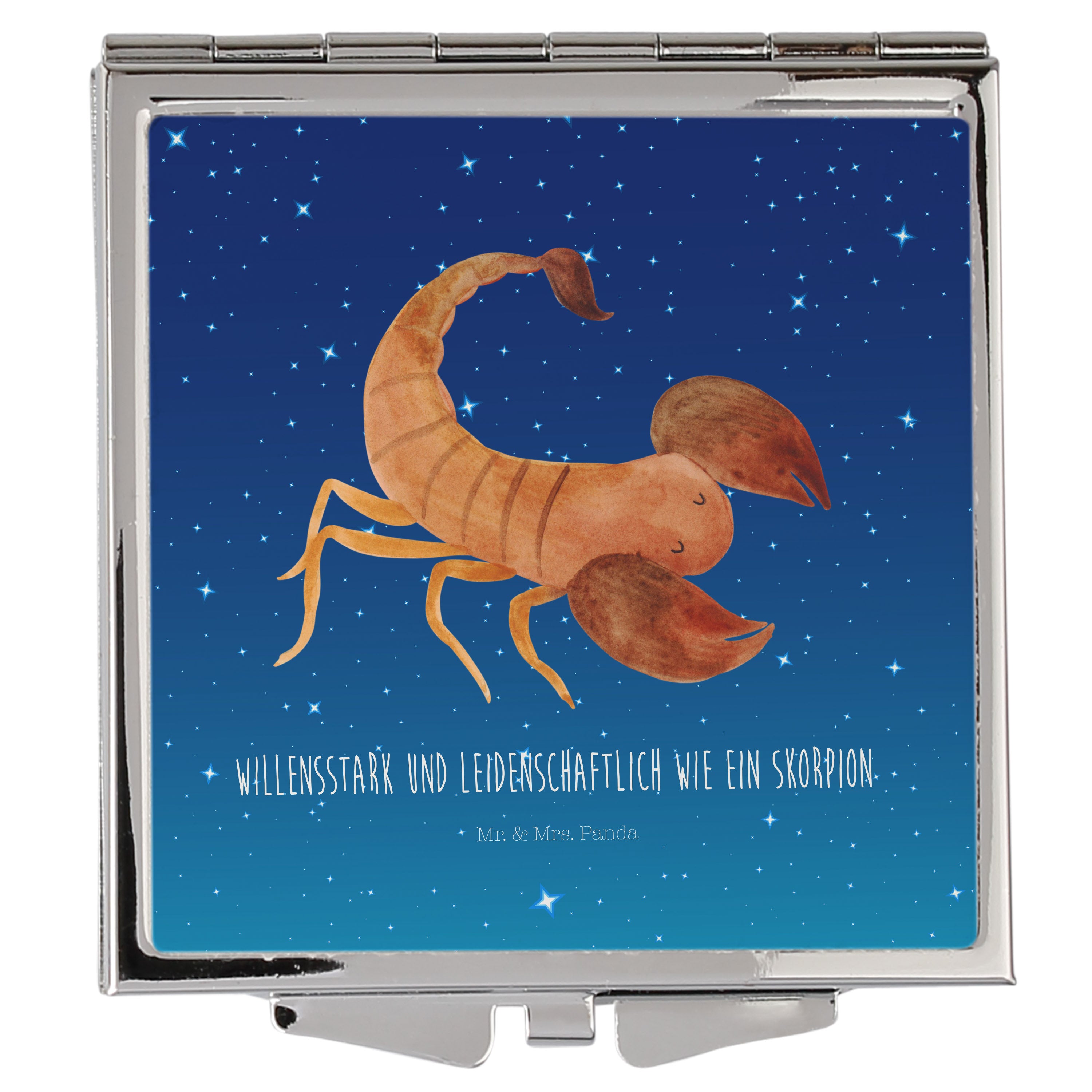 Handtaschenspiegel quadratisch Sternzeichen Skorpion - mit Spruch - Sternenhimmel Blau