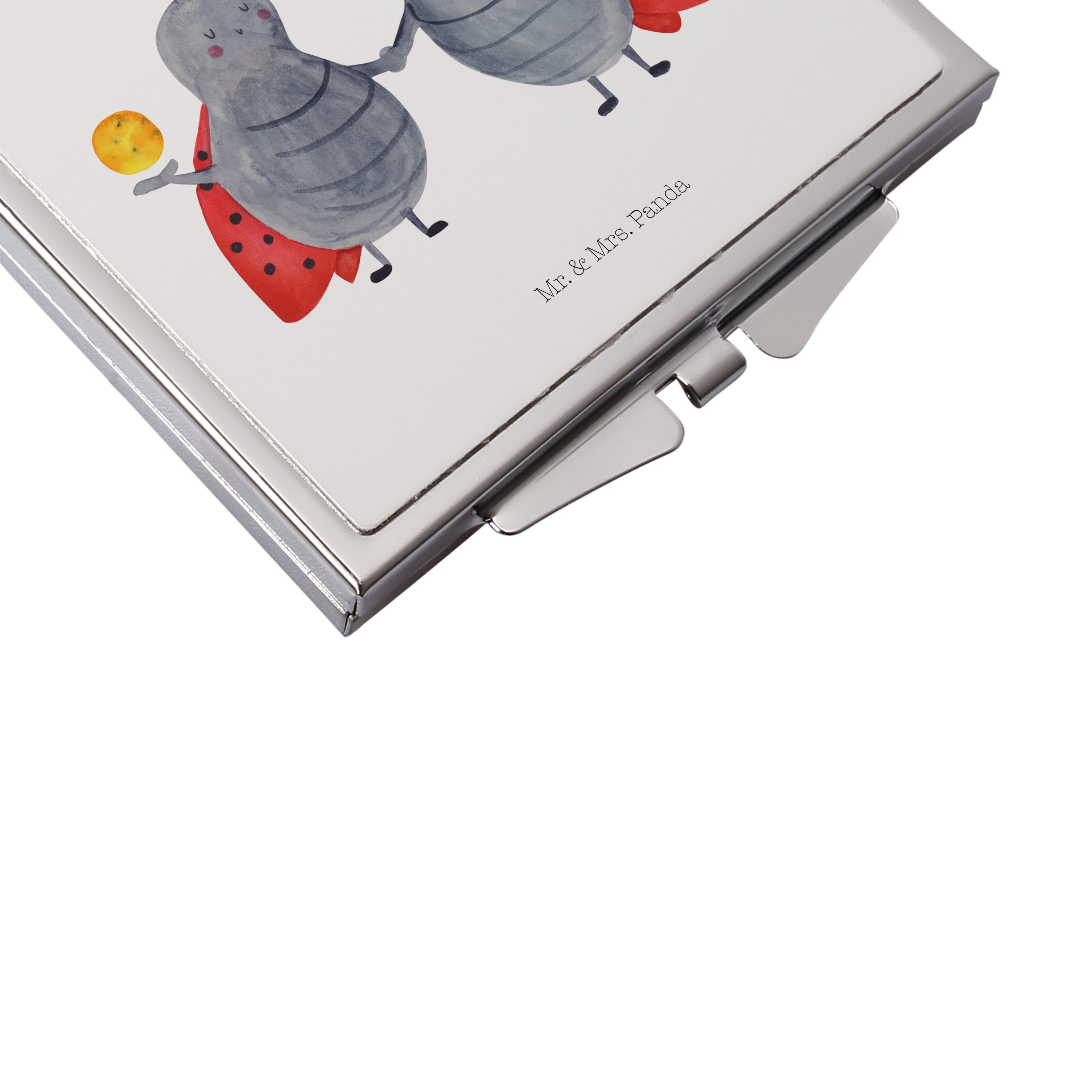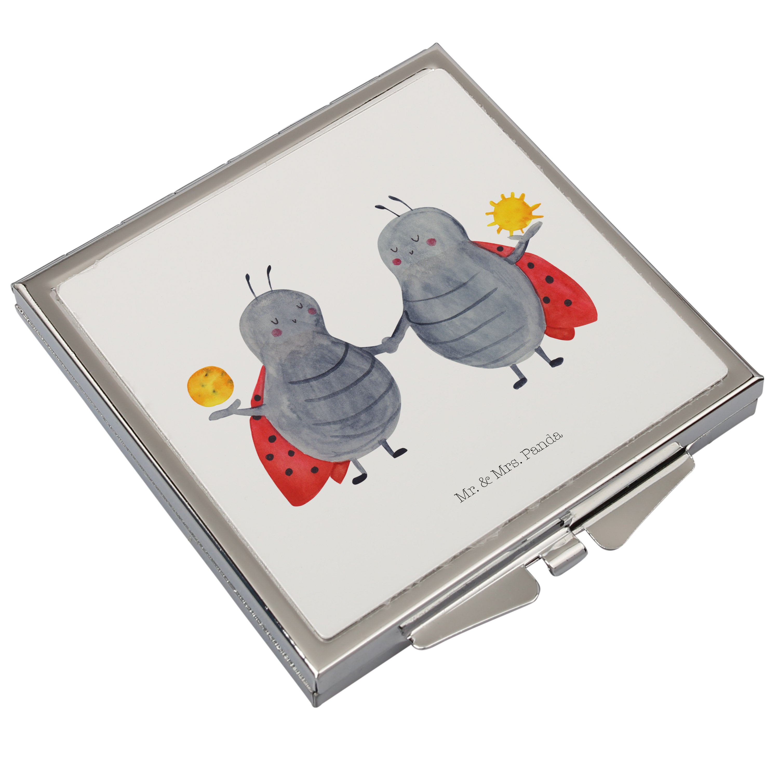 Dieser Spiegel von Mr. und Mrs. Panda im Handtaschenformat passt mit seinen Maßen von 60 x 60 mm in jede Frauentasche.
