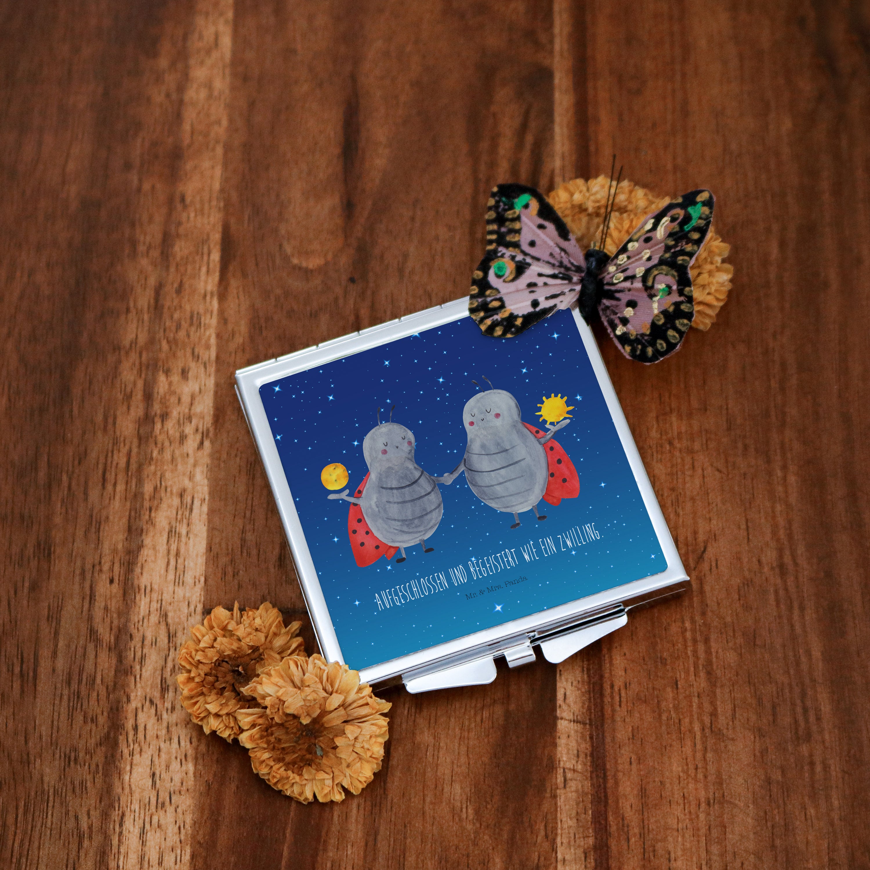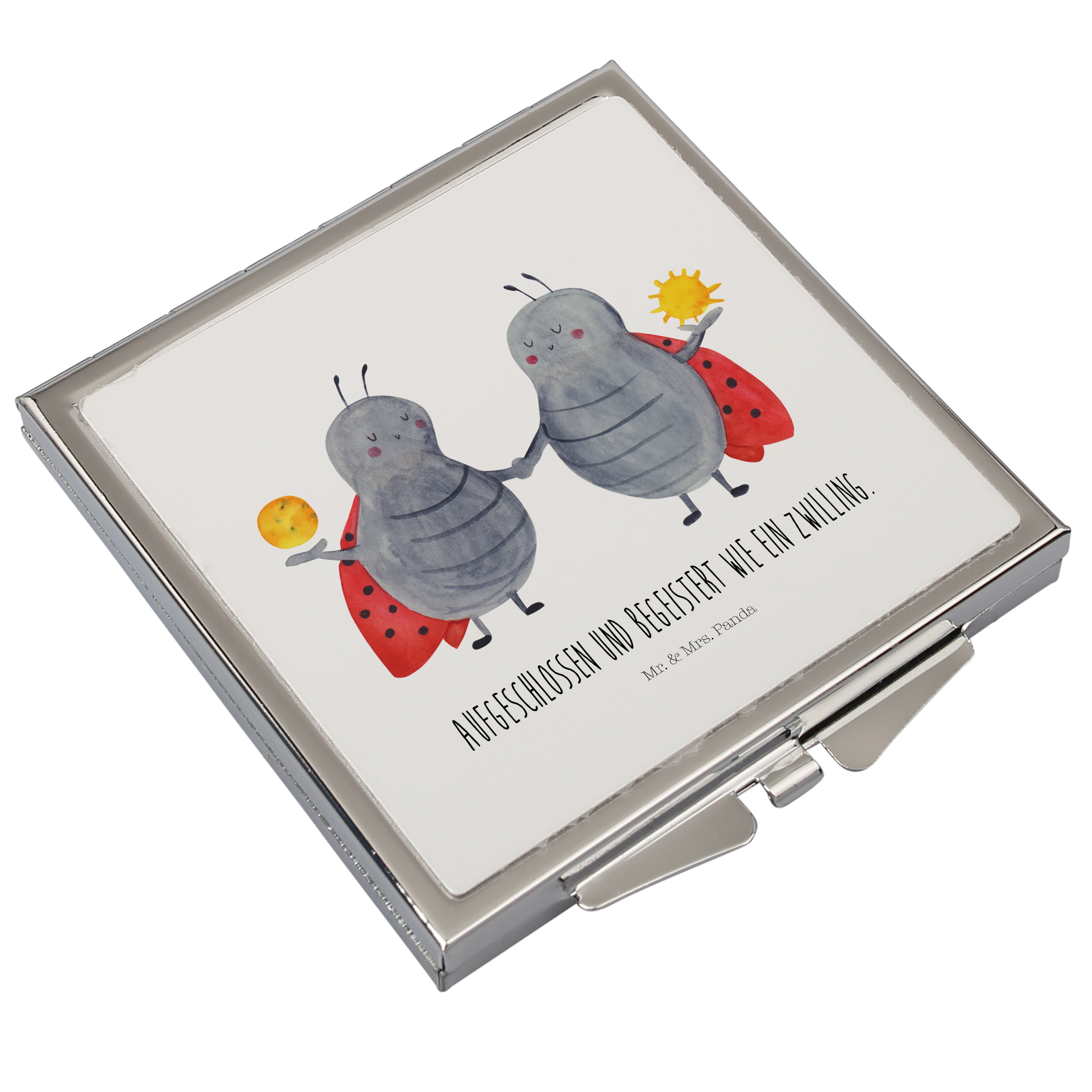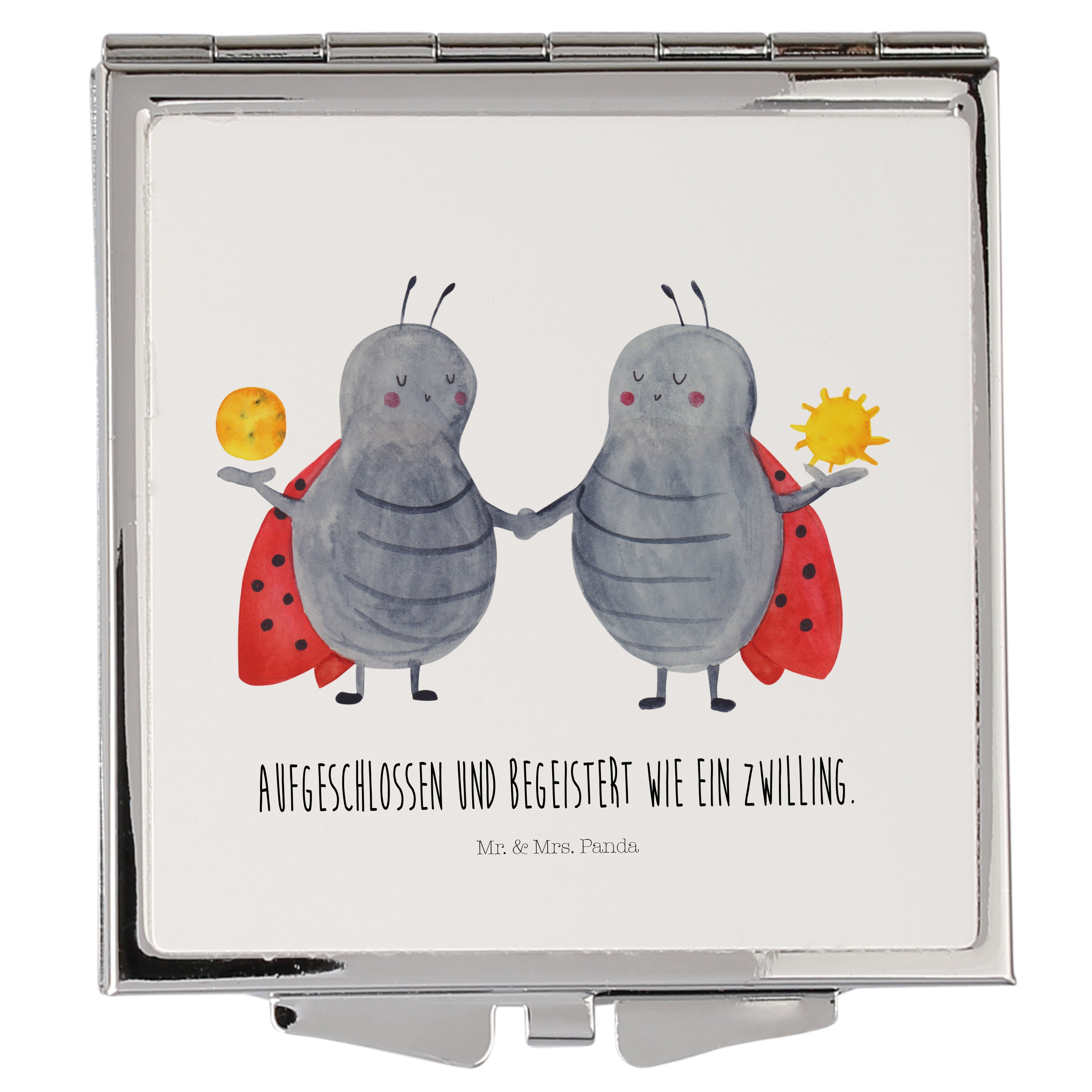 Handtaschenspiegel quadratisch Sternzeichen Zwilling Spiegel, Handtasche, Quadrat, silber, schminken, Schminkspiegel, Tierkreiszeichen, Sternzeichen, Horoskop, Astrologie, Aszendent, Zwillinge, Zwilling Geschenk, Zwilling Sternzeichen, Geburtstag Mai, Geschenk Mai, Geschenk Juni, Marienkäfer, Glückskäfer, Zwillingsbruder, Zwillingsschwester