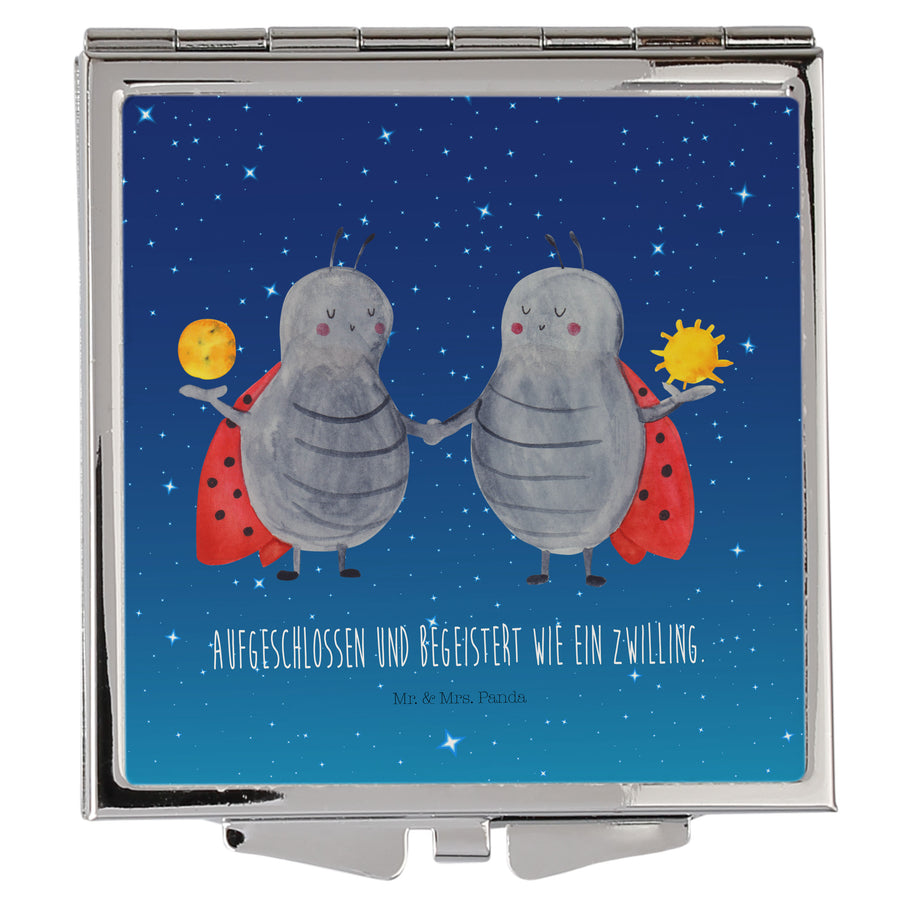Handtaschenspiegel quadratisch Sternzeichen Zwilling - mit Spruch - Sternenhimmel Blau