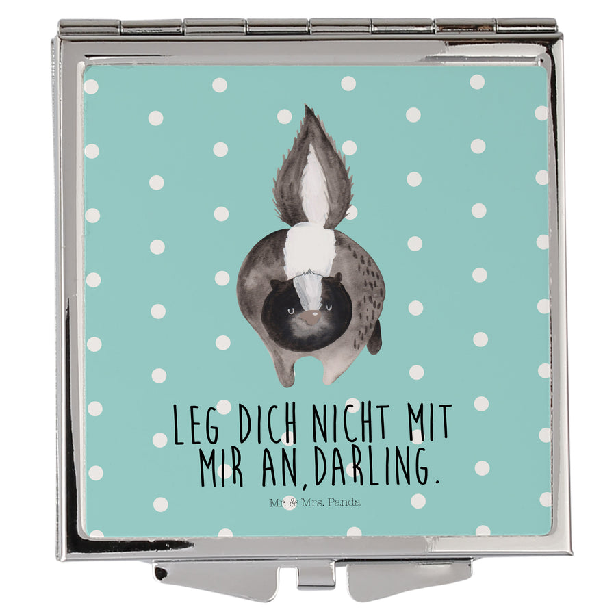 Handtaschenspiegel quadratisch Stinktier Angriff - mit Spruch - Türkis Pastell