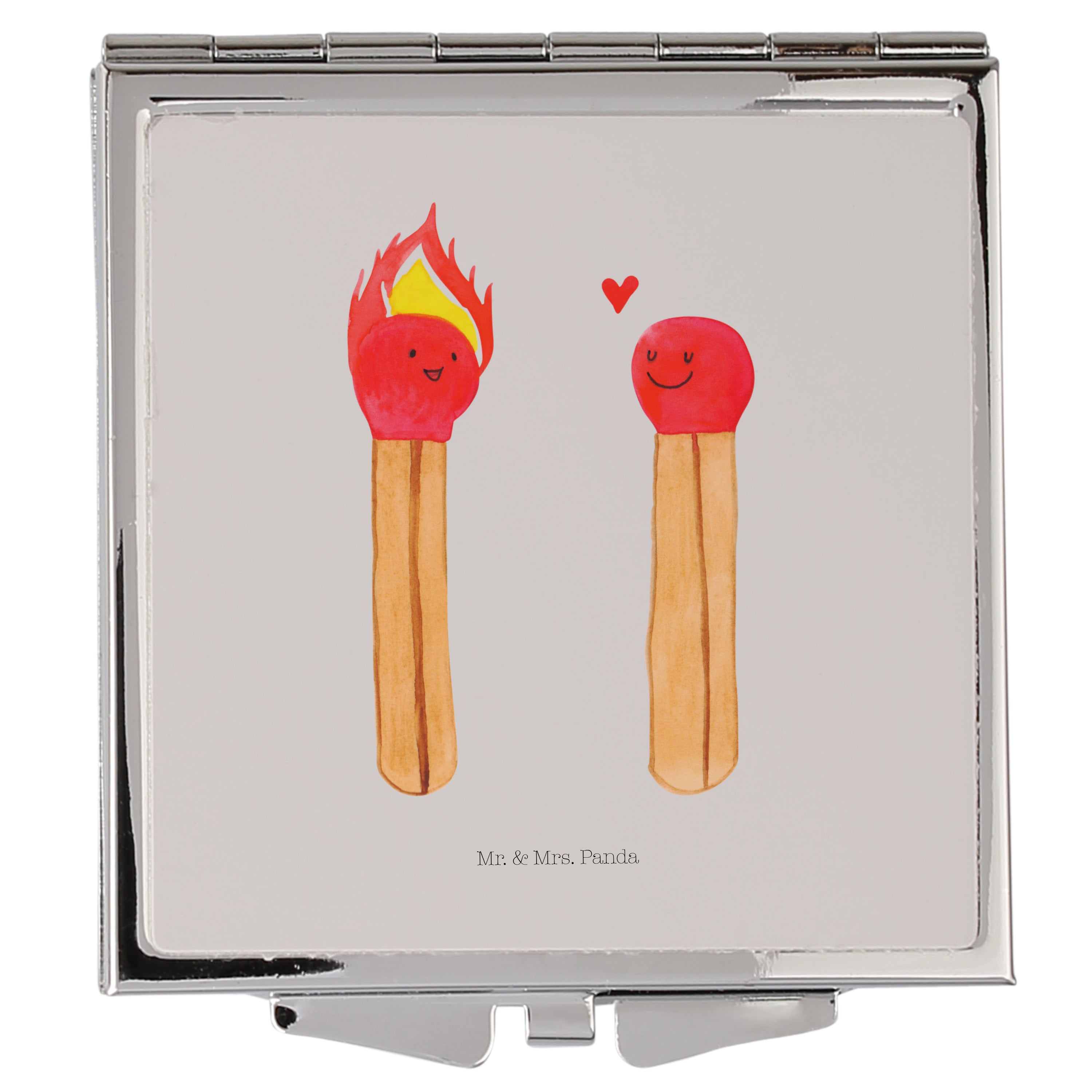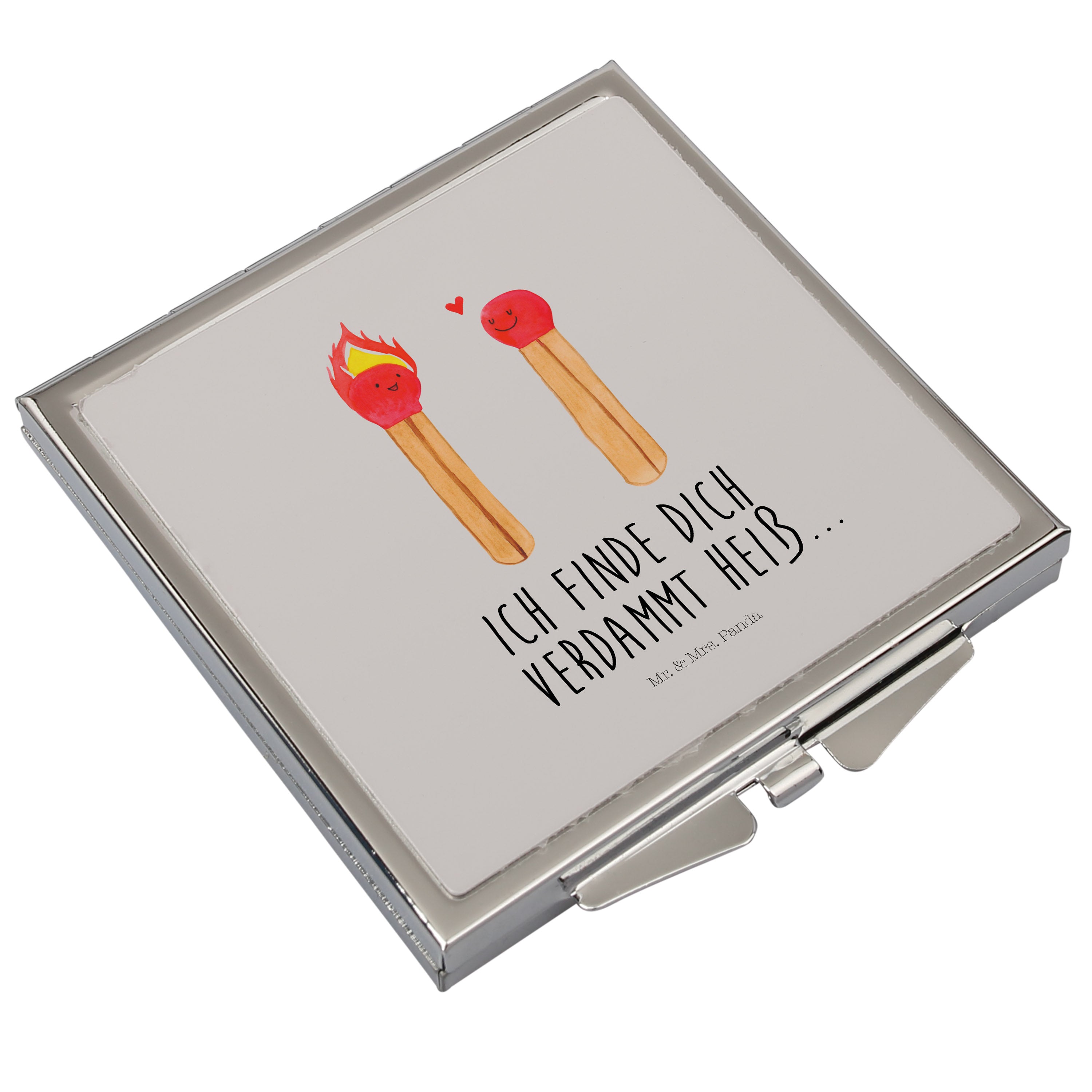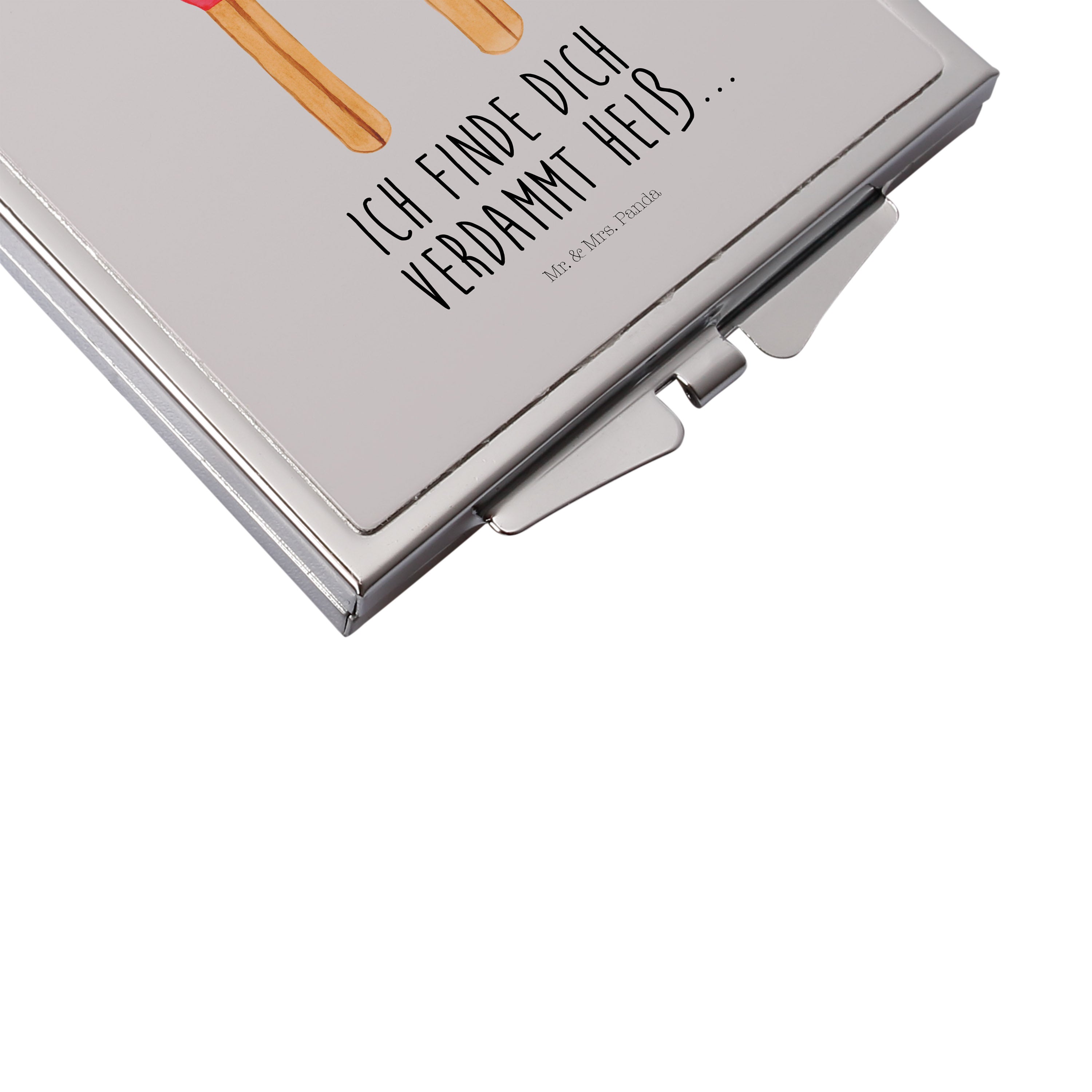 Handtaschenspiegel quadratisch Streichhölzer - mit Spruch - Grau Pastell