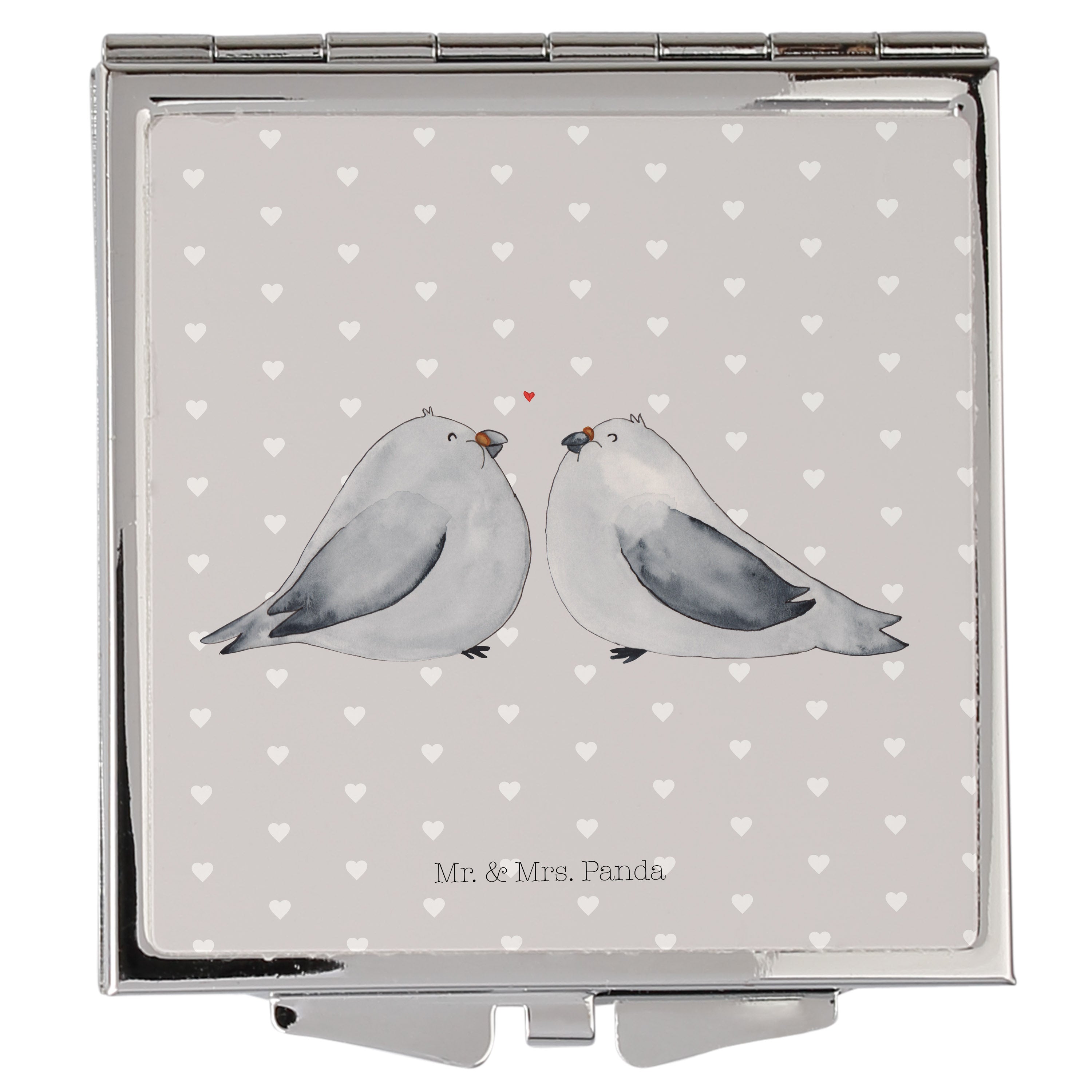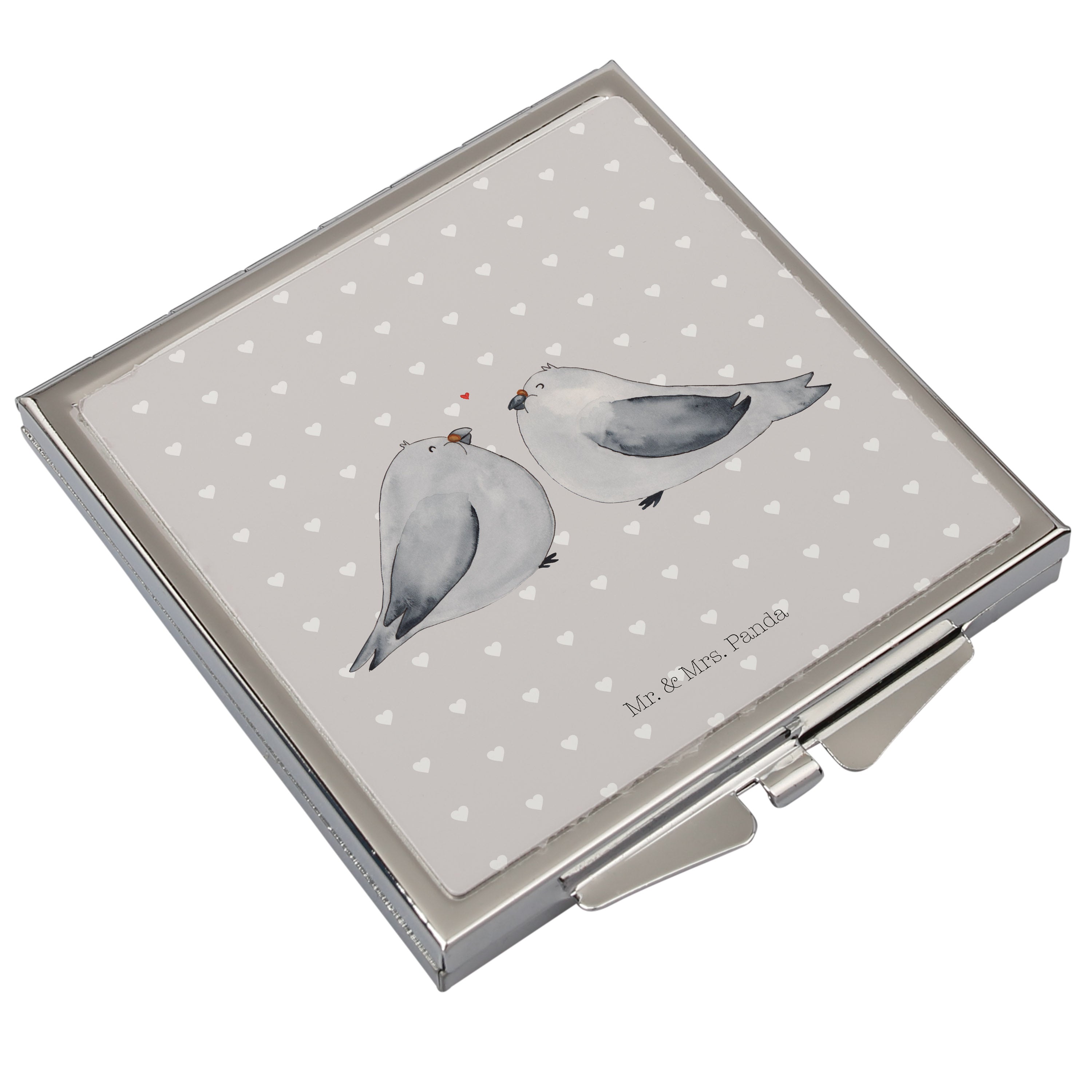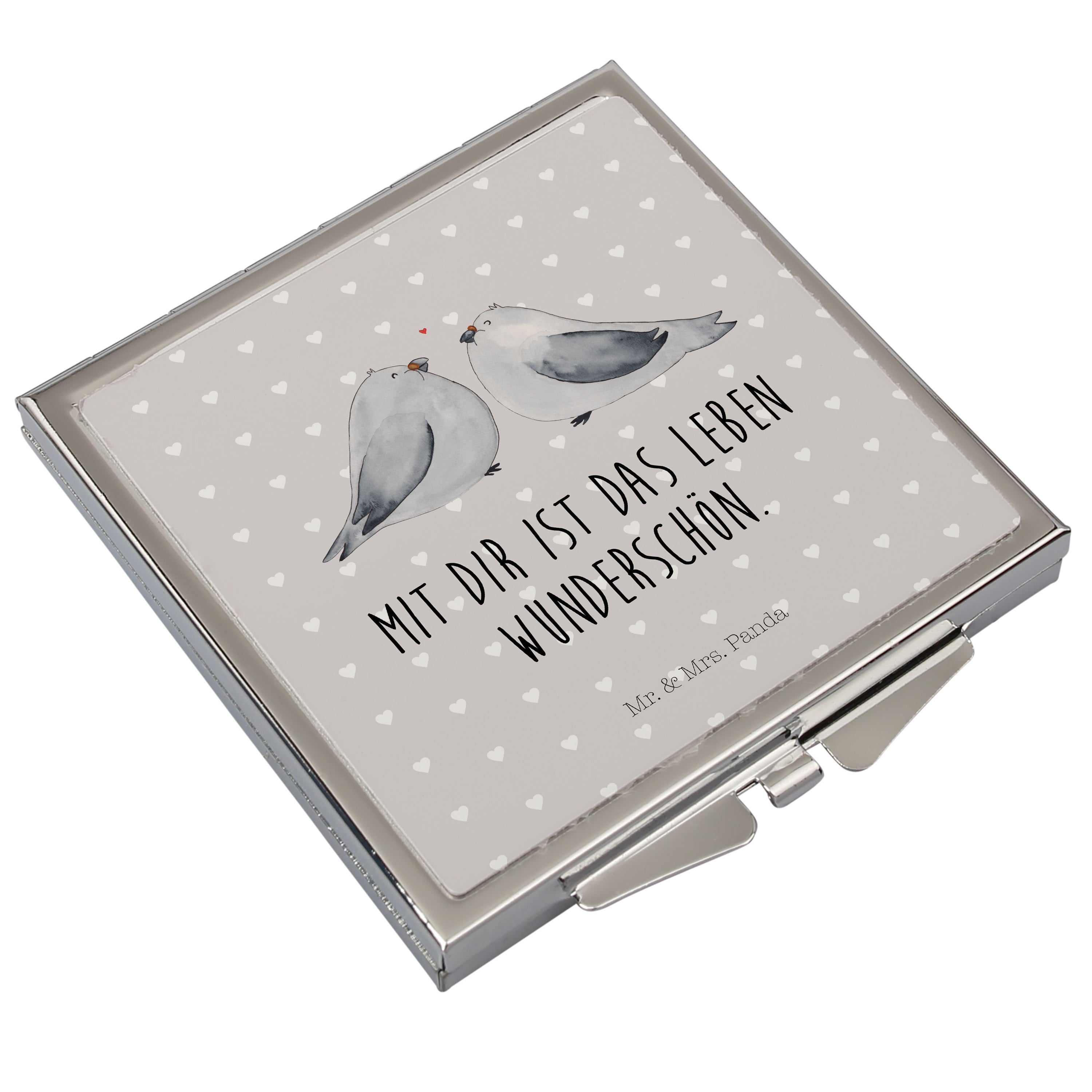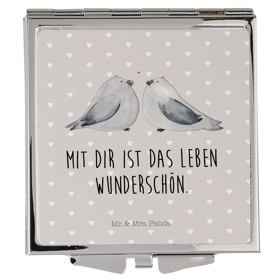 Handtaschenspiegel quadratisch Turteltauben Liebe - mit Spruch - Grau Pastell