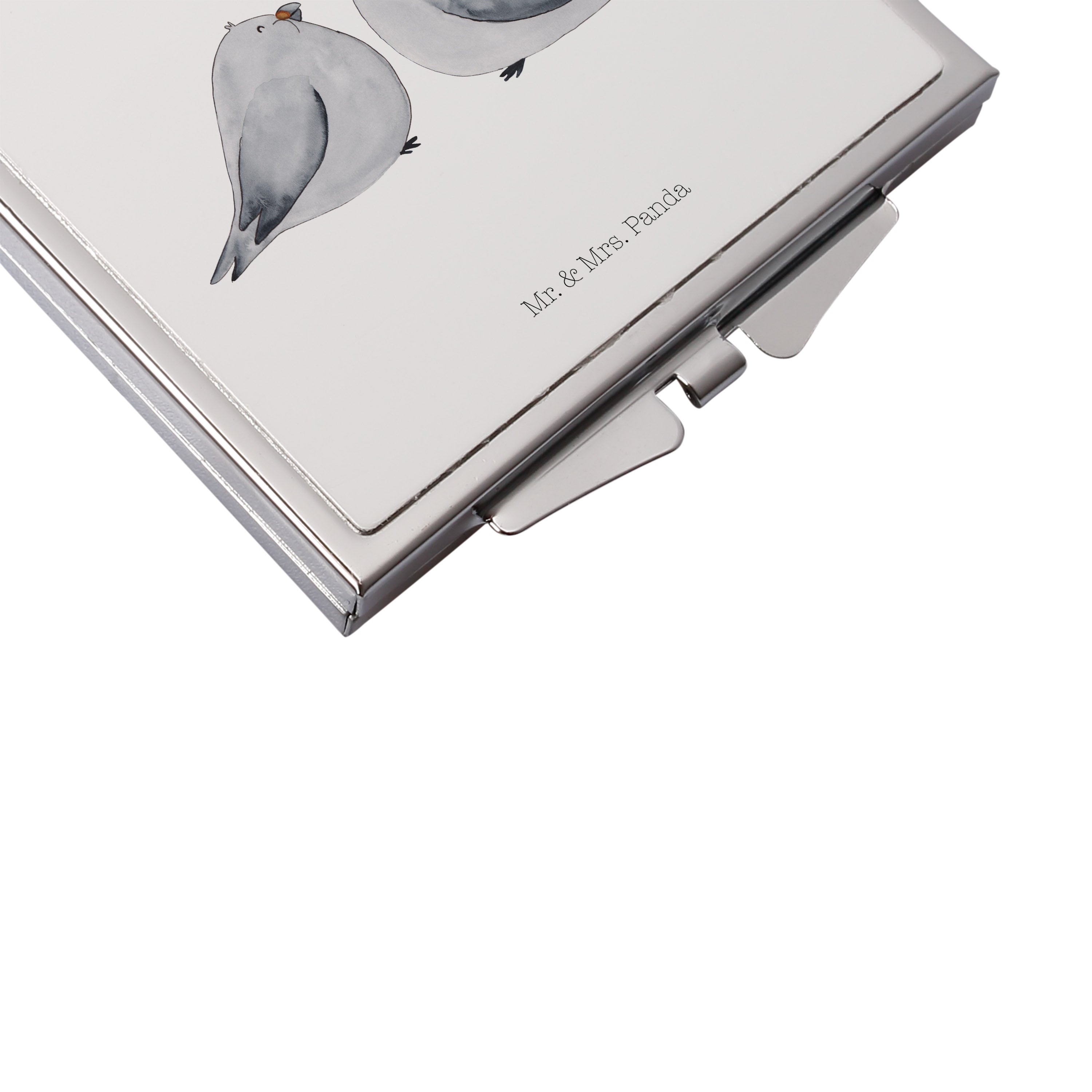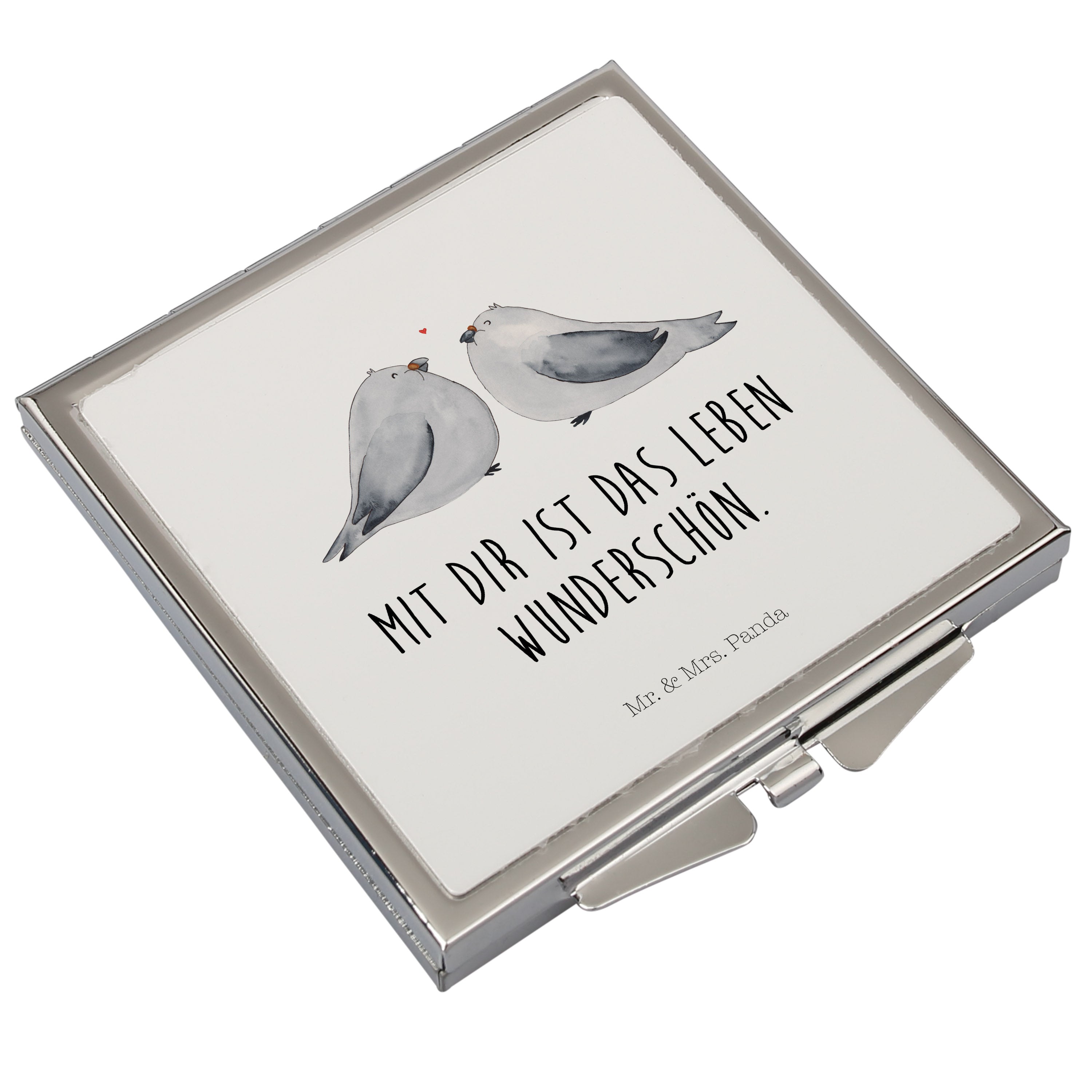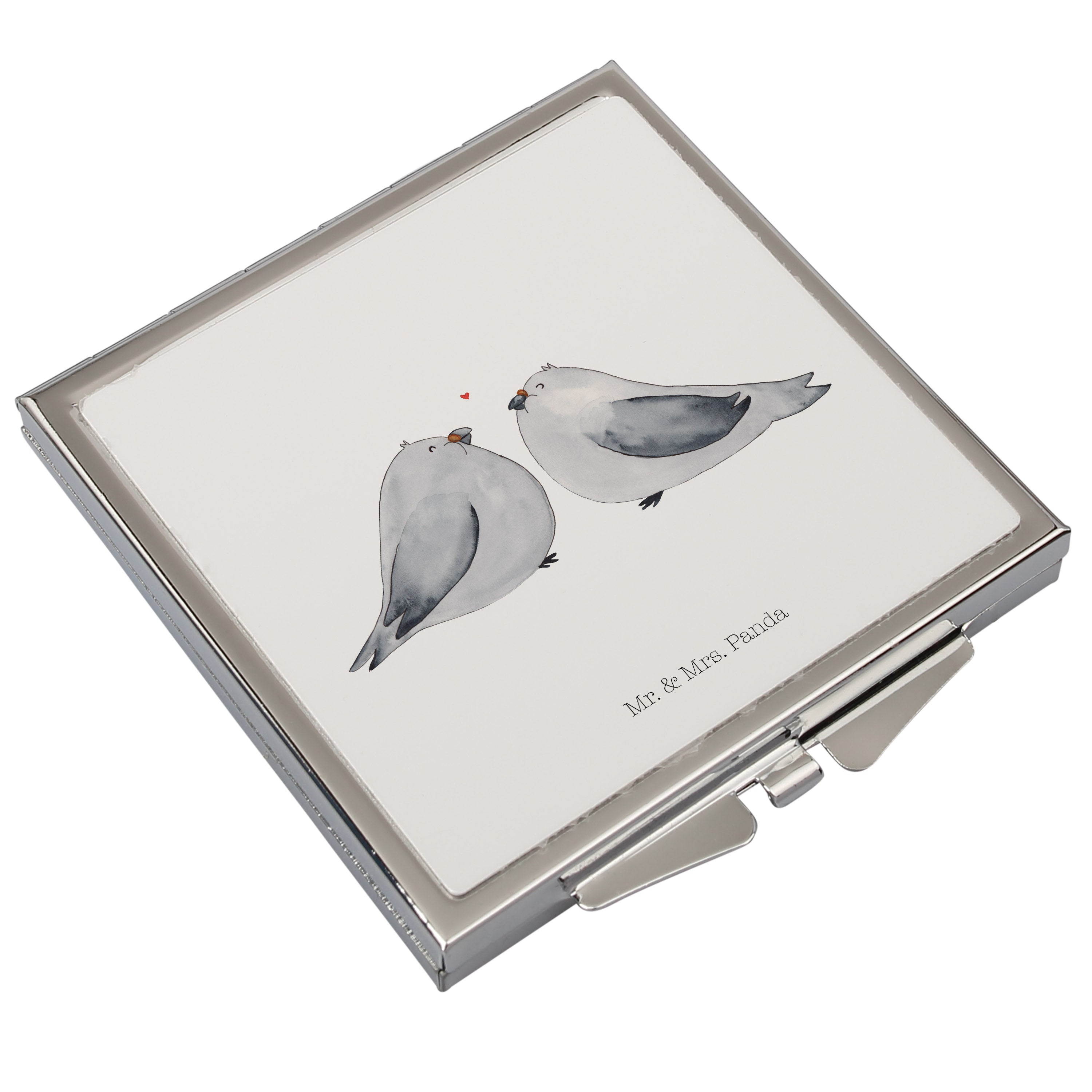 Handtaschenspiegel quadratisch Turteltauben Liebe - mit Spruch - Grau Pastell