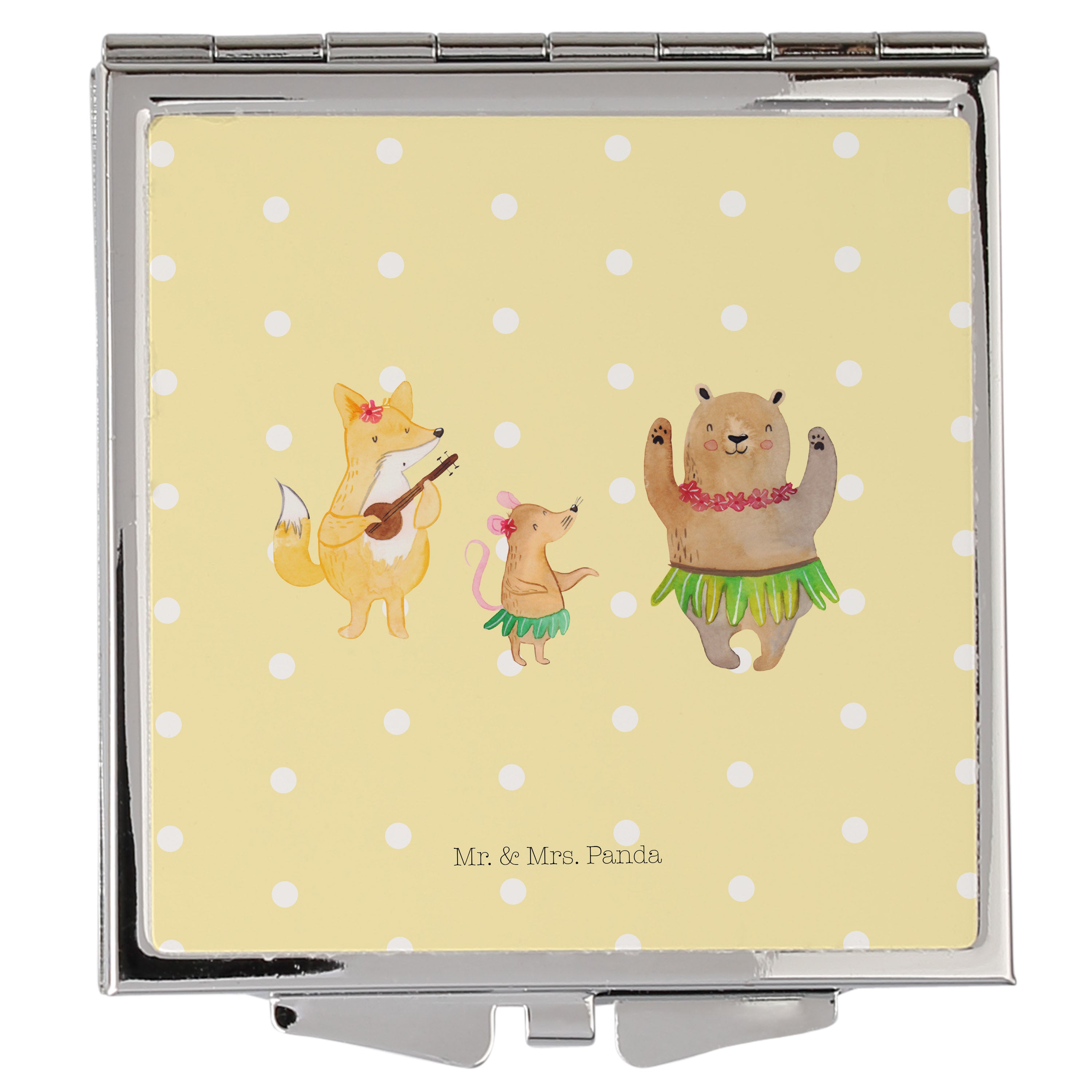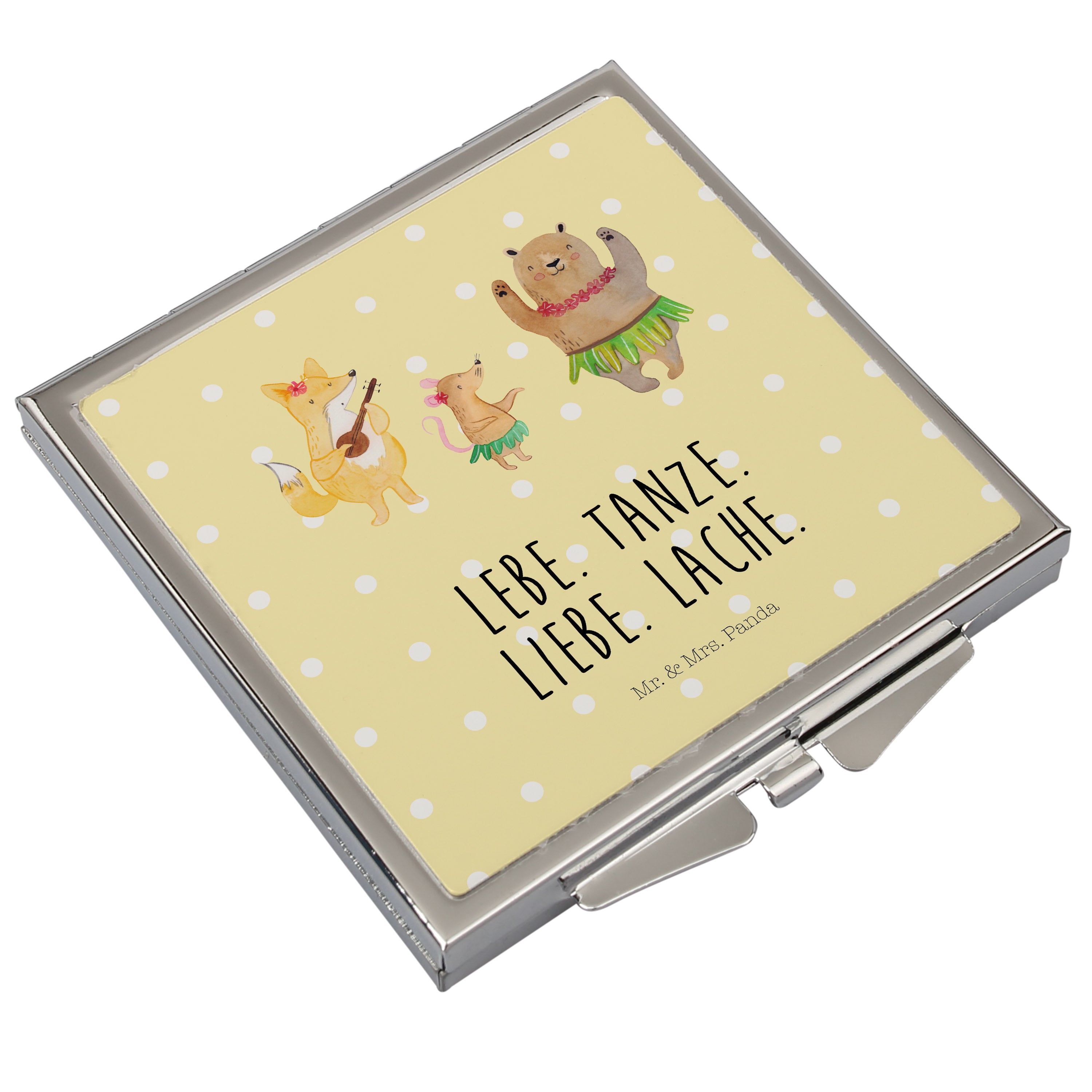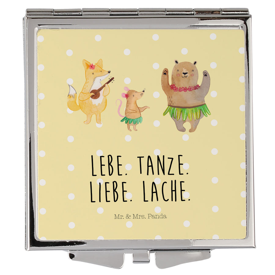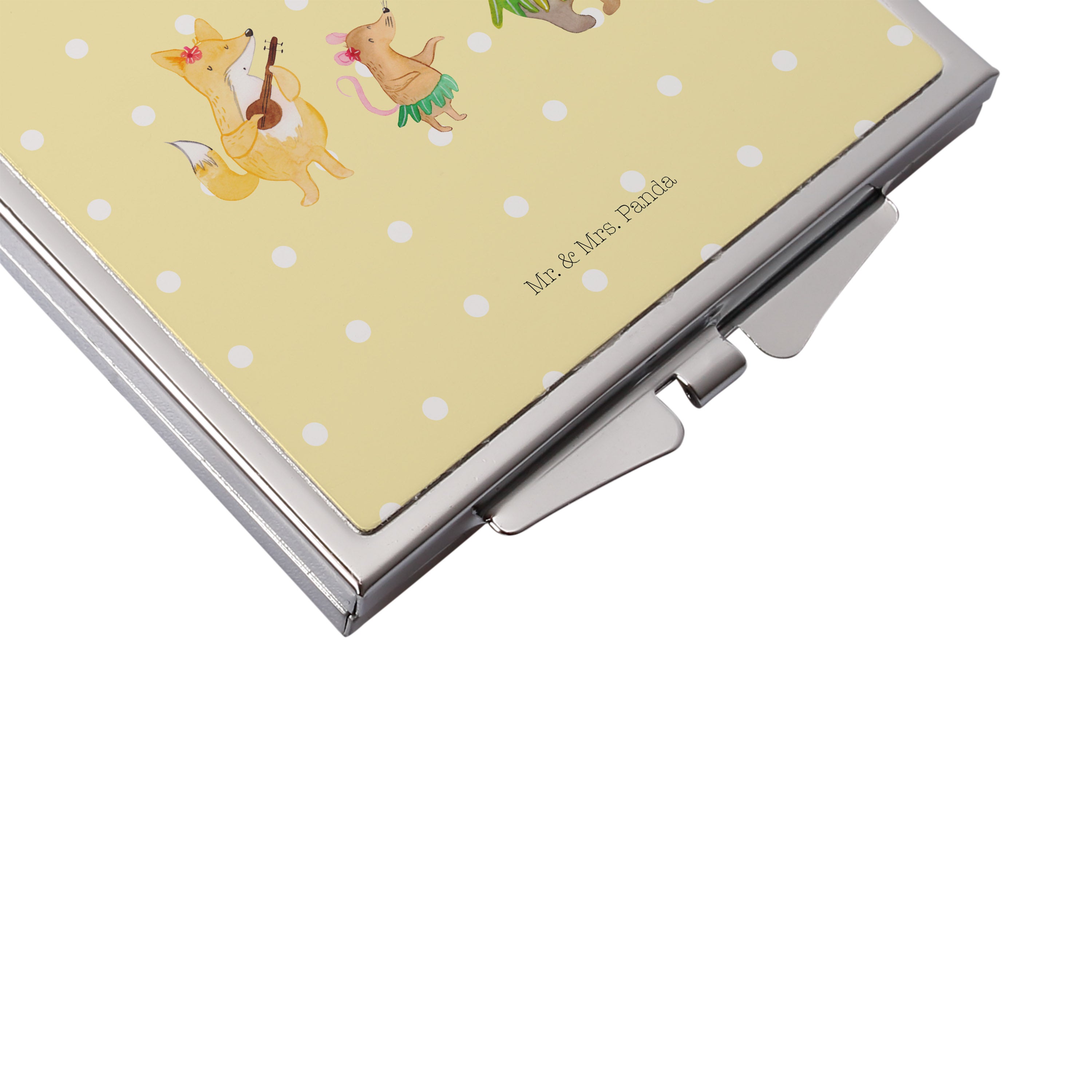 Handtaschenspiegel quadratisch Waldtiere Aloha - mit Spruch - Gelb Pastell