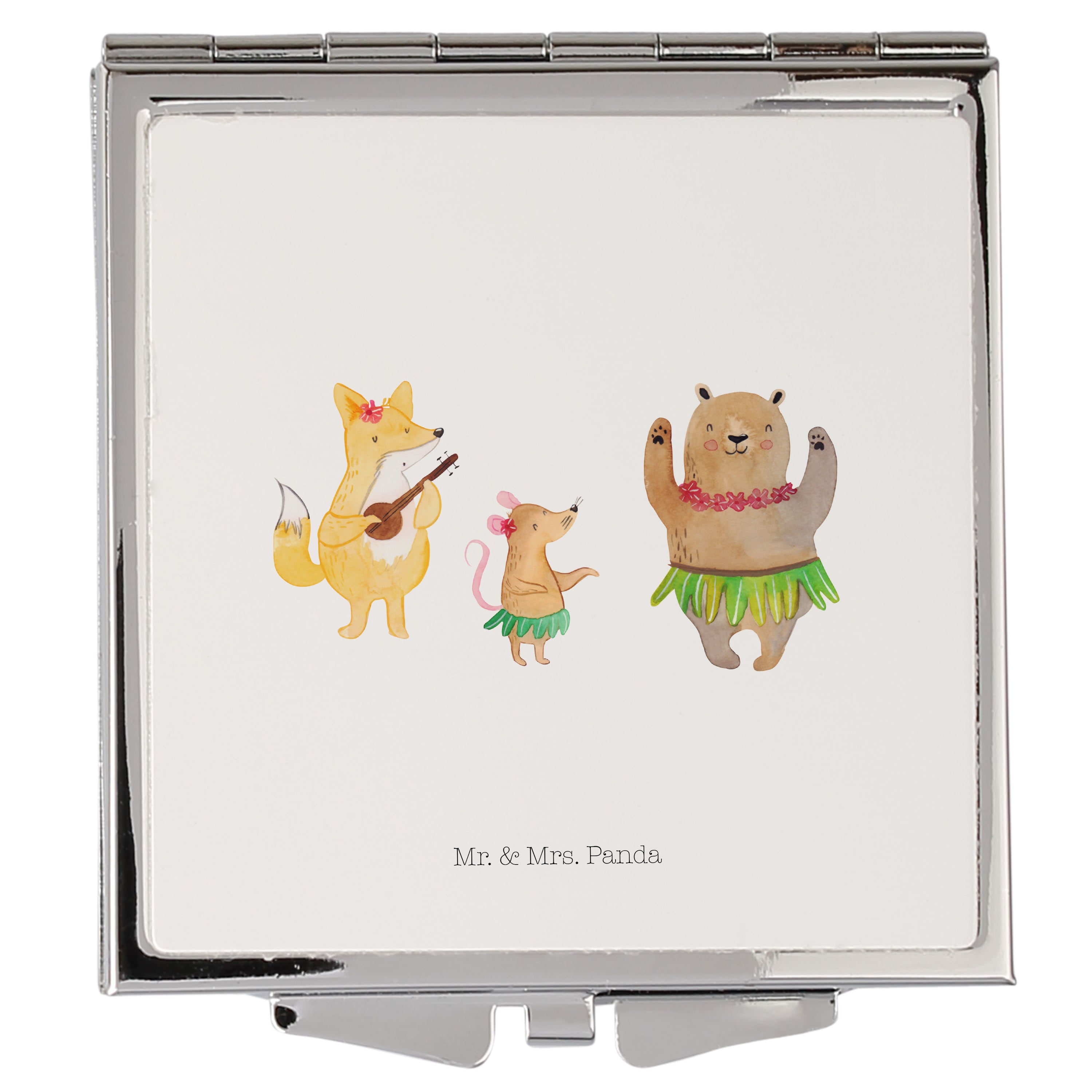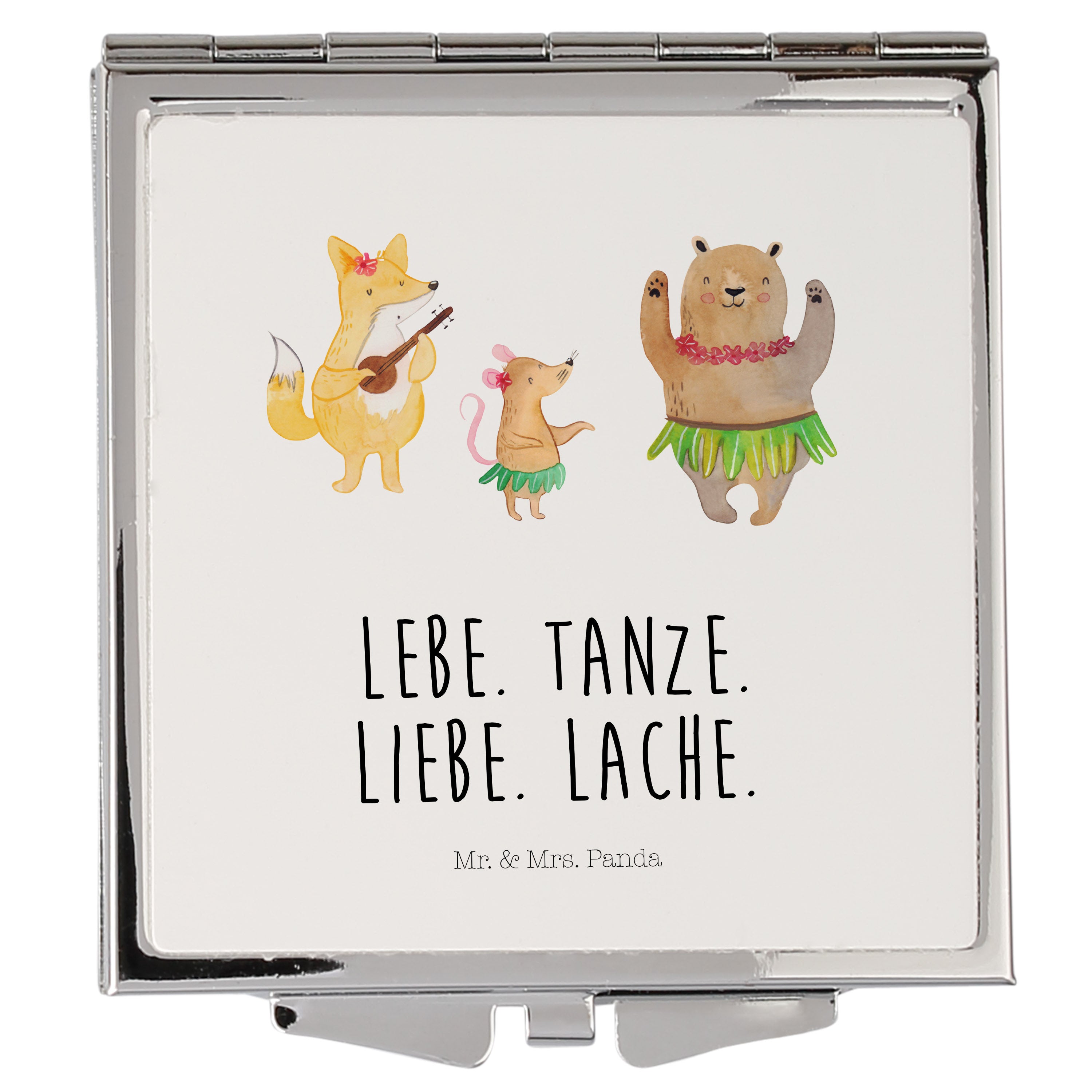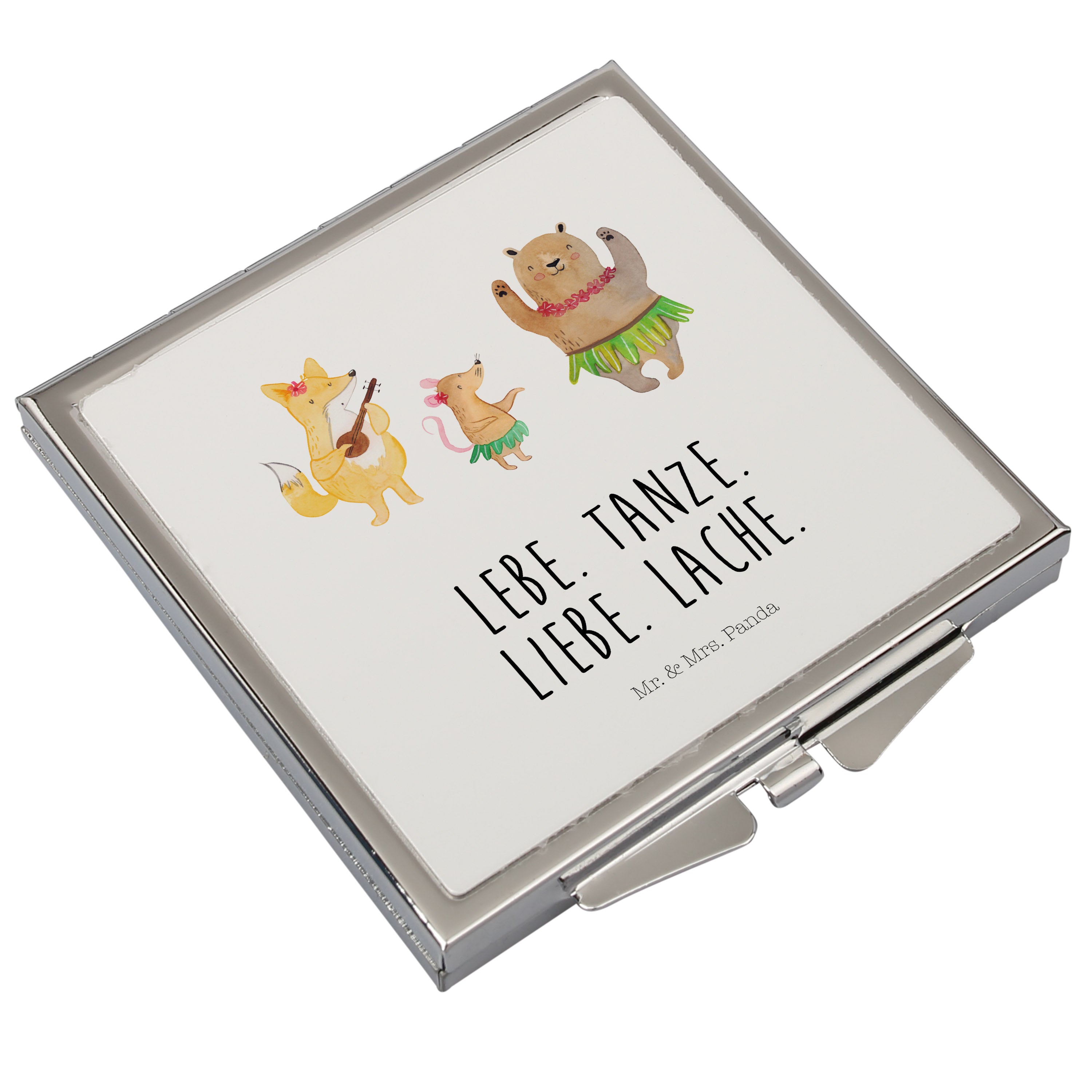 Handtaschenspiegel quadratisch Waldtiere Aloha - mit Spruch - Gelb Pastell