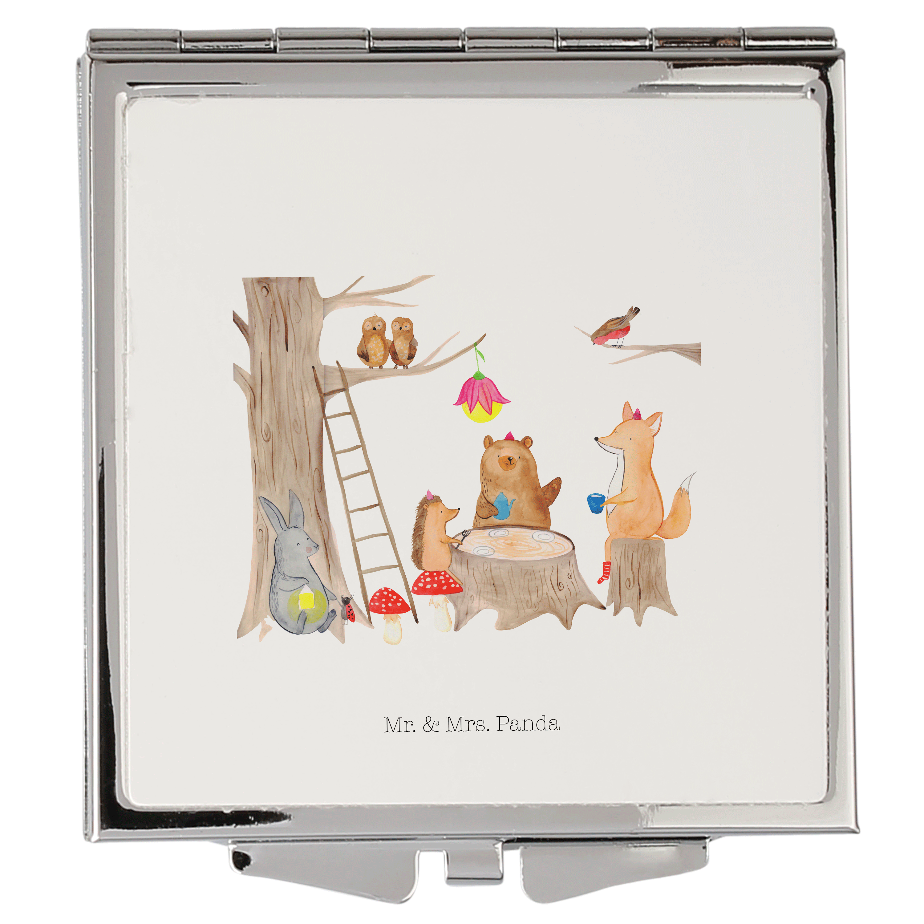 Handtaschenspiegel quadratisch Waldtiere Picknick - Gelb Pastell