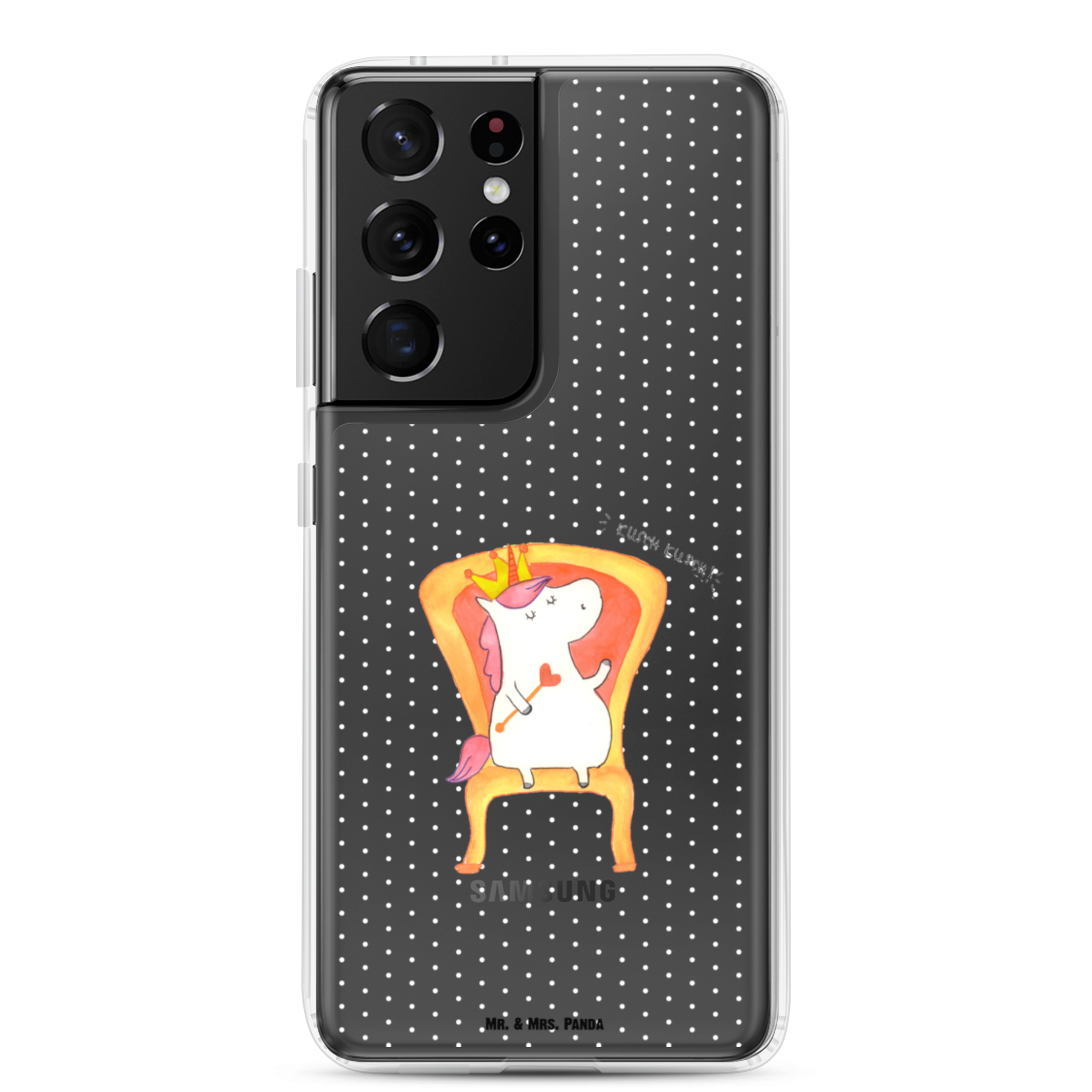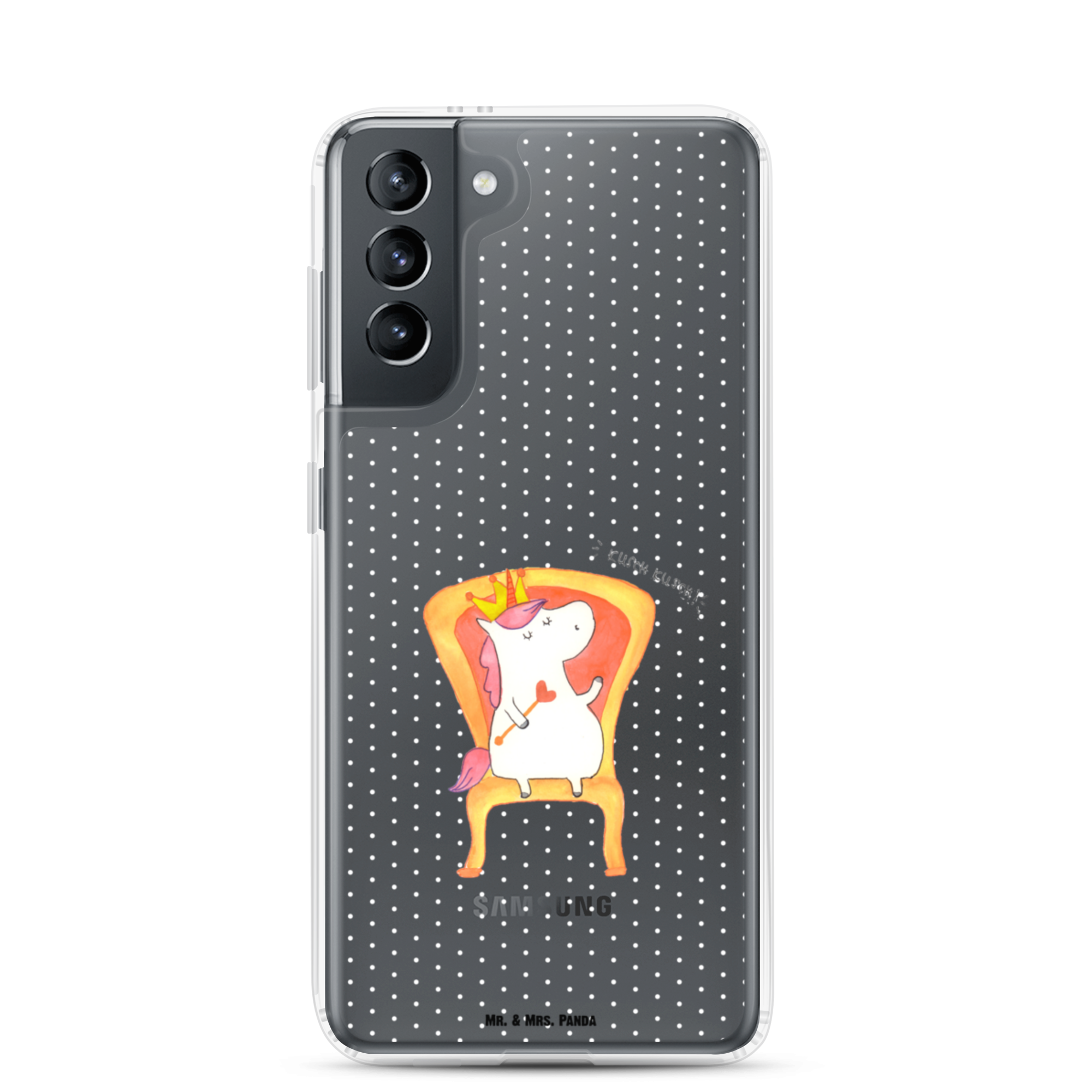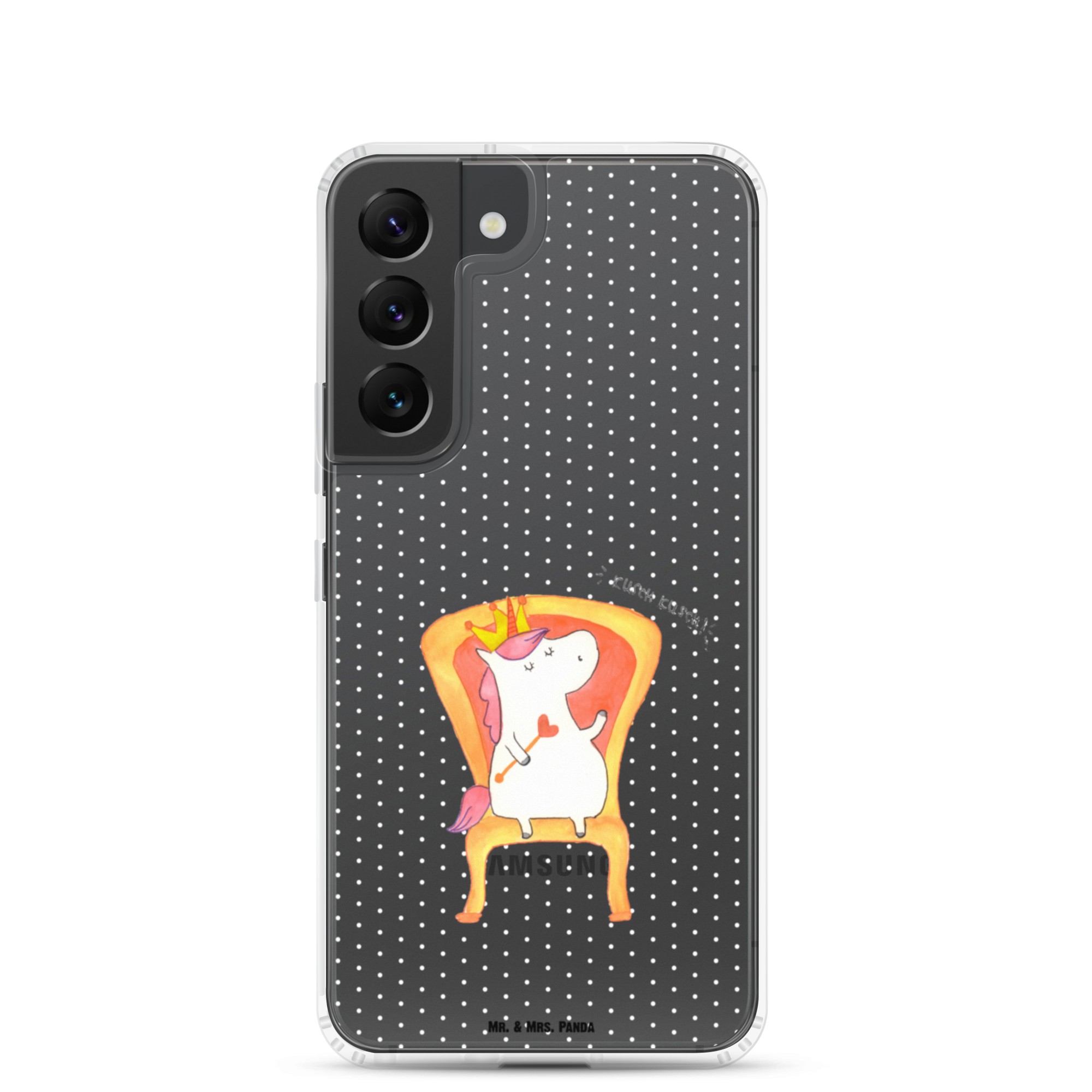 Das süße Einhorn auf dem Thron ist genau das richtige Geschenk für die beste Freundin. Denn manchmal würden wir doch alle gerne mit einer Krone auf einem Thron sitzen und Leuten, die uns nerven, ein kurzes "kusch, kusch" zurufen. Hauptsache sie lassen den Sekt da. Tipp von Mr. & Mrs. Panda: das perfekte Motiv für die Zimmertür.