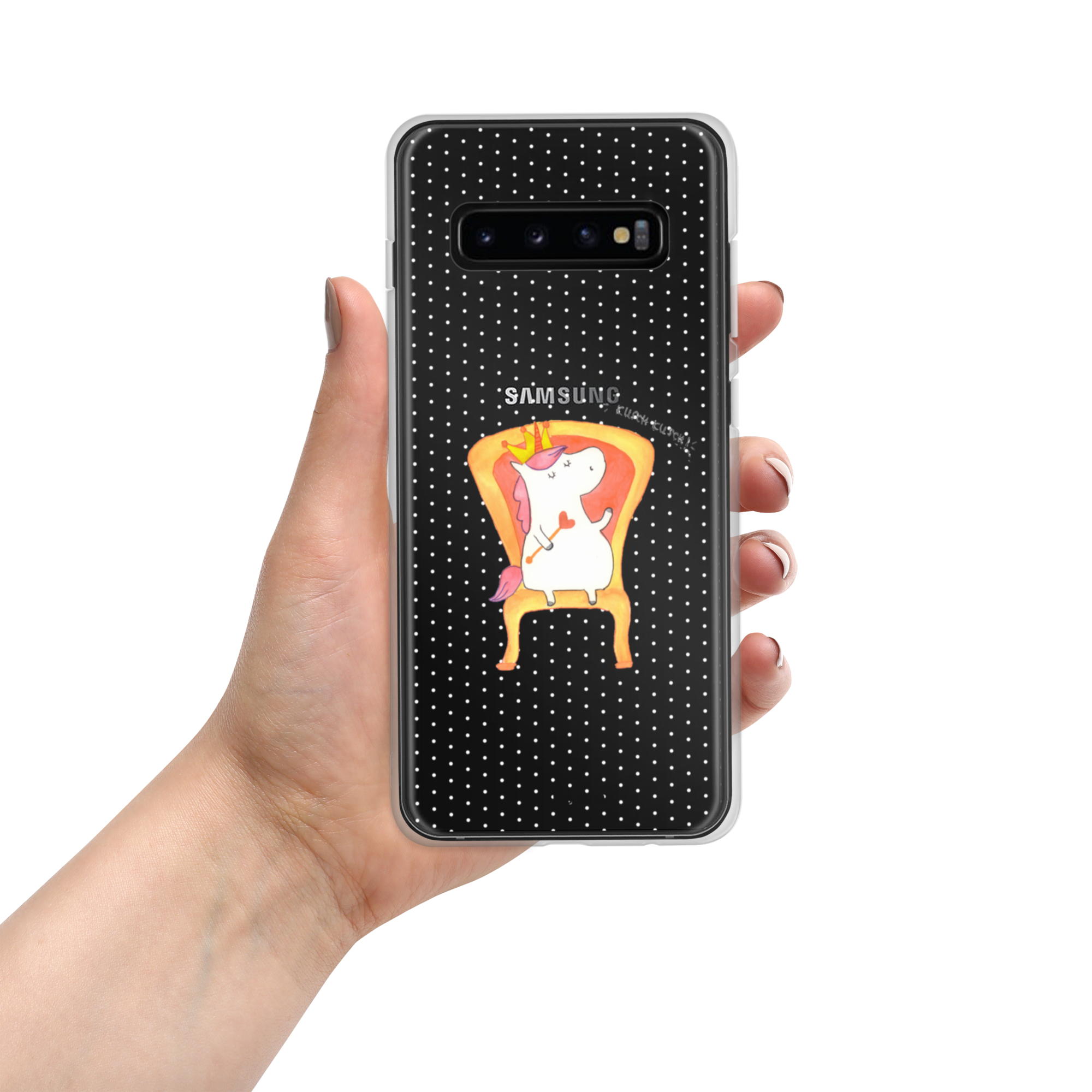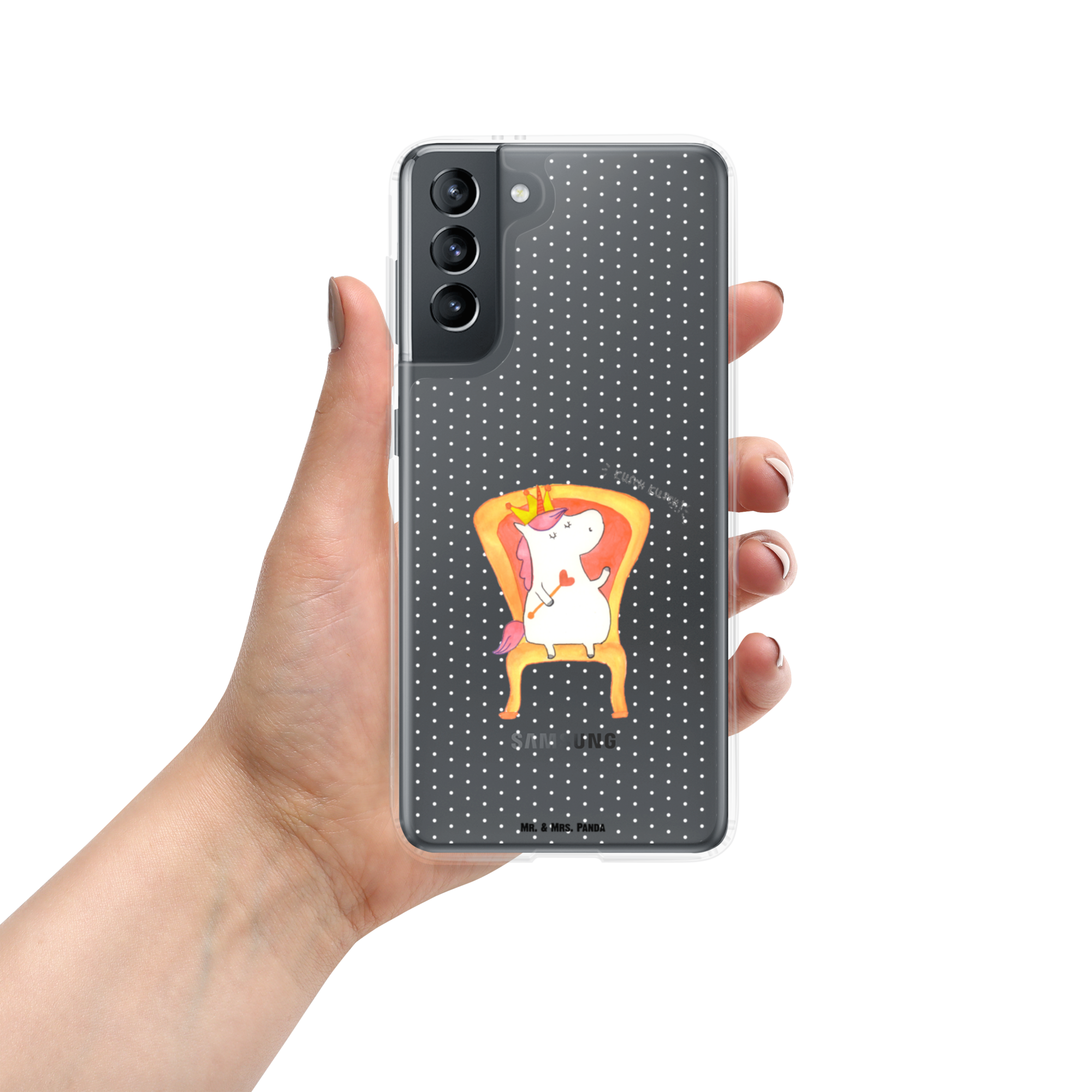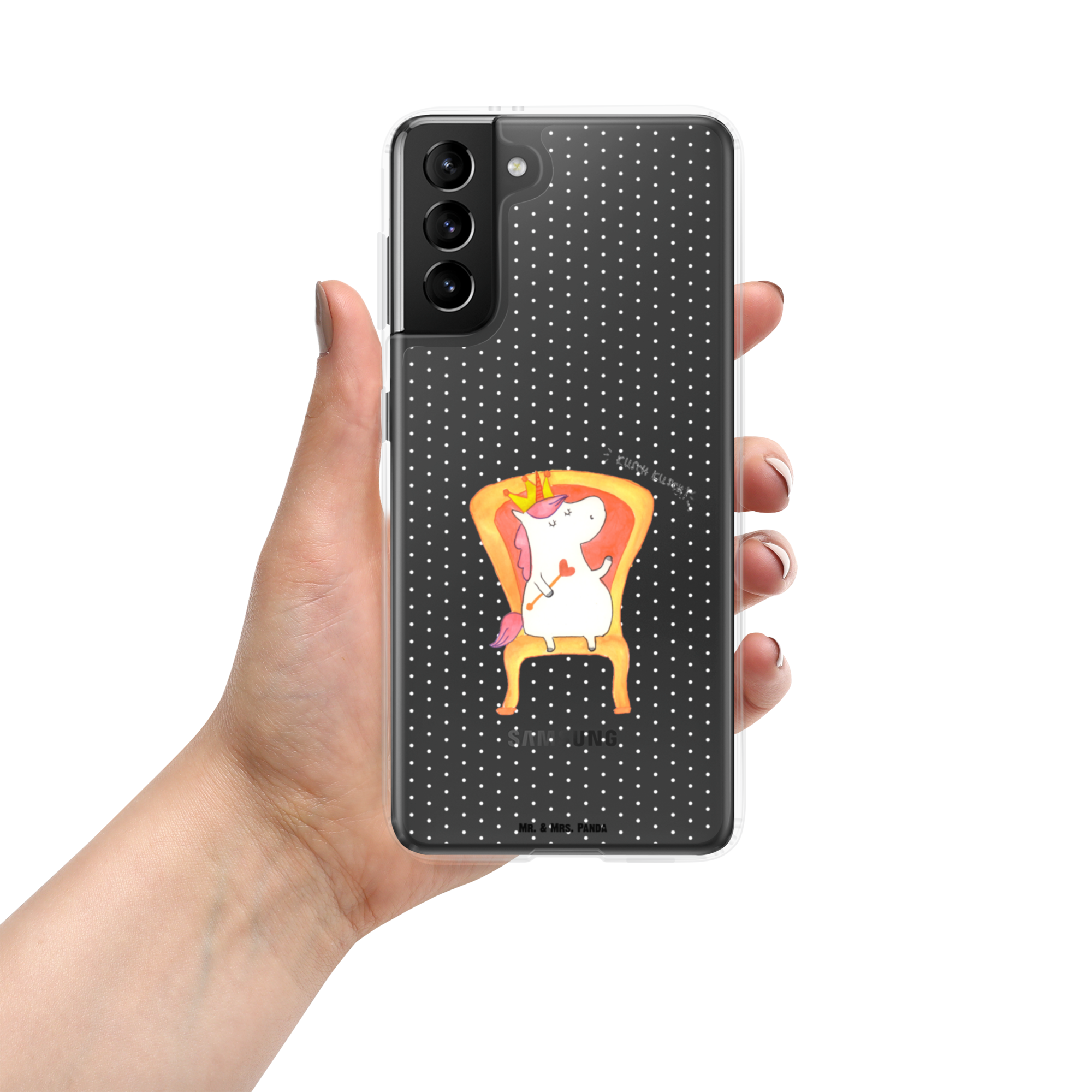 Das süße Einhorn auf dem Thron ist genau das richtige Geschenk für die beste Freundin. Denn manchmal würden wir doch alle gerne mit einer Krone auf einem Thron sitzen und Leuten, die uns nerven, ein kurzes "kusch, kusch" zurufen. Hauptsache sie lassen den Sekt da. Tipp von Mr. & Mrs. Panda: das perfekte Motiv für die Zimmertür.