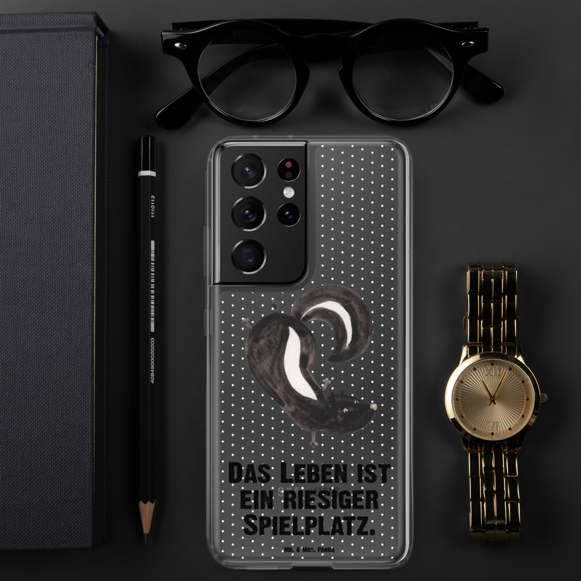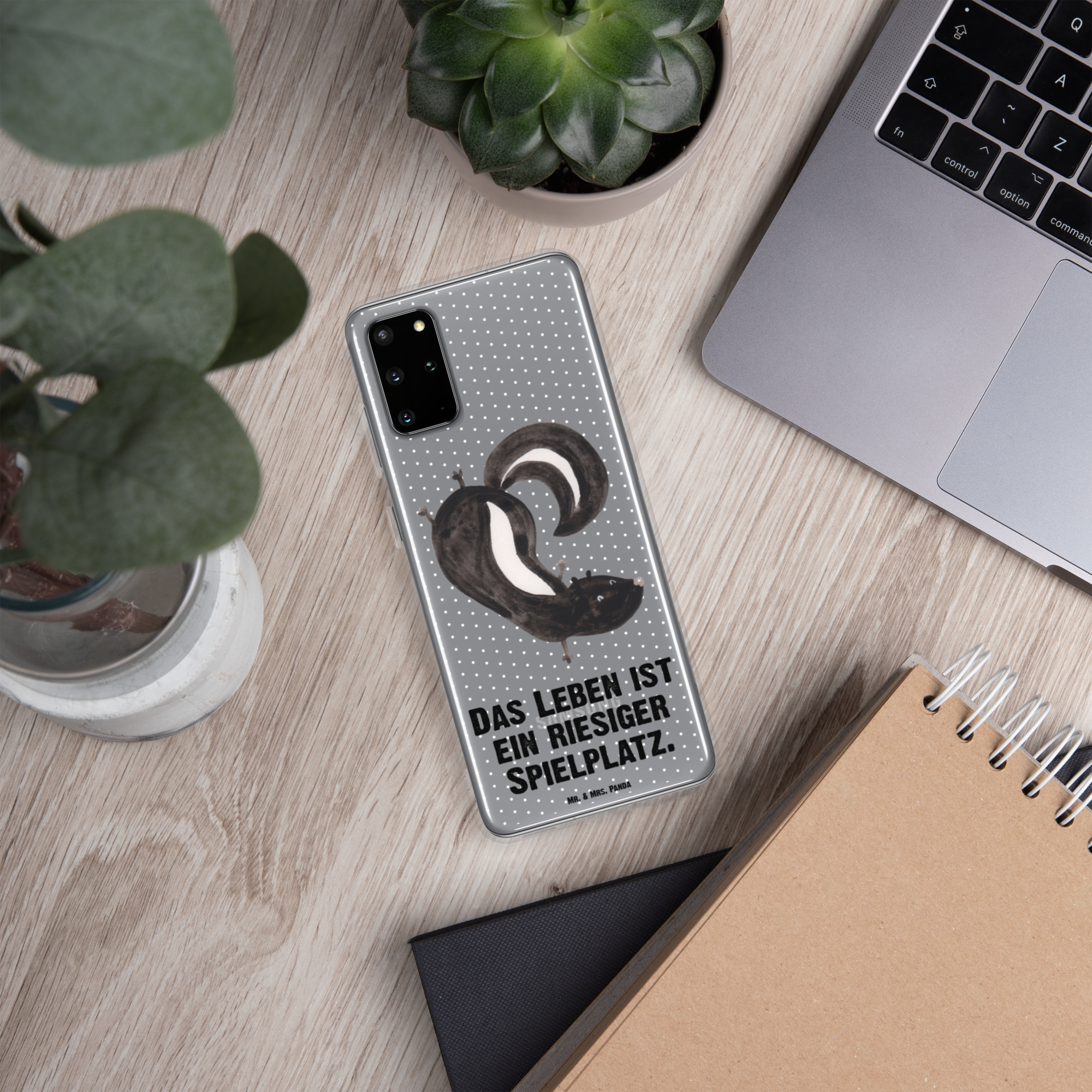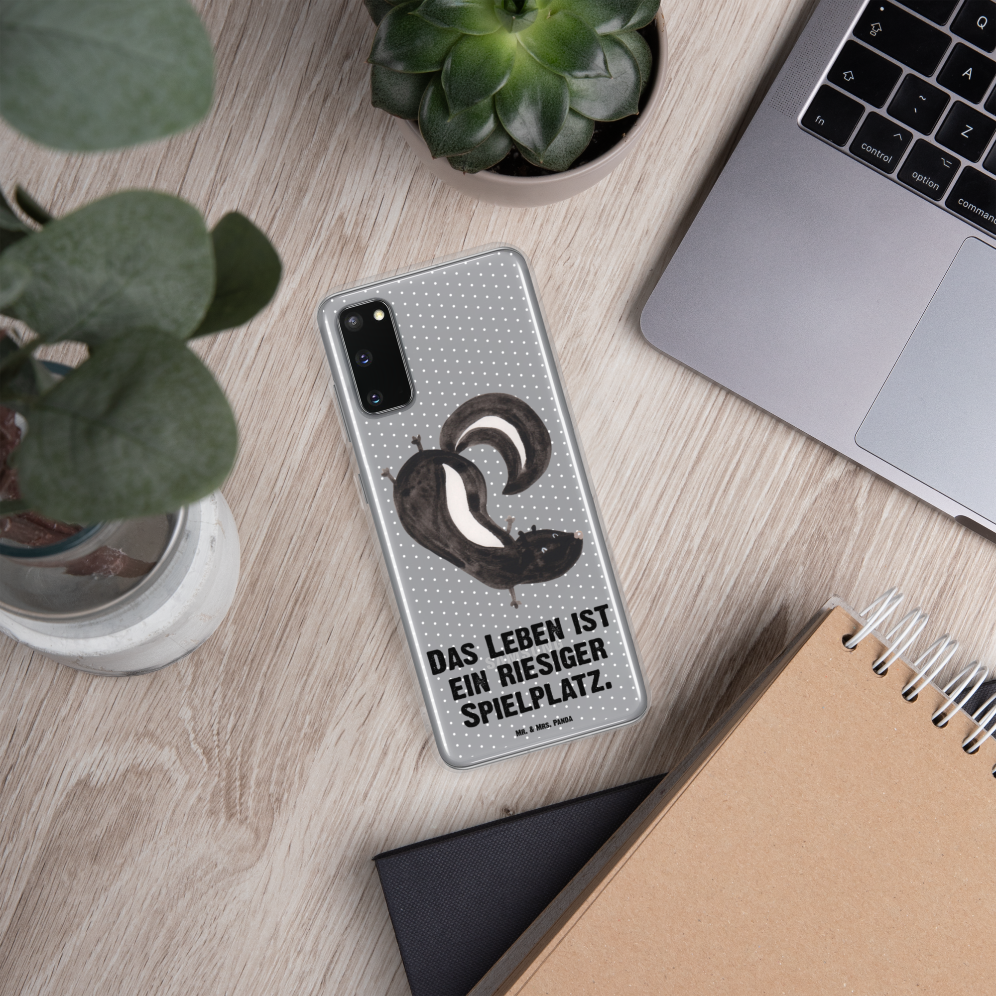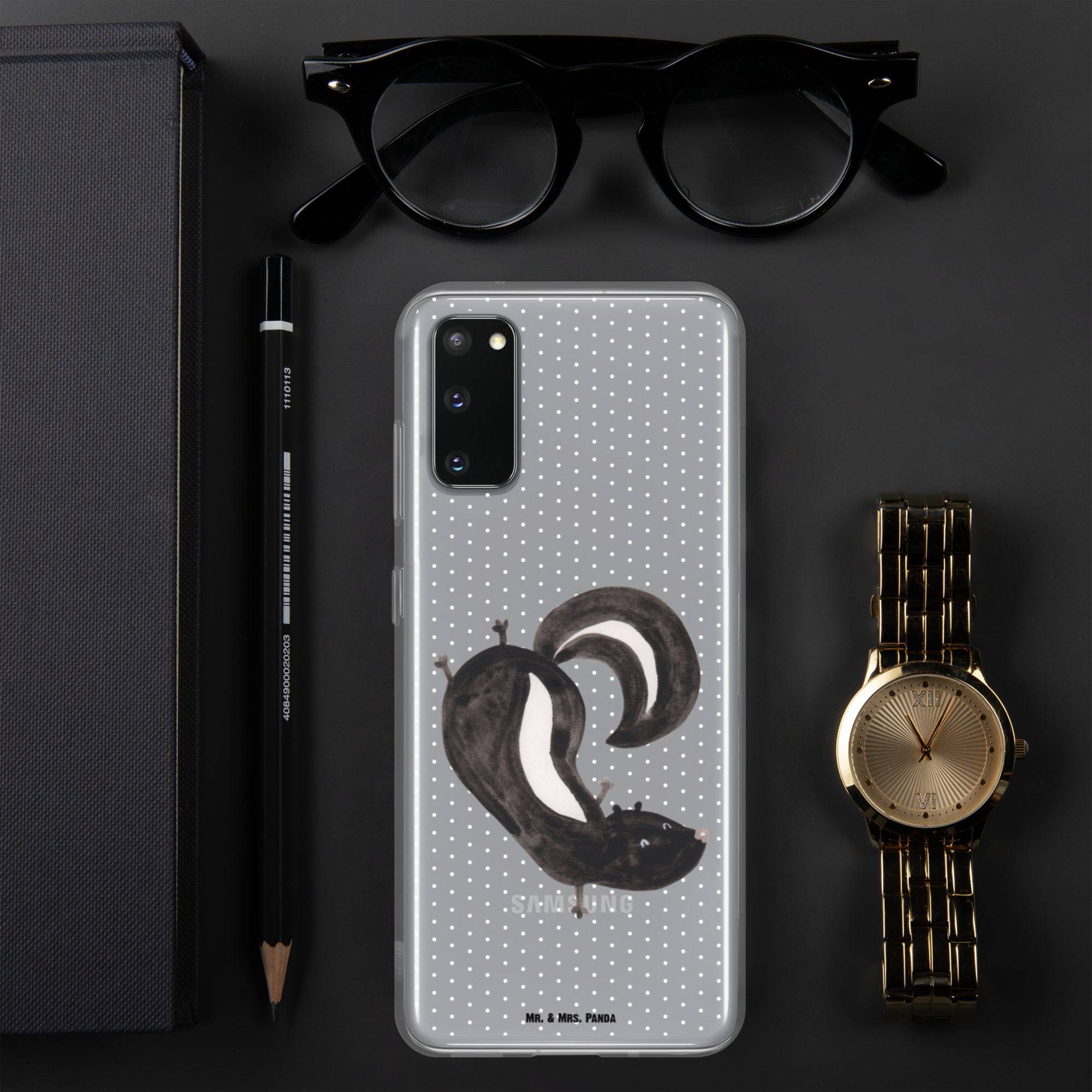 Du kannst einfach nicht genug bekommen von Stinktieren? Dann ist das Stinktier Handstand Motiv von Mr. & Mrs. Panda genau das Richtige für Dich. Das süße Stinktier zeigt Dir, wie man auf sportliche Art einen Handstand hinlegt. Mit seinen liebenswerten Augen und dem typischen Stinktier-Look schaut es Dich dabei an und vermittelt Dir das richtige Sommerfeeling. Das Motiv wurde für Dich in liebevoller Handarbeit mit Aquarellfarben gemalt und zieht sicherlich viele Blicke auf sich.