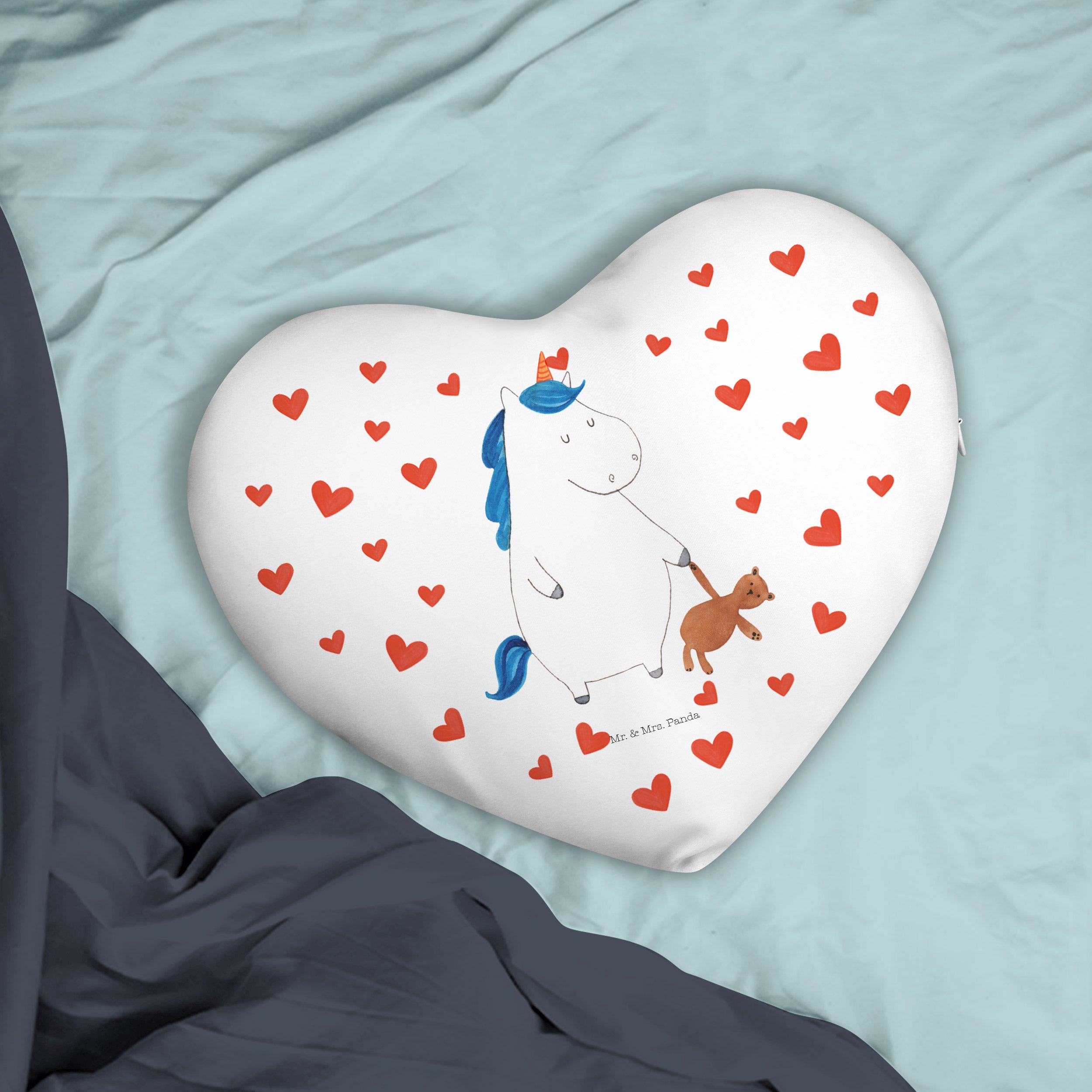 Herzkissen Einhorn Teddy Kissen, Herzkissen, Herzform, Herz, Dekokissen, Einhorn, Einhörner, Einhorn Deko, Pegasus, Unicorn, schlafen, gute Nacht, Single, Bett, Träumen, Freundin, Singleleben