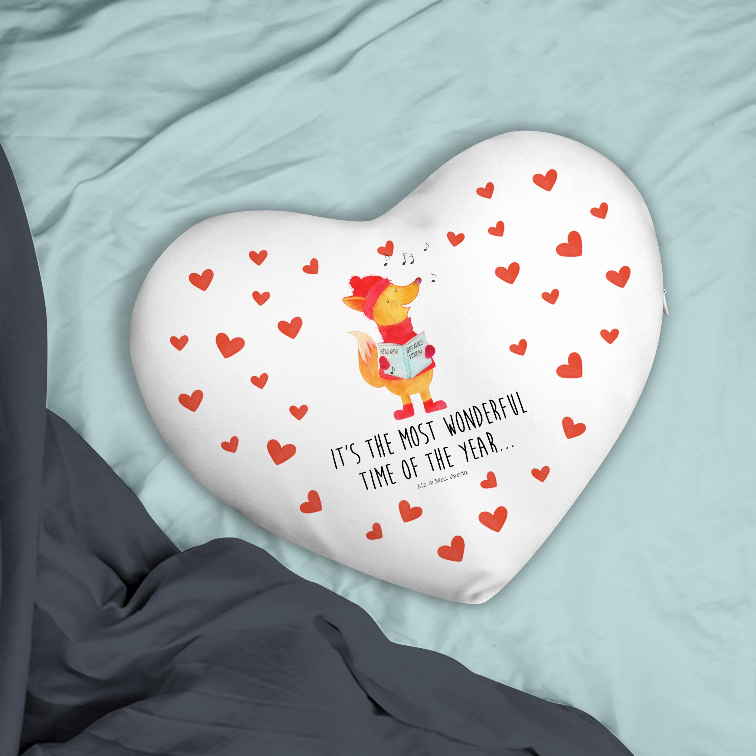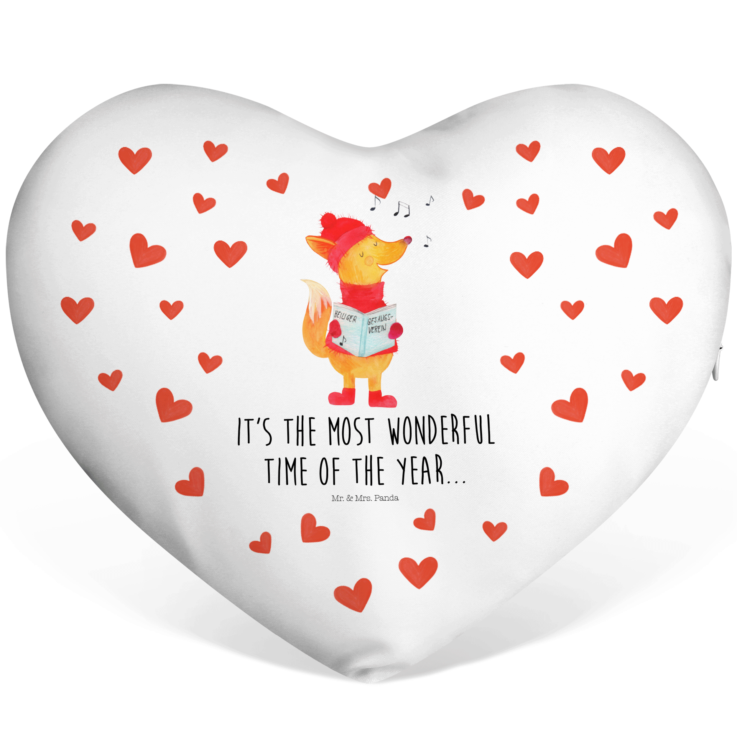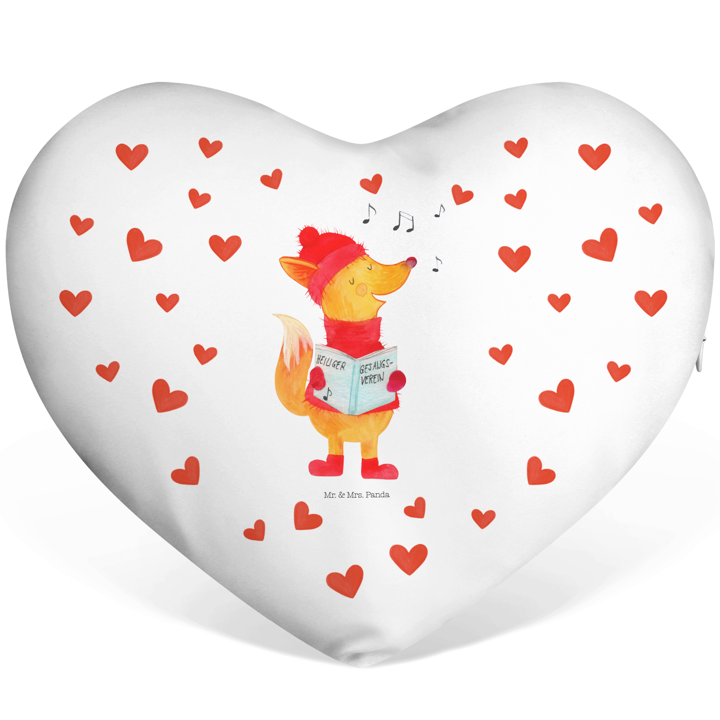 Herzkissen Fuchs Sänger Kissen, Herzkissen, Herzform, Herz, Dekokissen, Winter, Weihnachten, Weihnachtsdeko, Nikolaus, Advent, Heiligabend, Wintermotiv, Fuchs, Füchse, Sänger, Geschenk Sänger, Singen, Weihnachtslieder