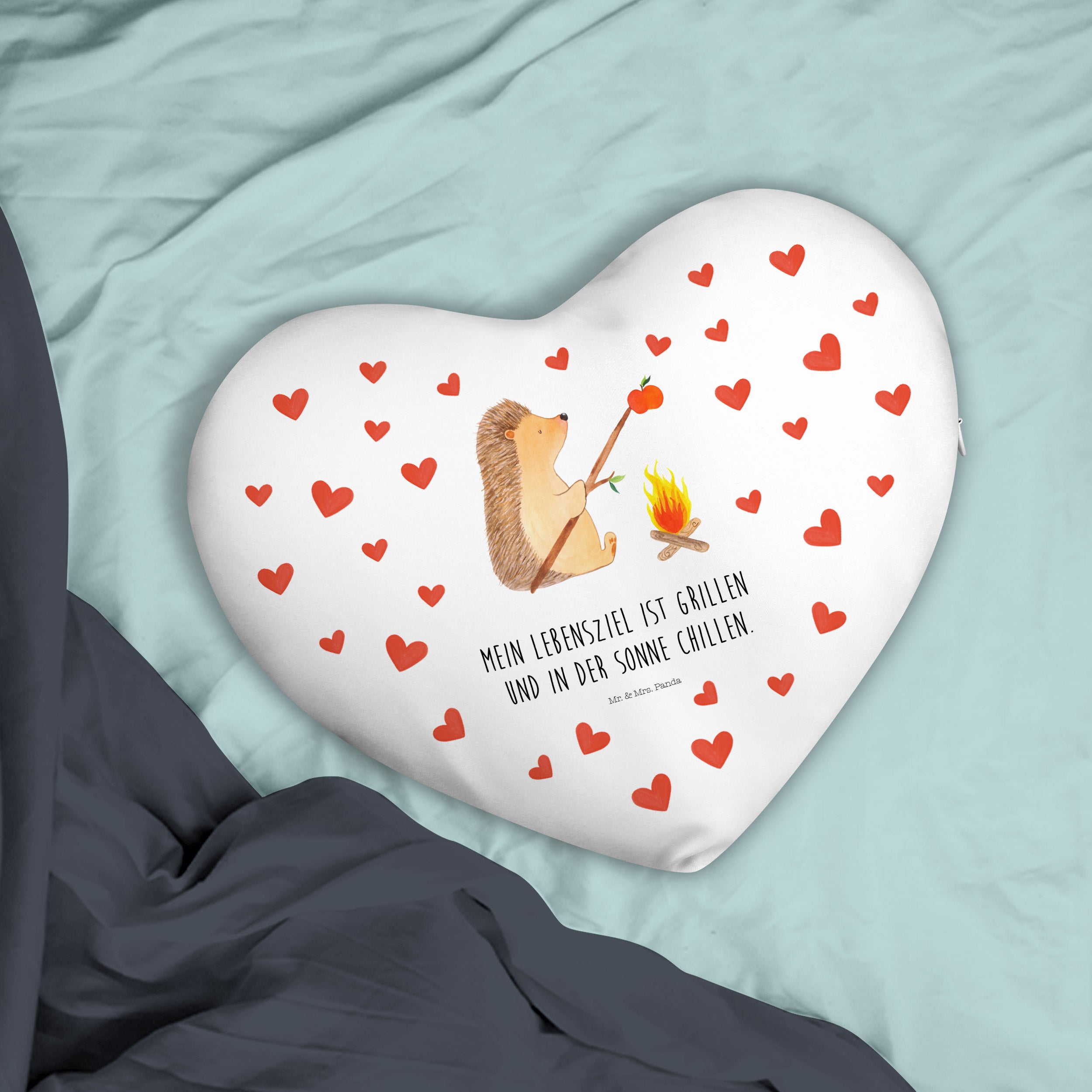 Herzkissen Igel grillt - mit Spruch