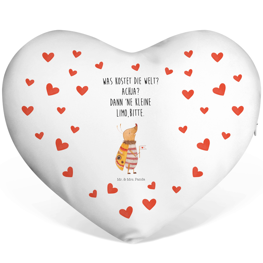 Herzkissen Nachtfalter mit Fähnchen Kissen, Herzkissen, Herzform, Herz, Dekokissen, Tiermotive, Gute Laune, lustige Sprüche, Tiere, Nachtfalter, Käfer, Spruch lustig, Spruch witzig, süß, niedlich, Küche Deko, Was kostet die Welt
