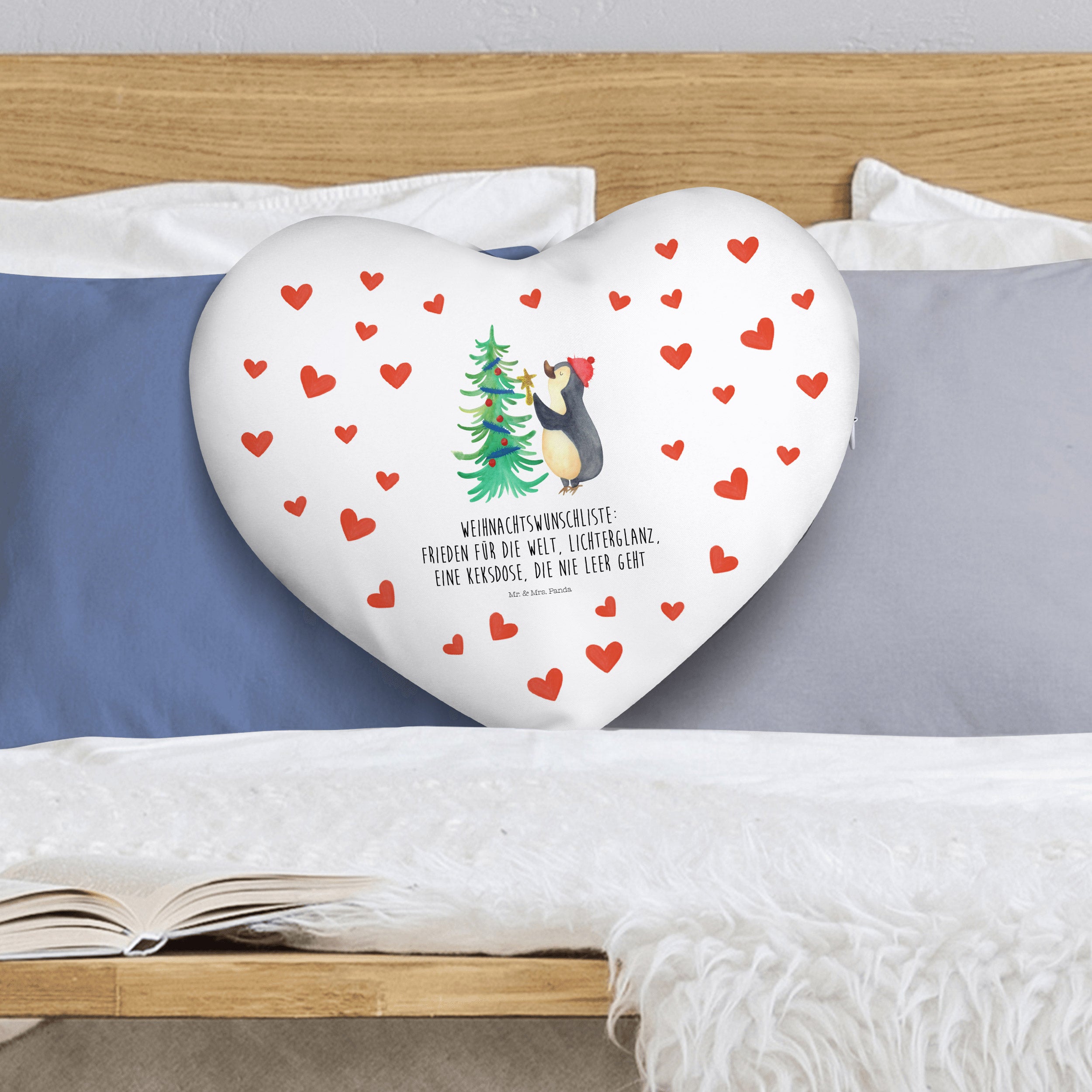Herzkissen Pinguin Weihnachtsbaum - mit Spruch