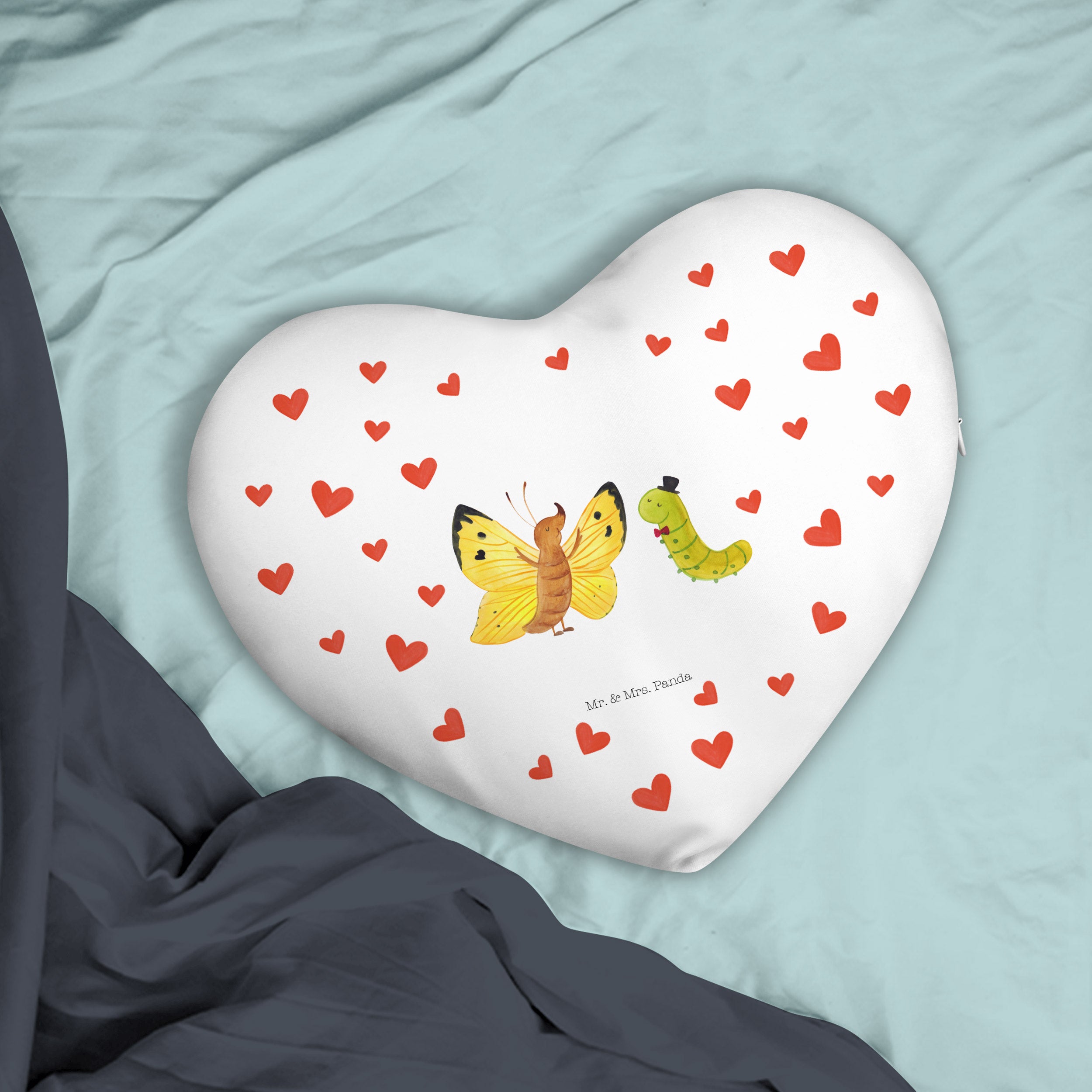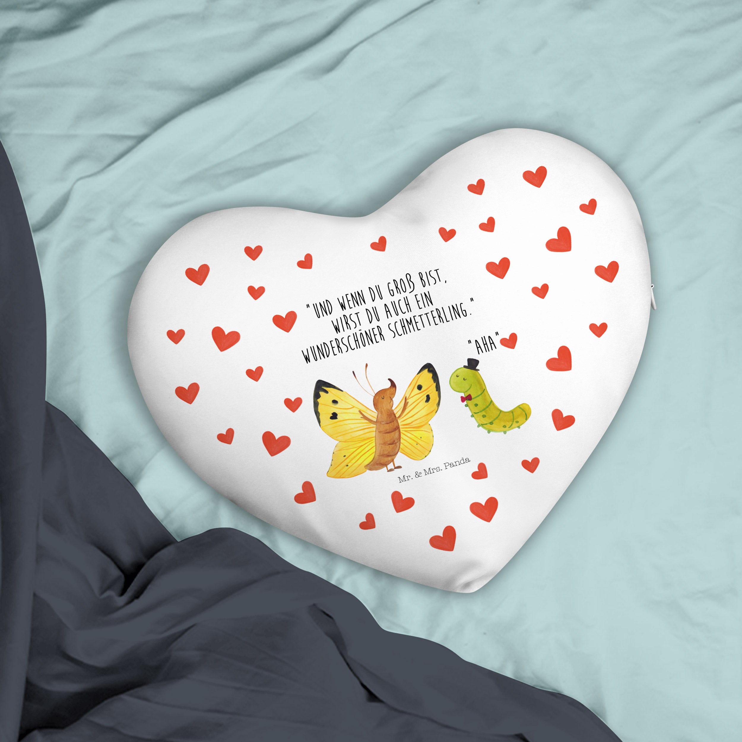 Herzkissen Raupe & Schmetterling - mit Spruch