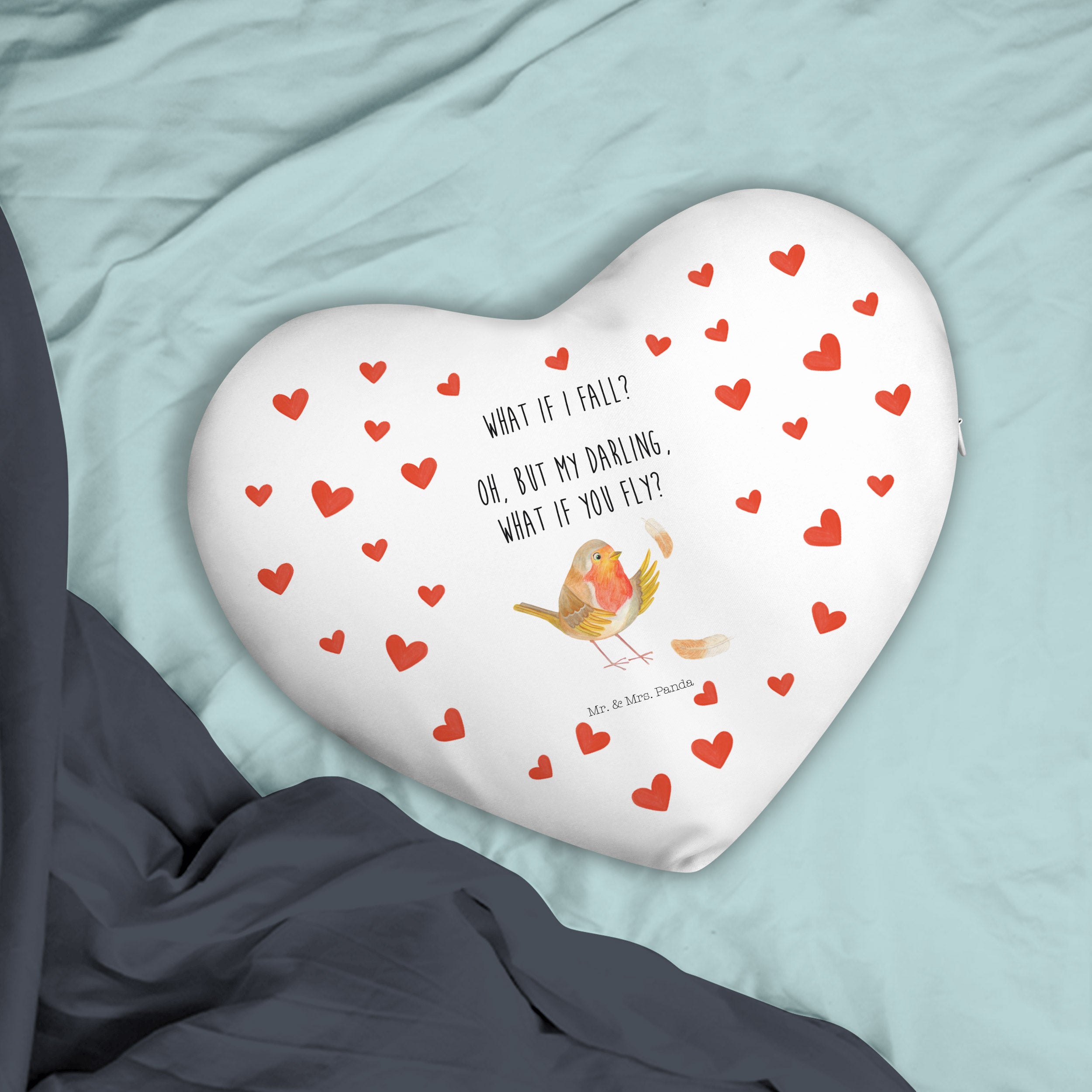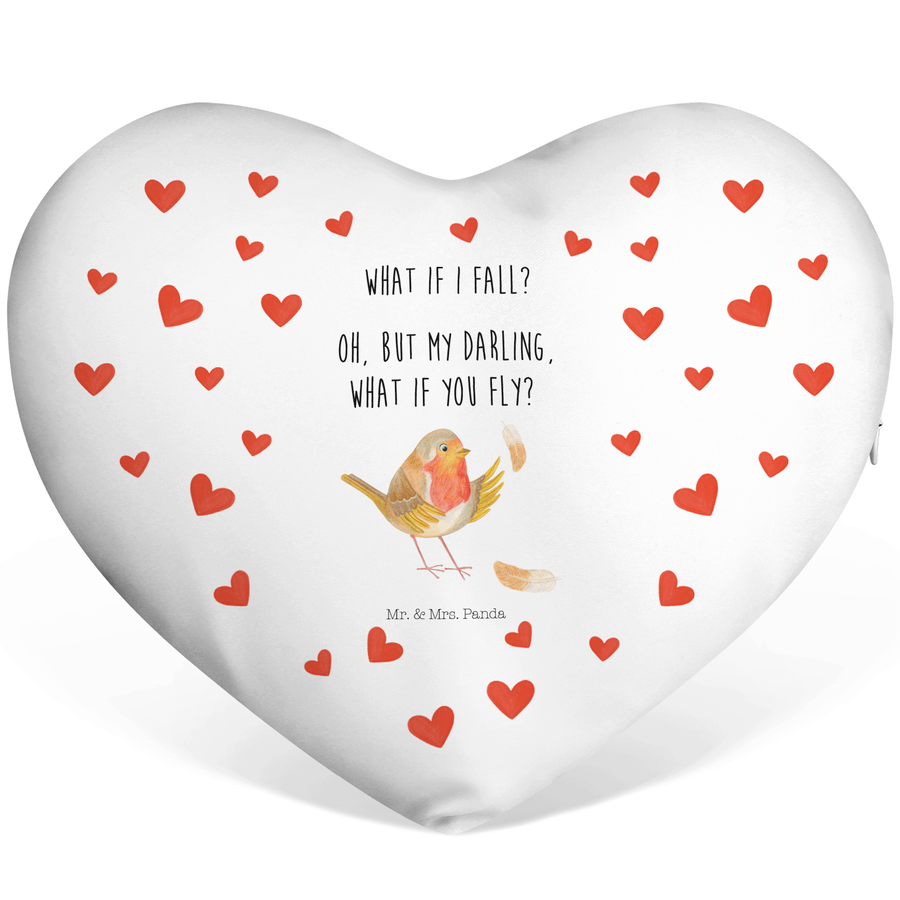 Herzkissen Rotkehlchen mit Federn - mit Spruch