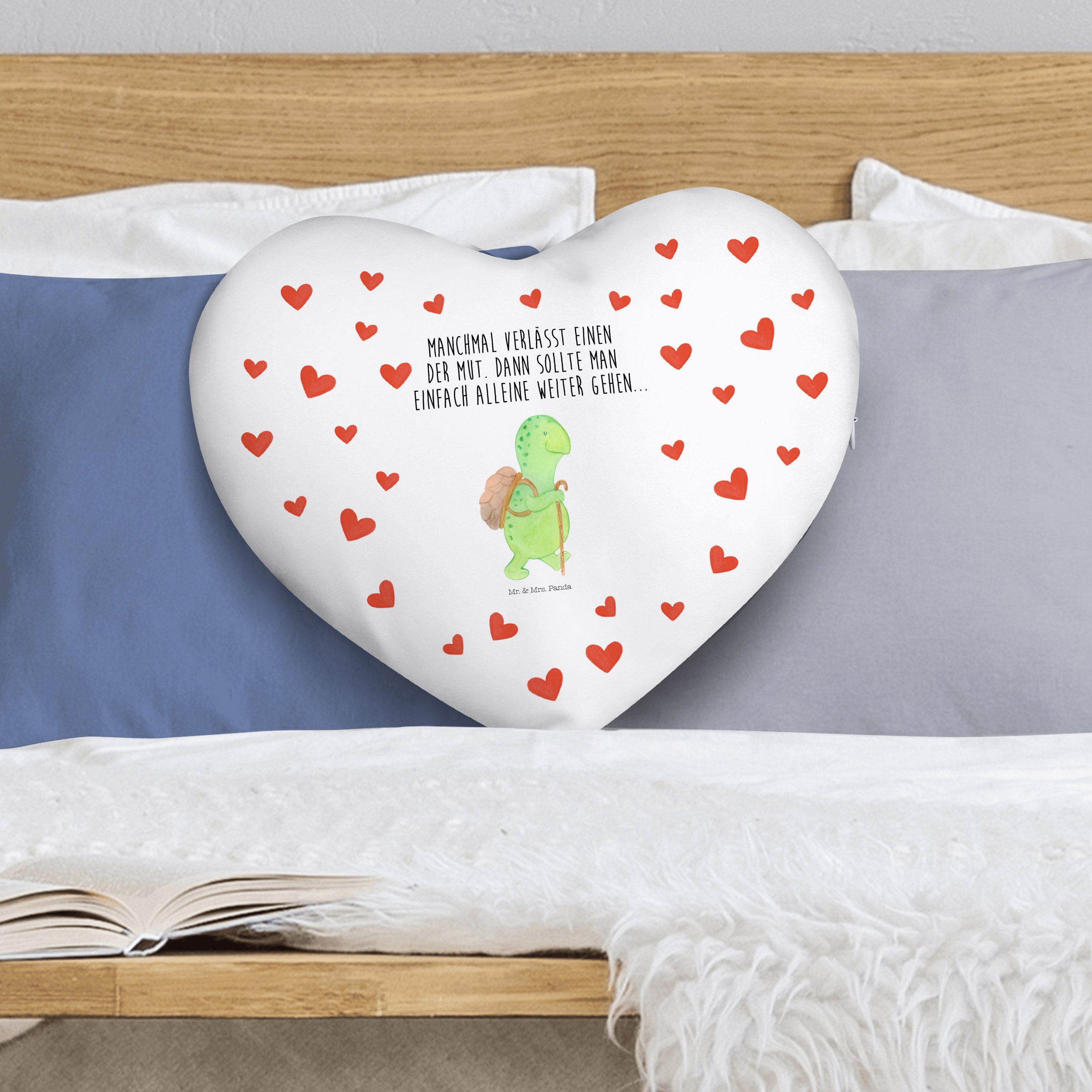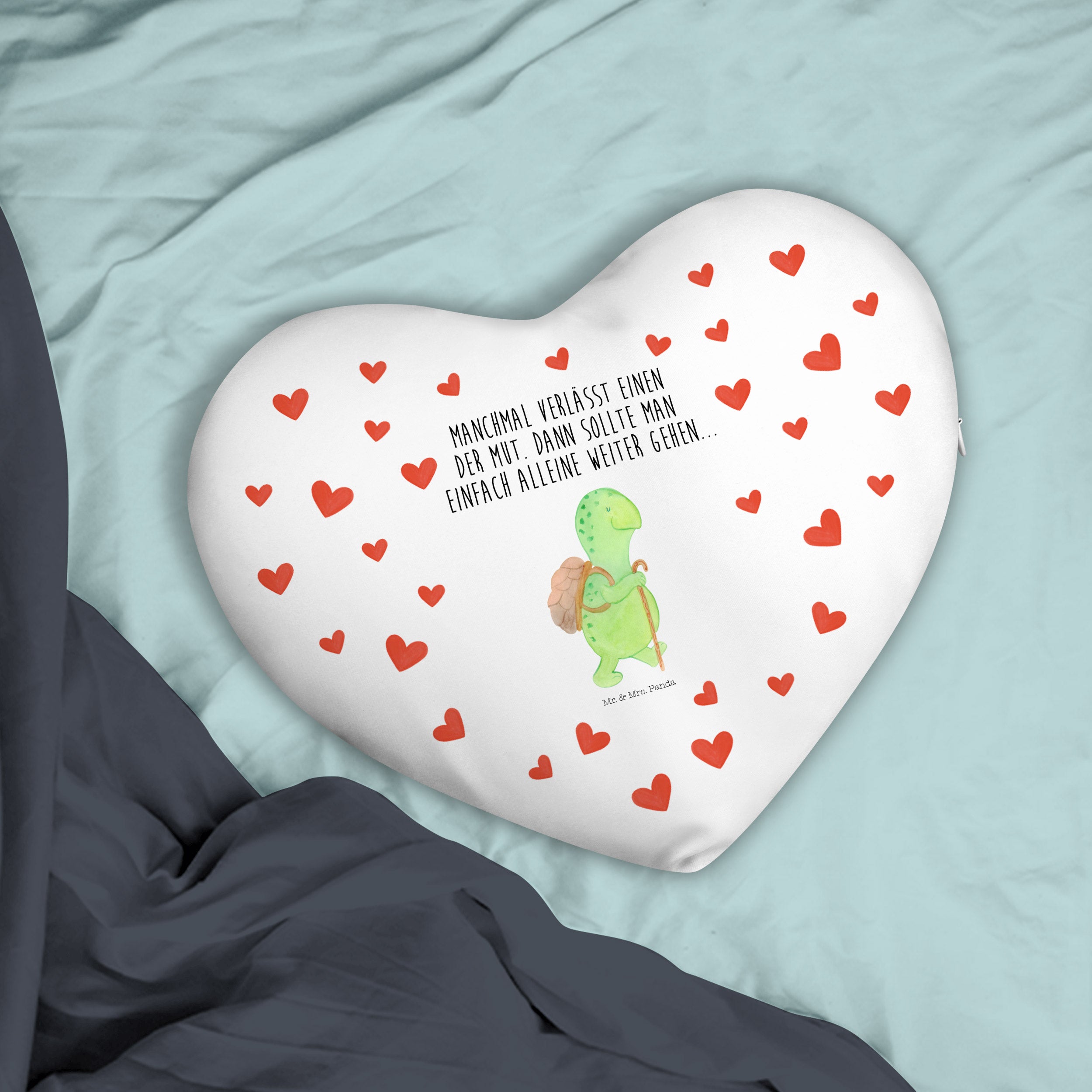 Herzkissen Schildkröte Wanderer - mit Spruch