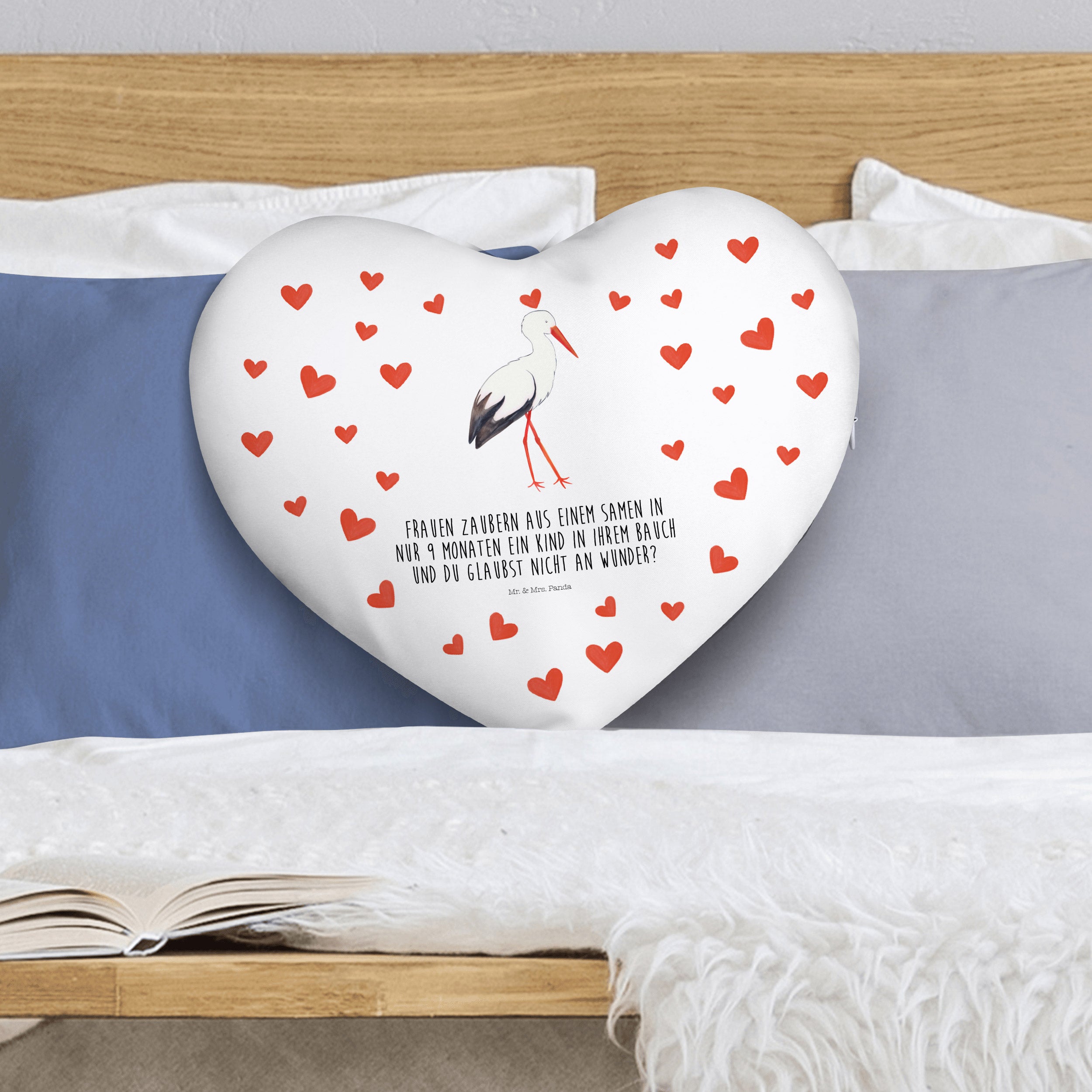 Herzkissen Storch - mit Spruch
