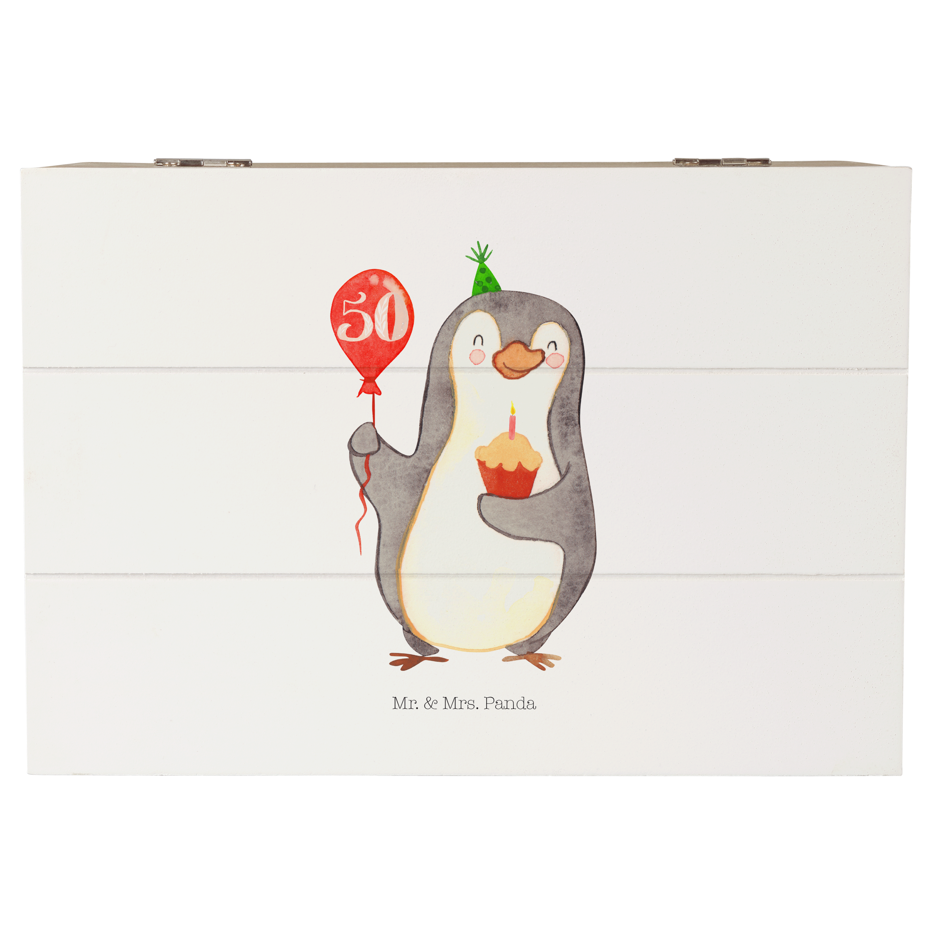 Holzkiste 50. Geburtstag Pinguin Luftballon - mit Spruch