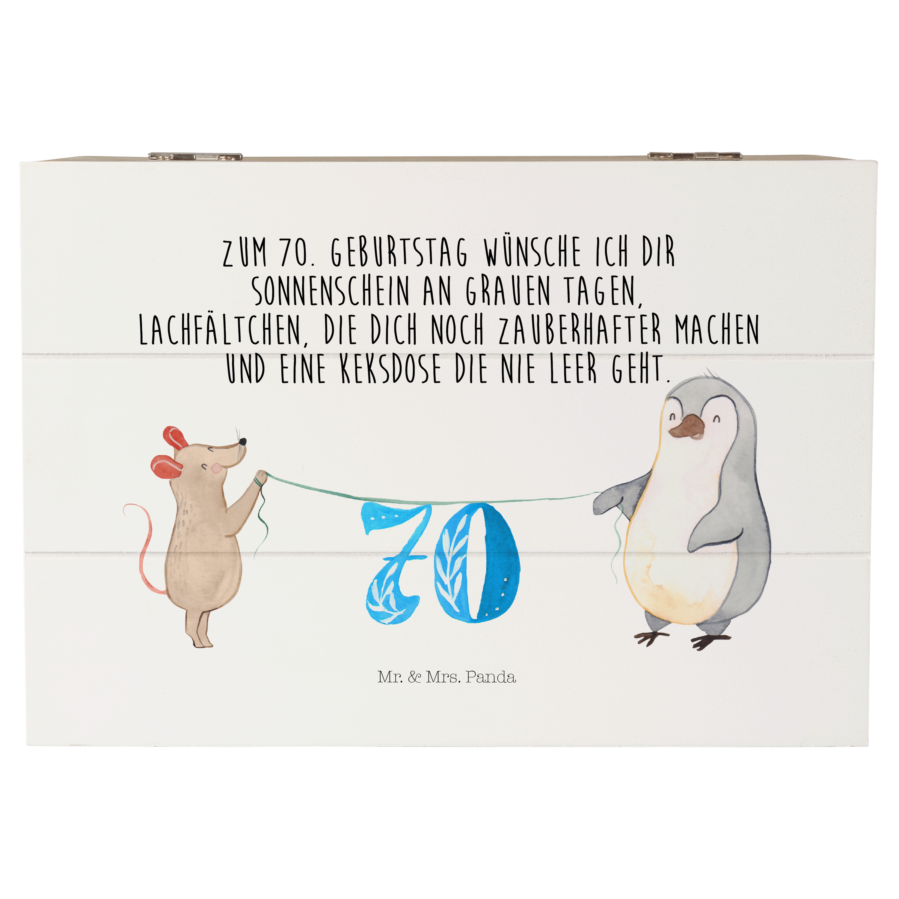 Holzkiste 70. Geburtstag Maus Pinguin