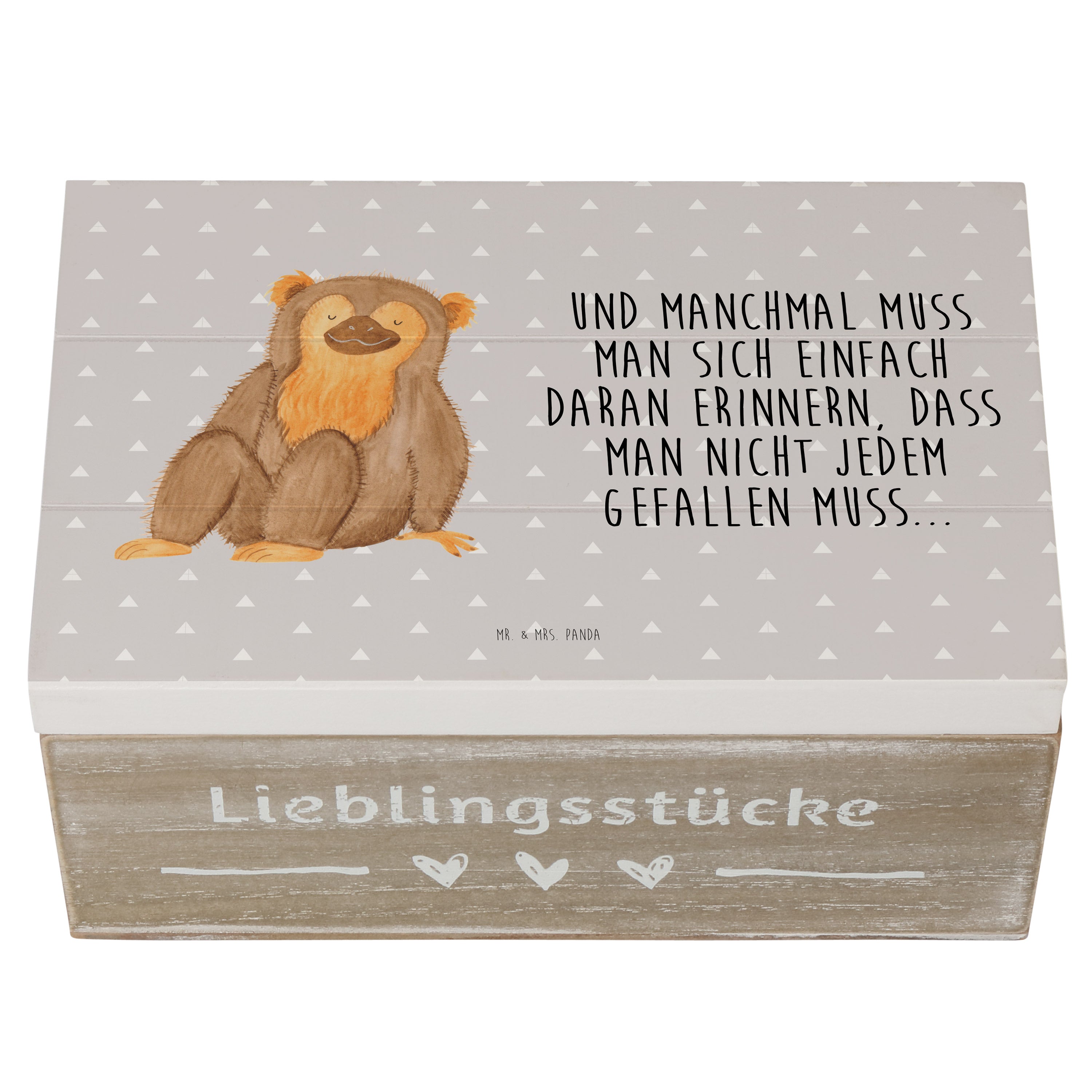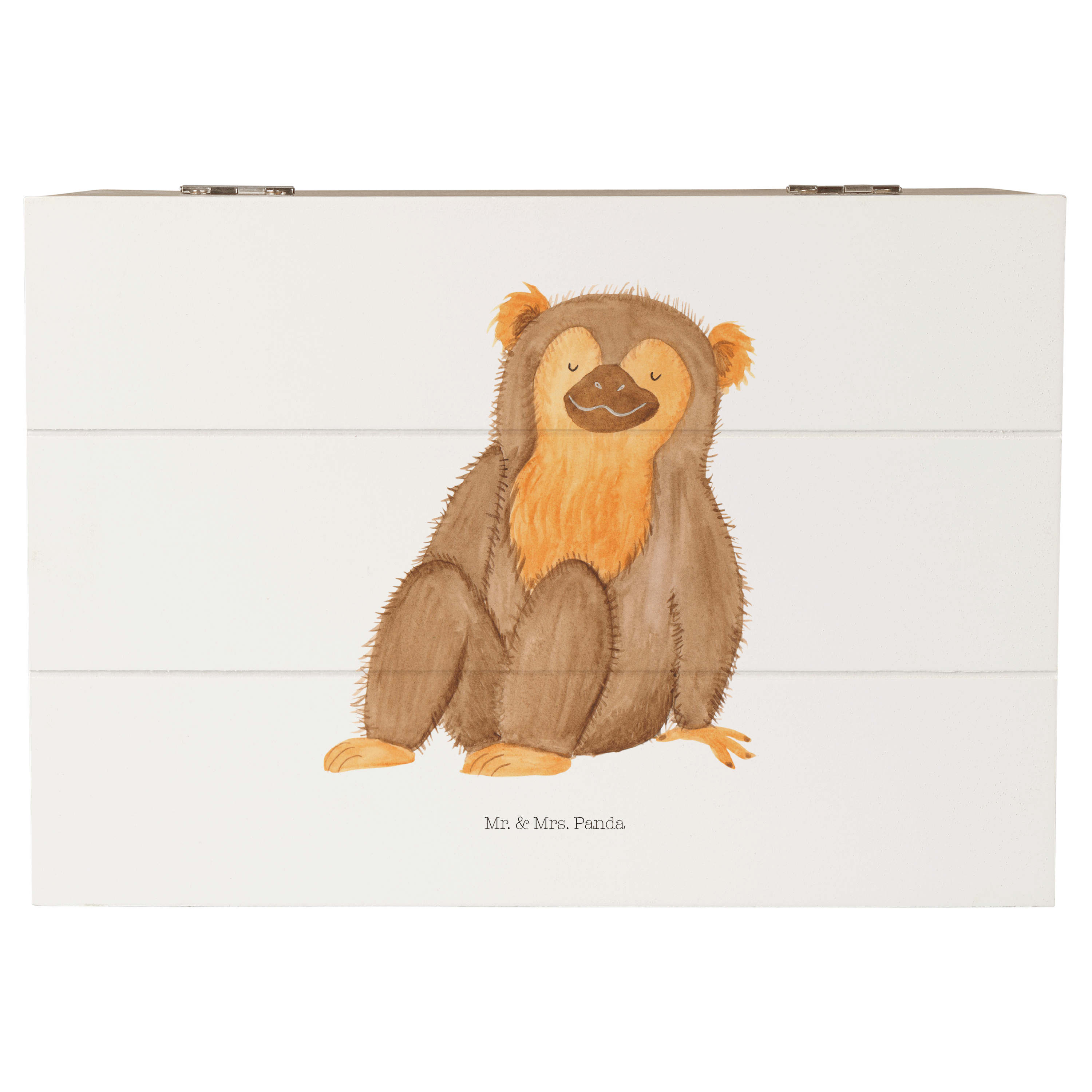 Holzkiste Affe - 25 x 18 cm - mit Spruch - Weiß