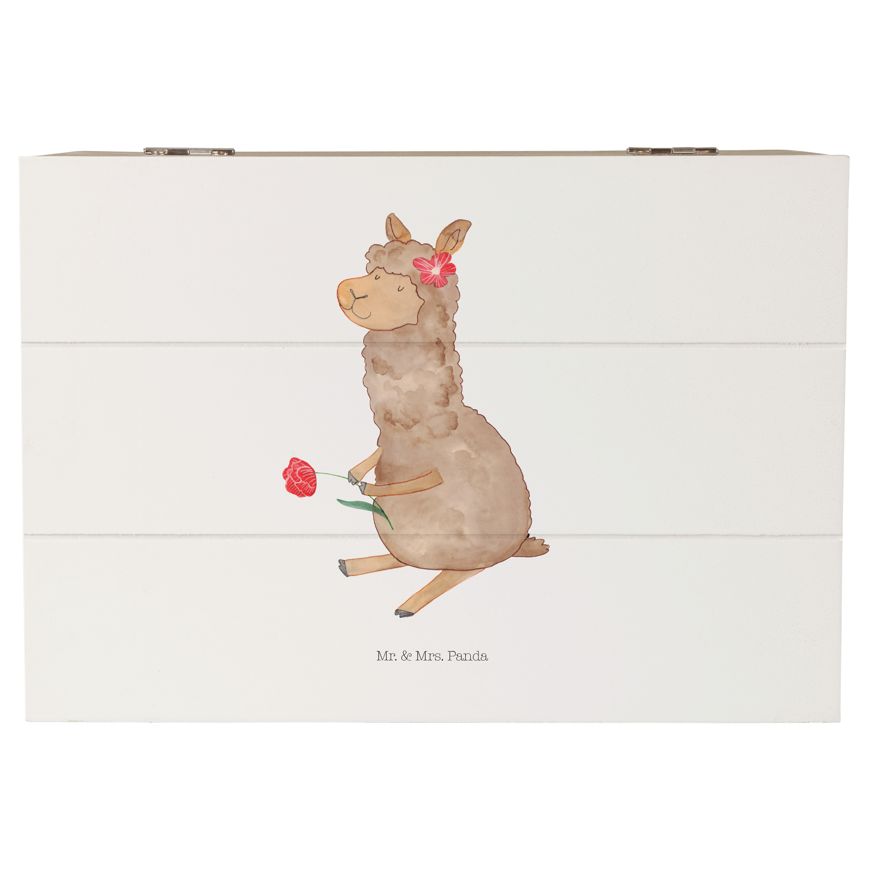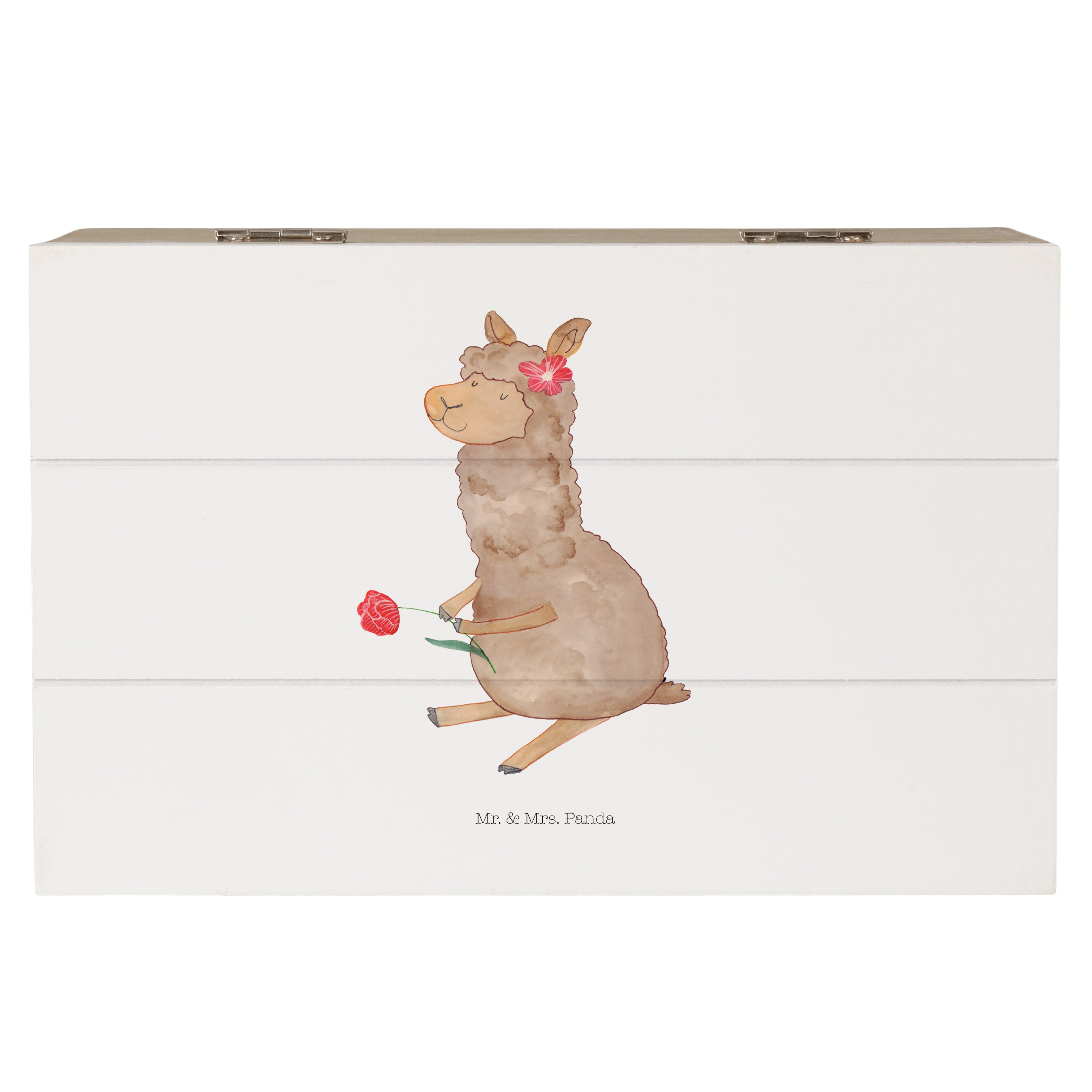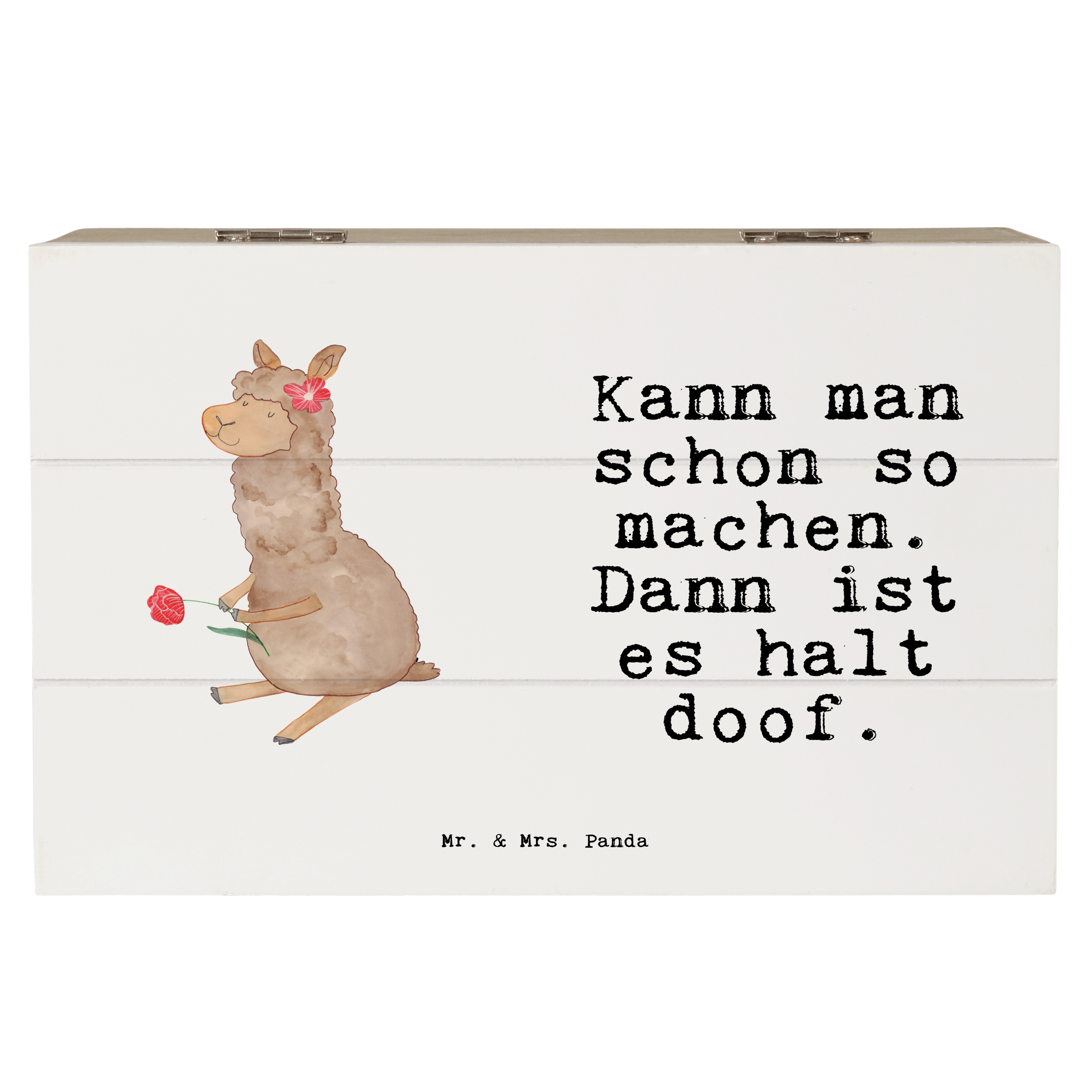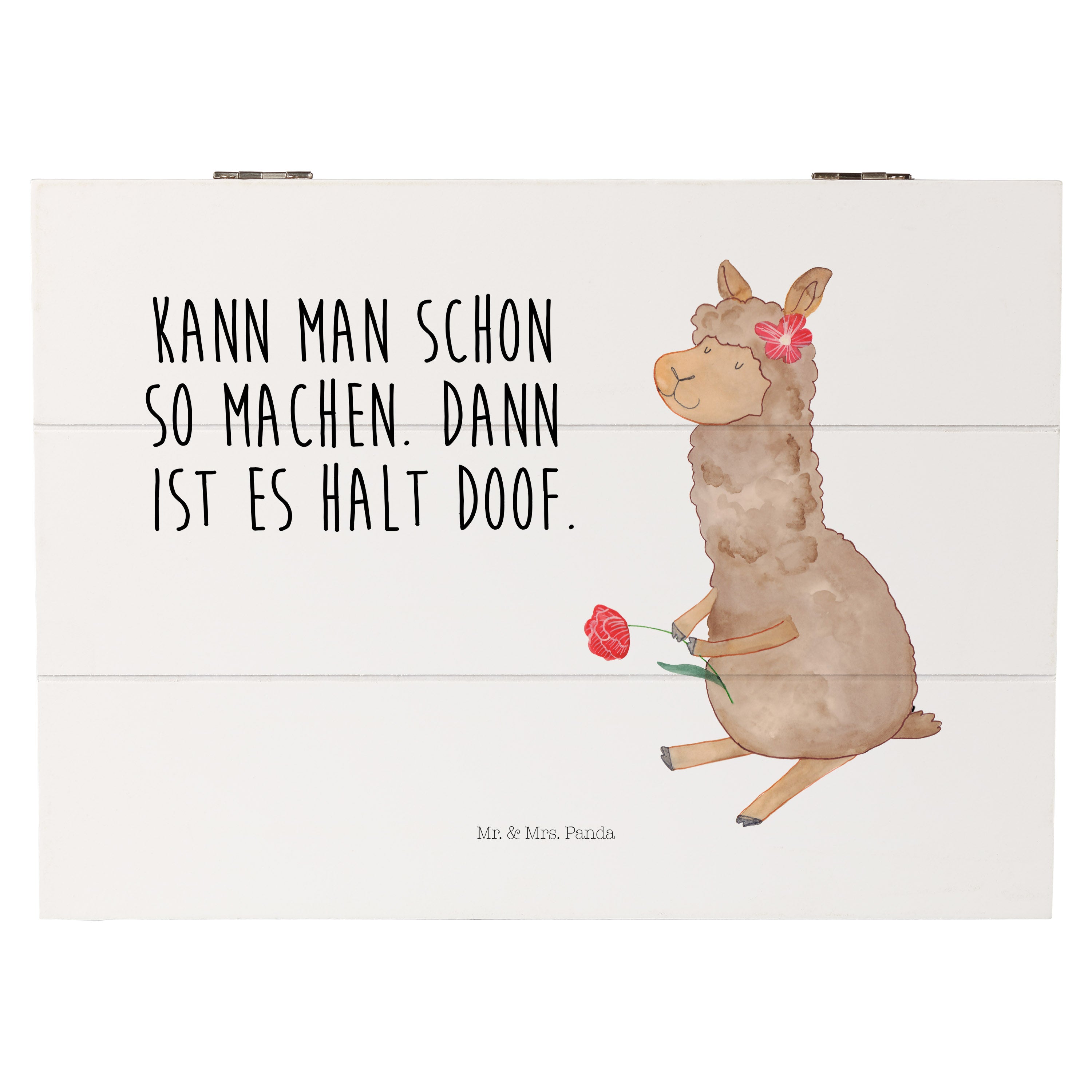 Holzkiste Alpaka Blume - 25 x 18 cm - mit Spruch - Weiß