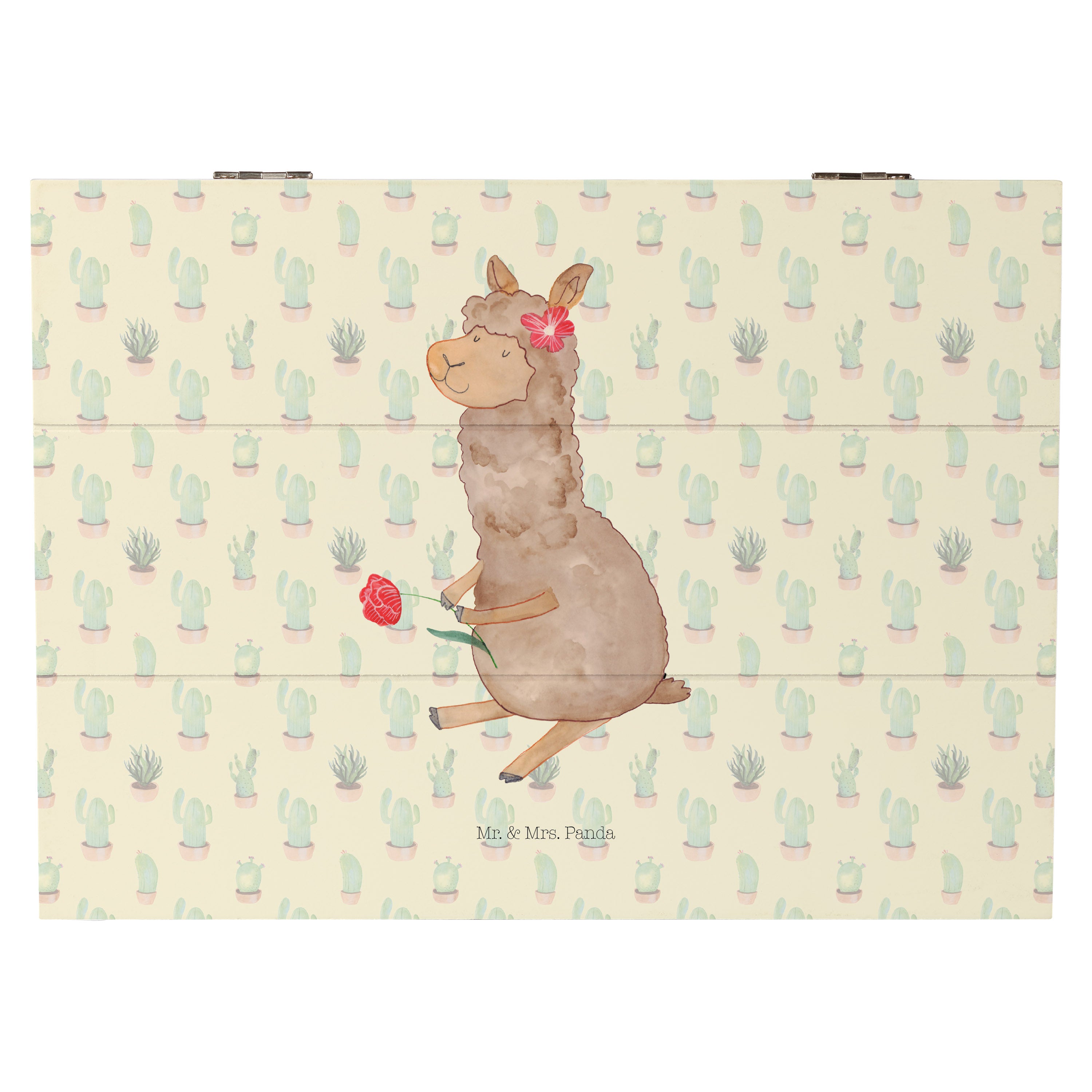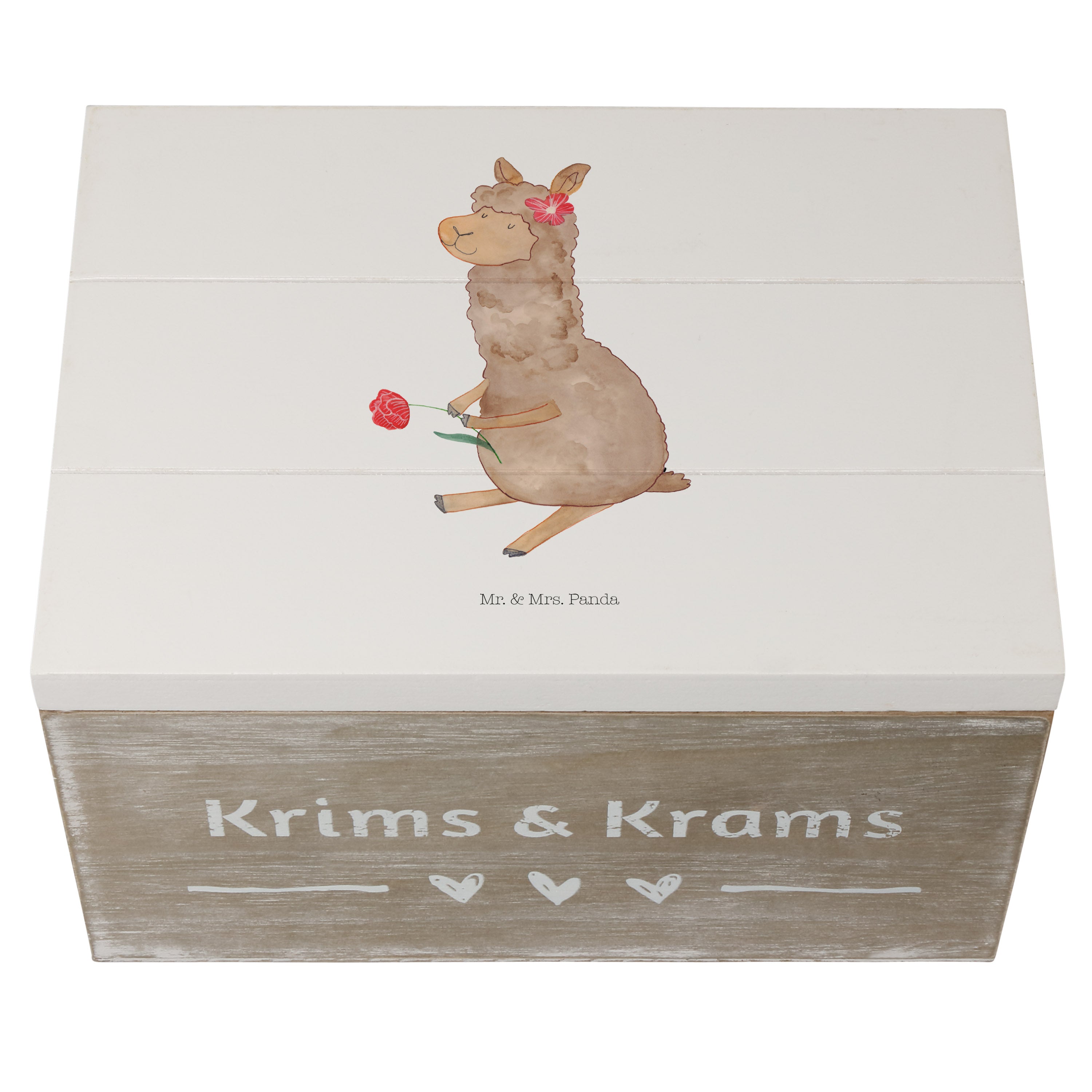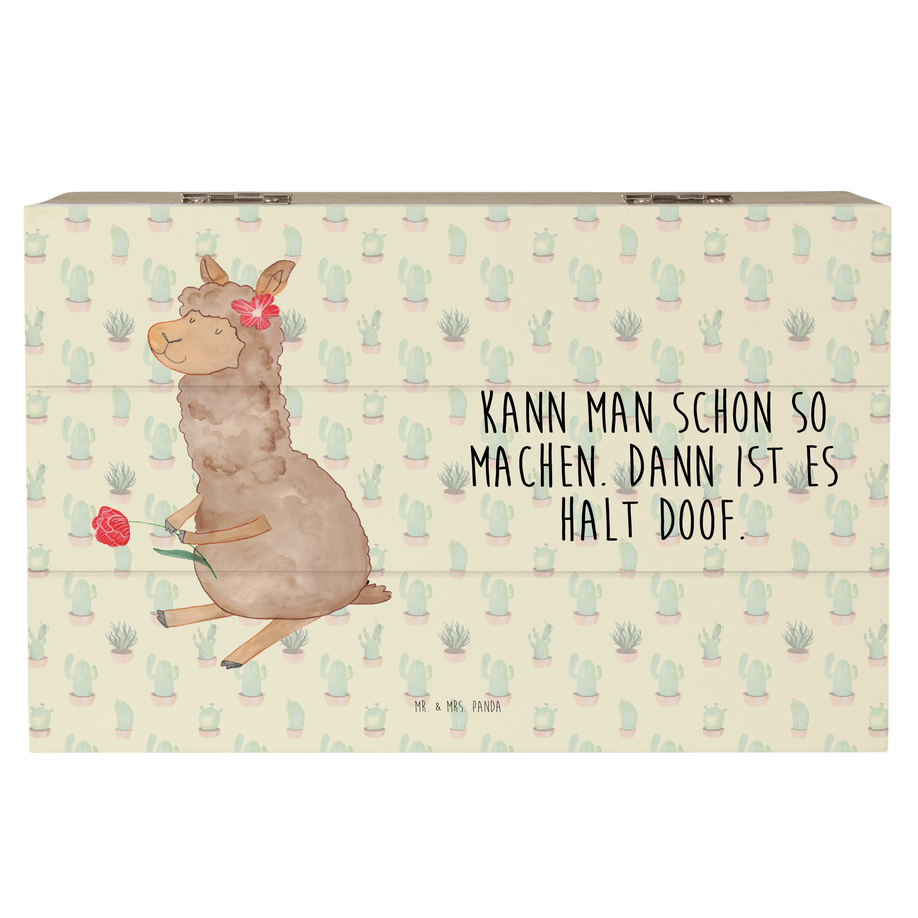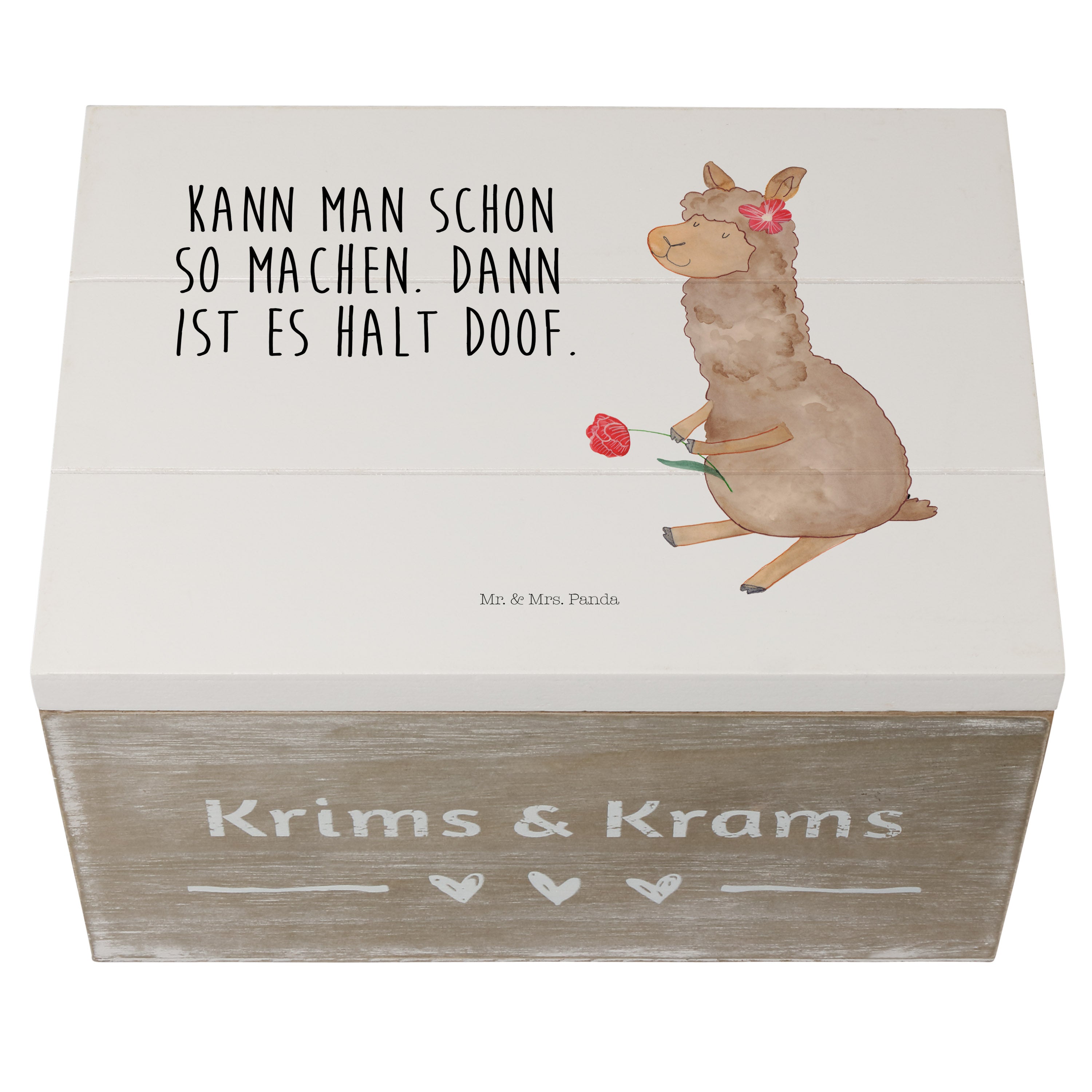 Holzkiste Alpaka Blume - 25 x 18 cm - mit Spruch - Weiß