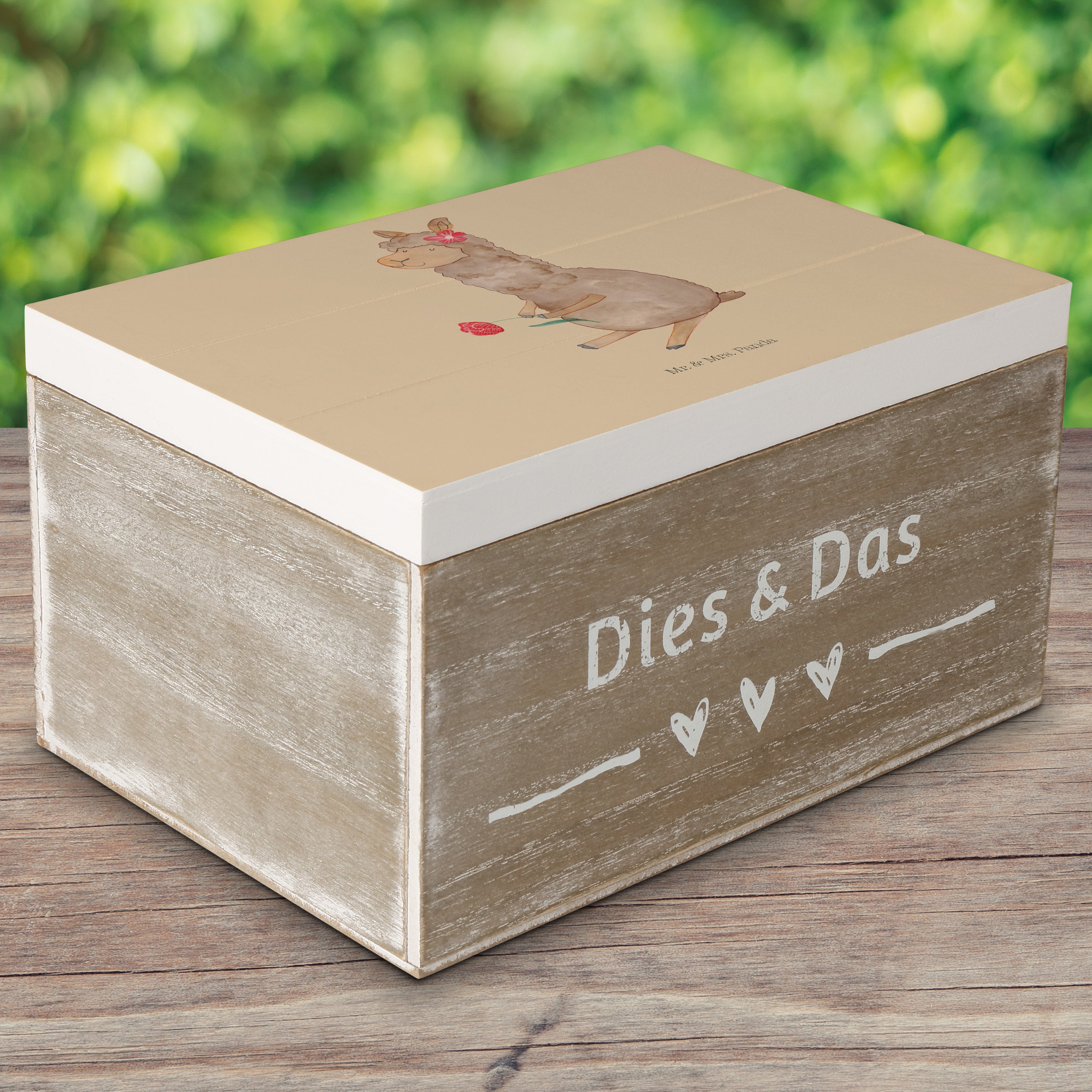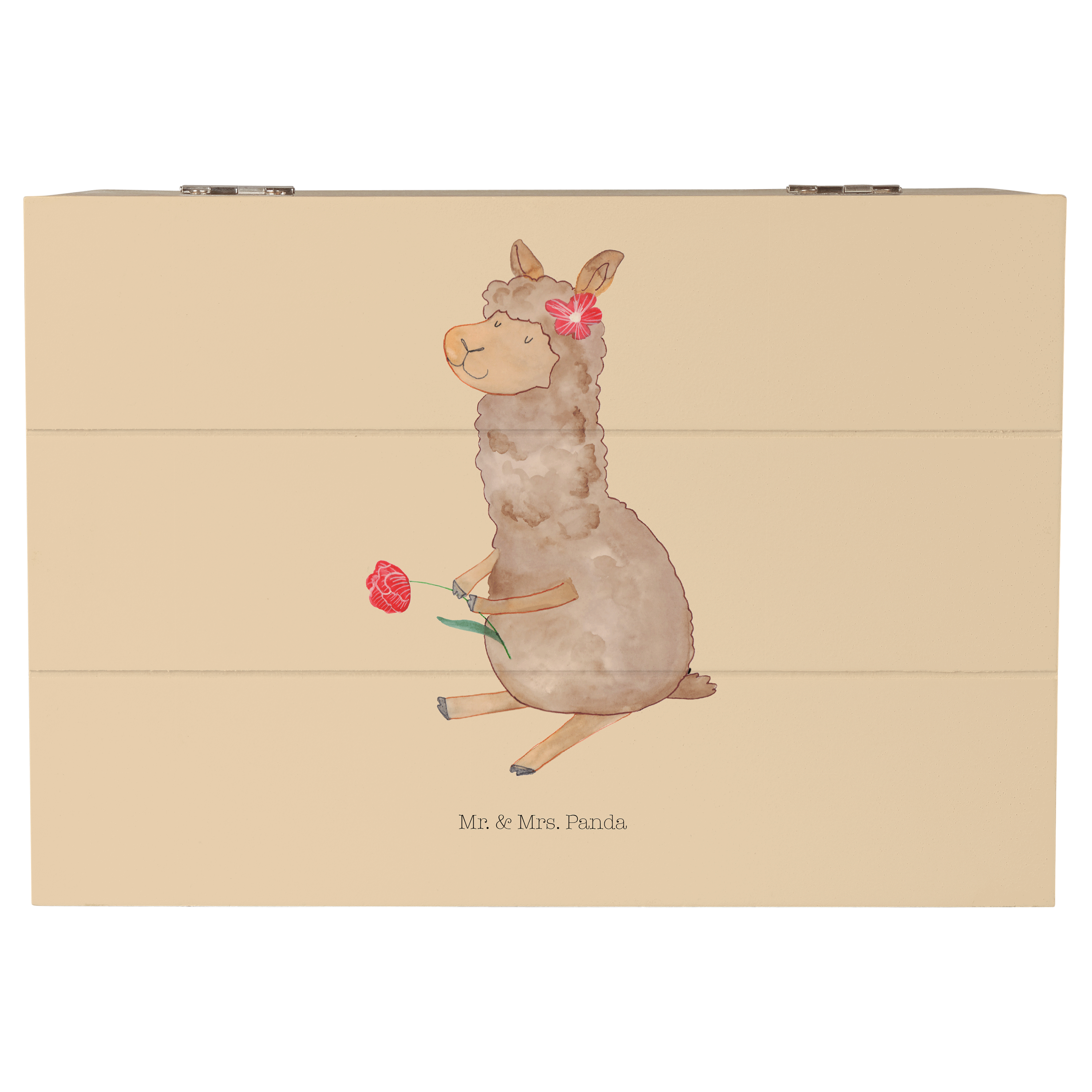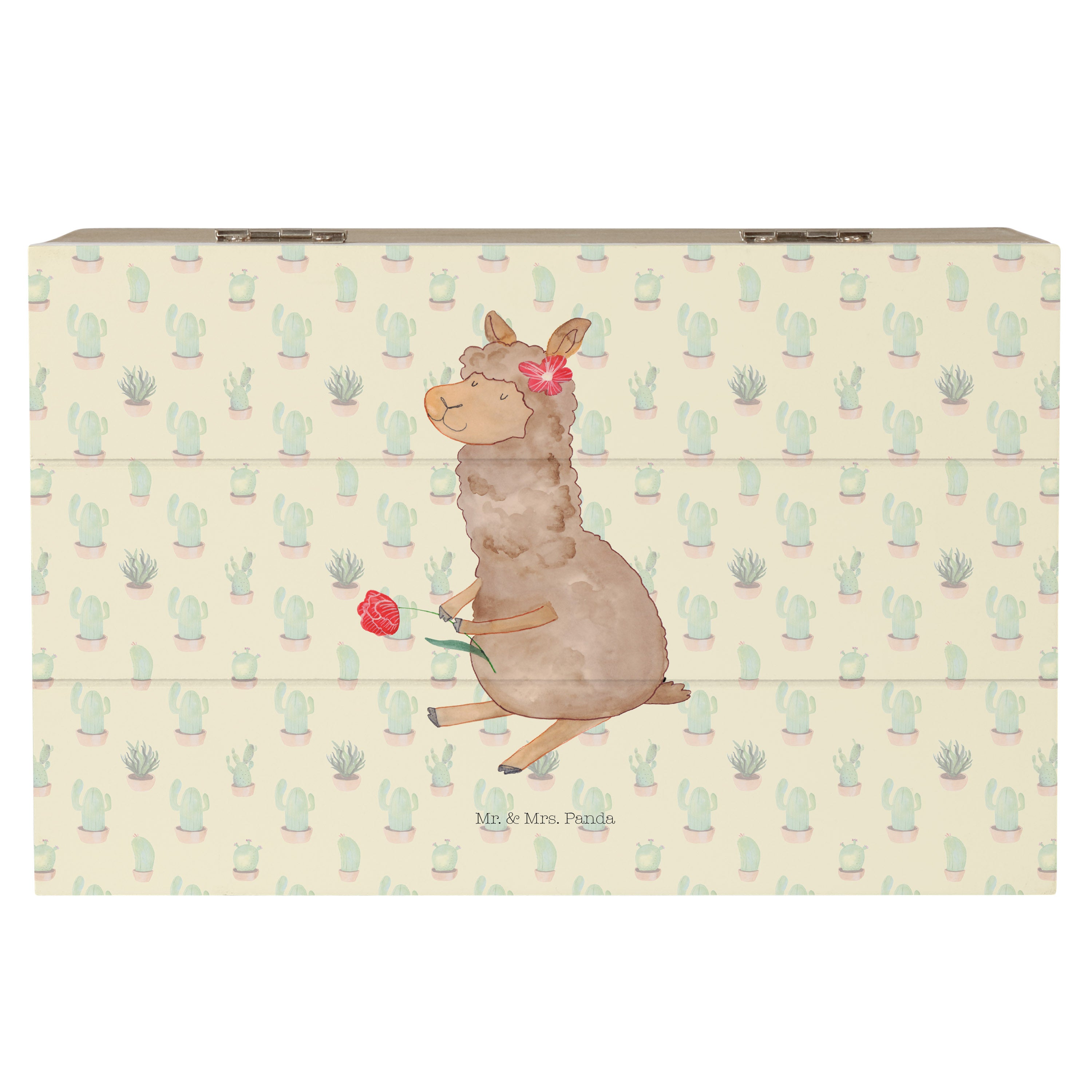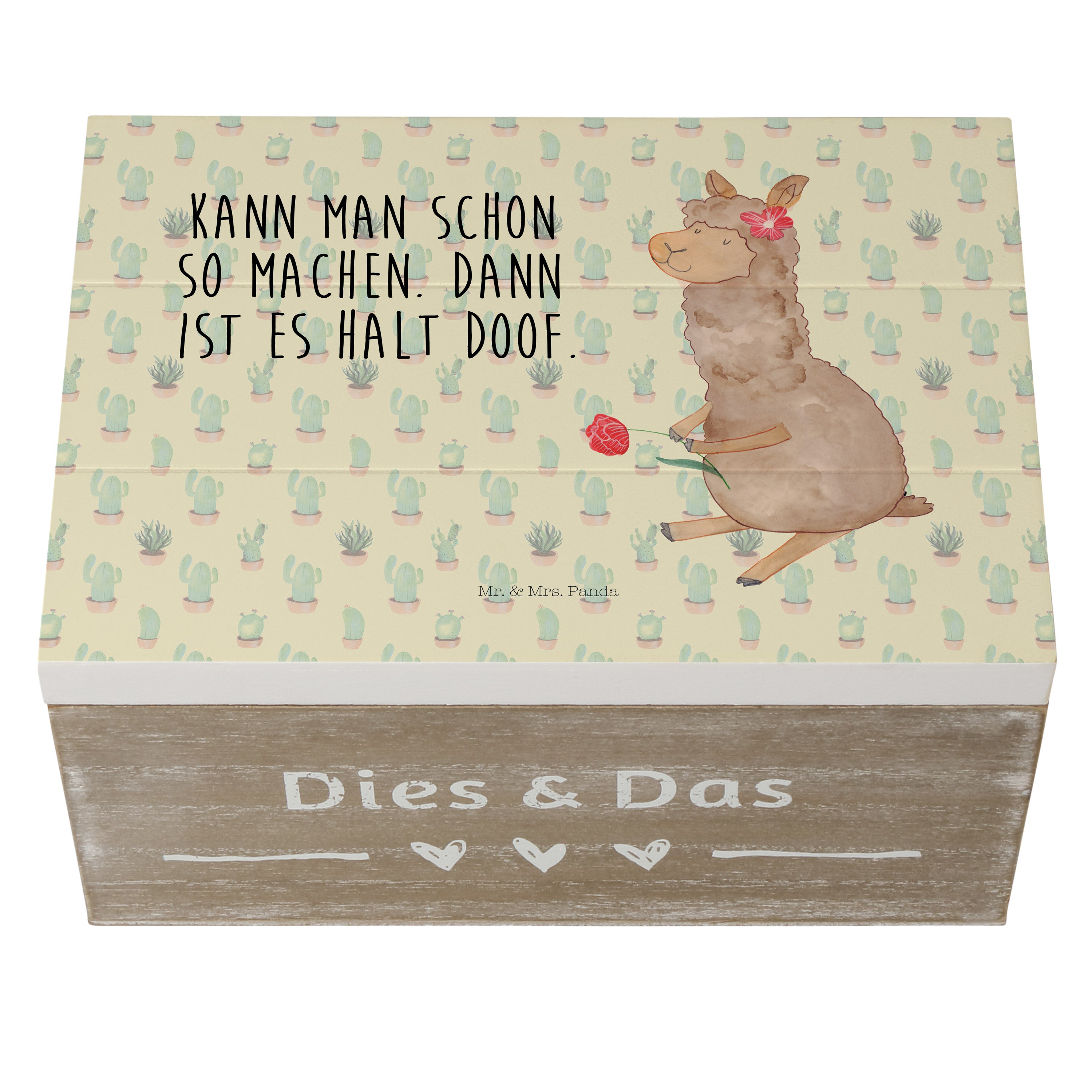 Holzkiste Alpaka Blume - 25 x 18 cm - mit Spruch - Weiß