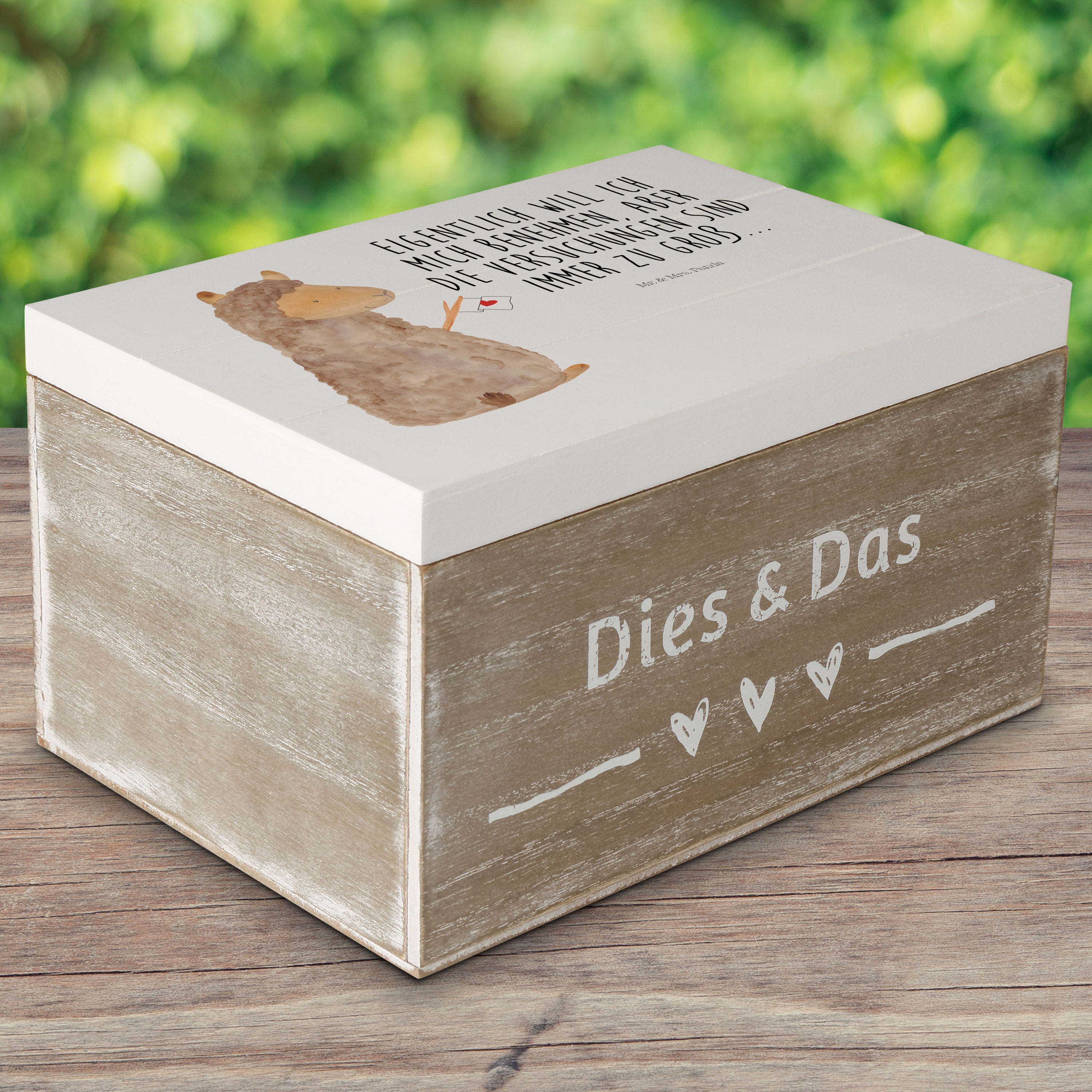 Holzkiste Alpaka Fahne - 25 x 18 cm - mit Spruch - Weiß